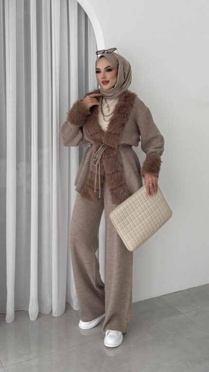 Collej Bomber Şeritli İkili Takım – Kahverengi
