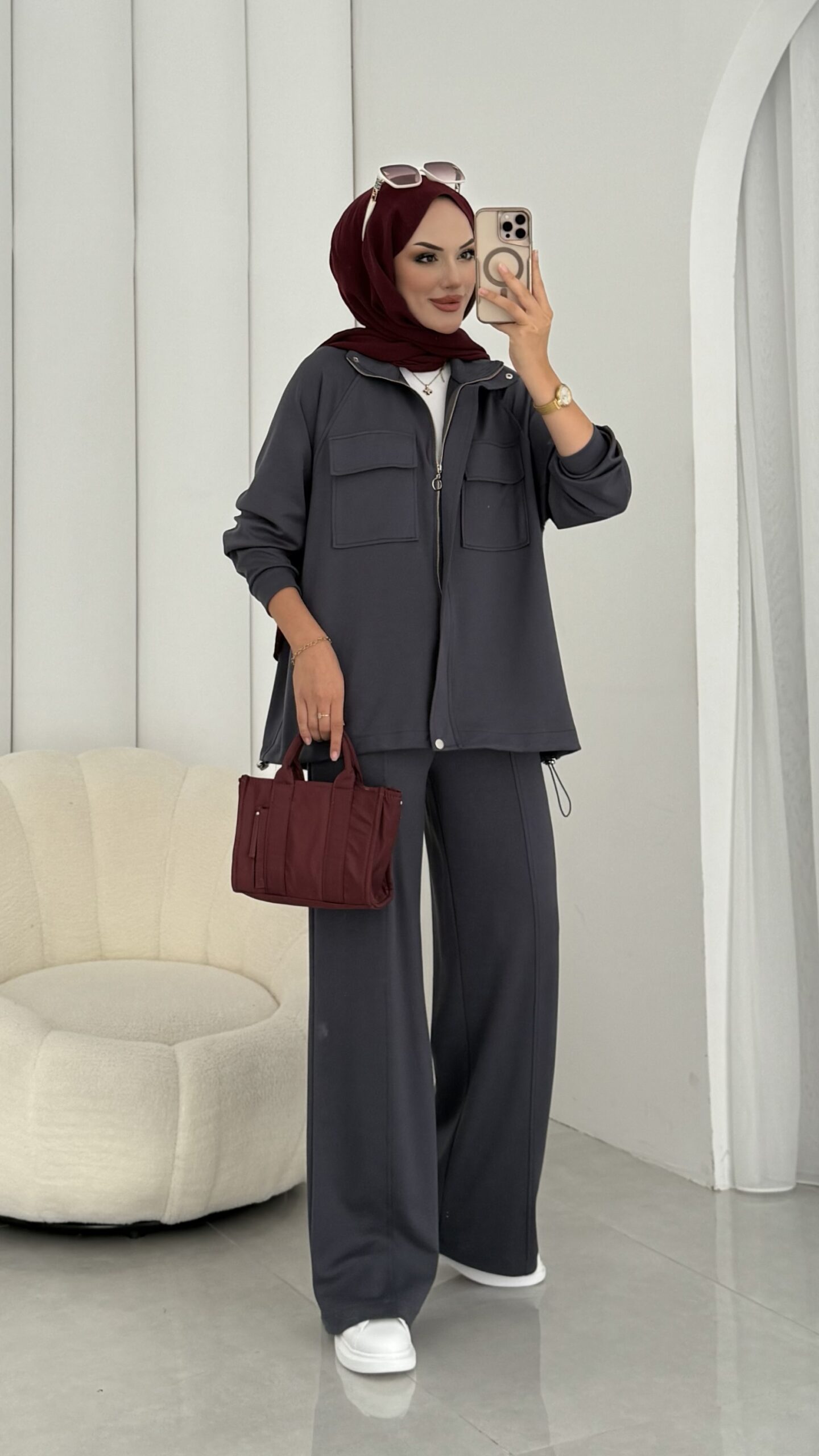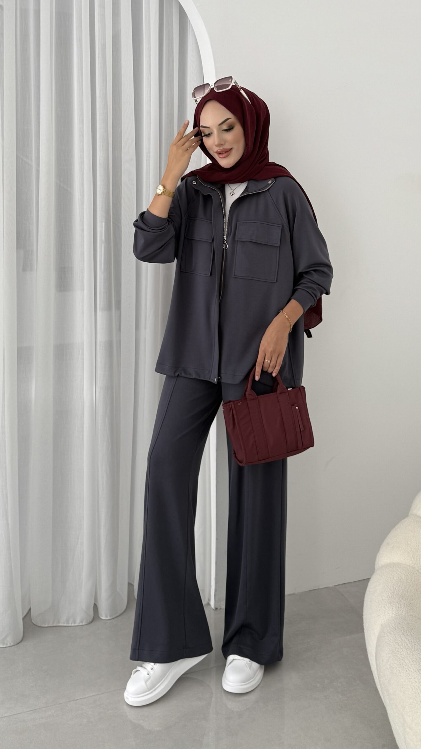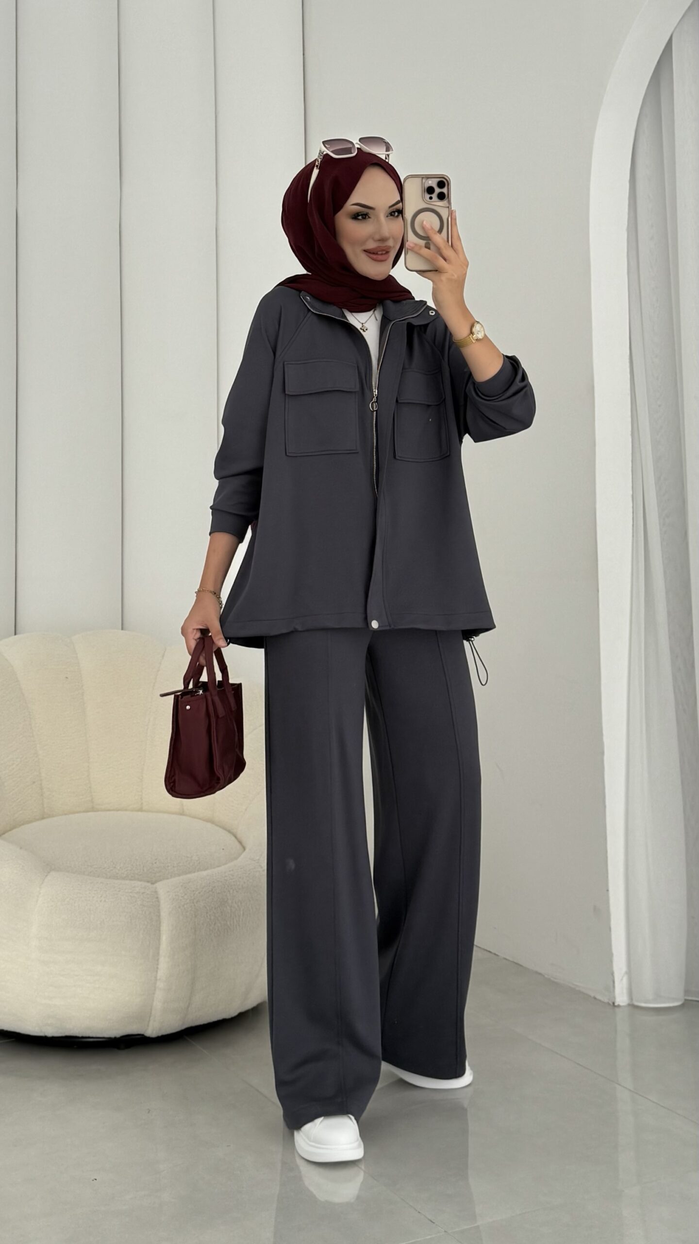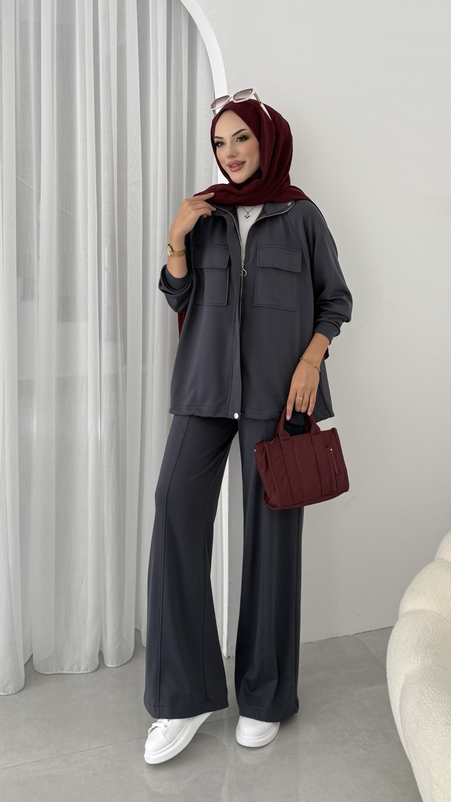 Bondi Vatkalı Çıtçıtlı Scuba İkili Takım – Antrasit