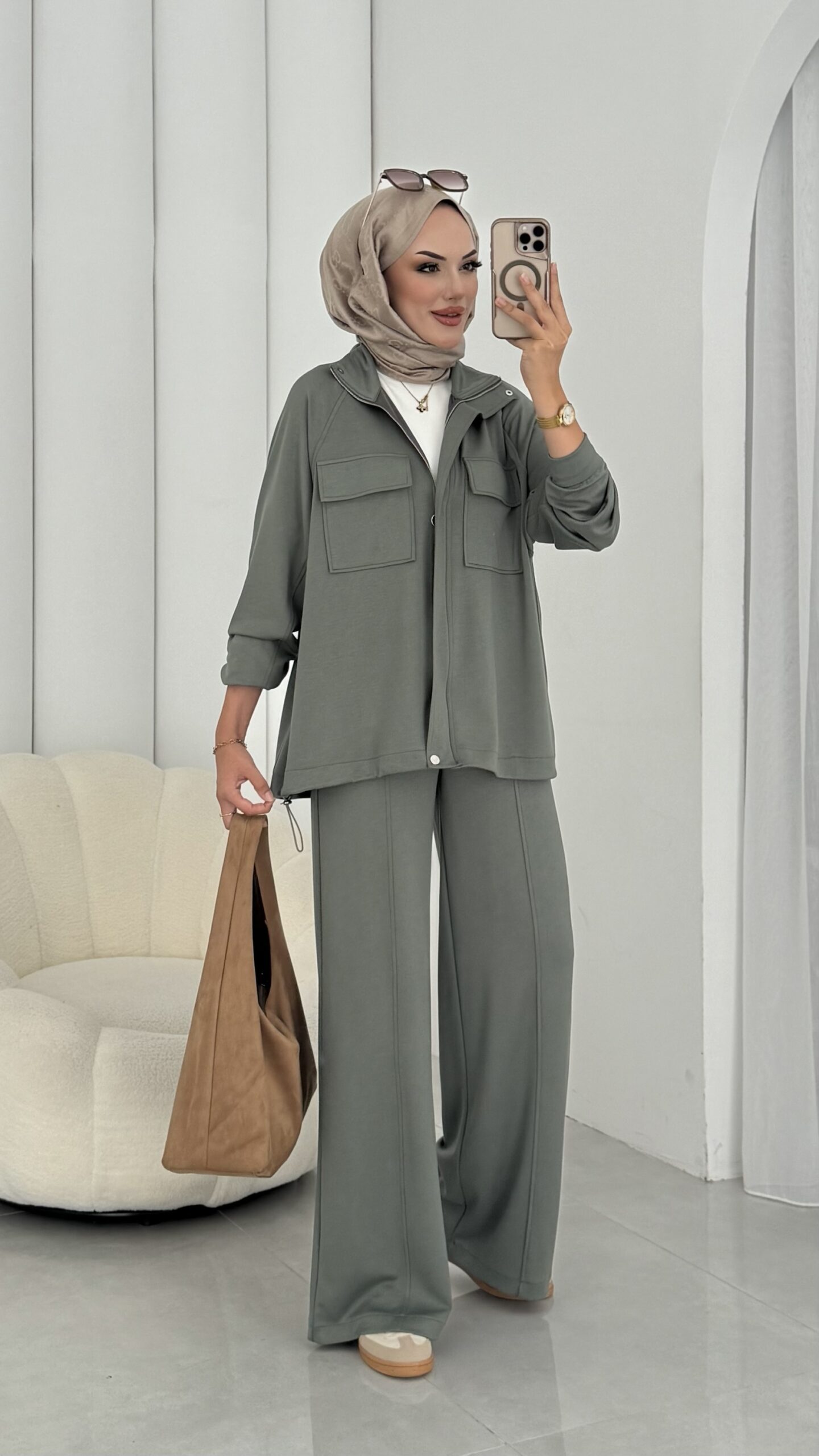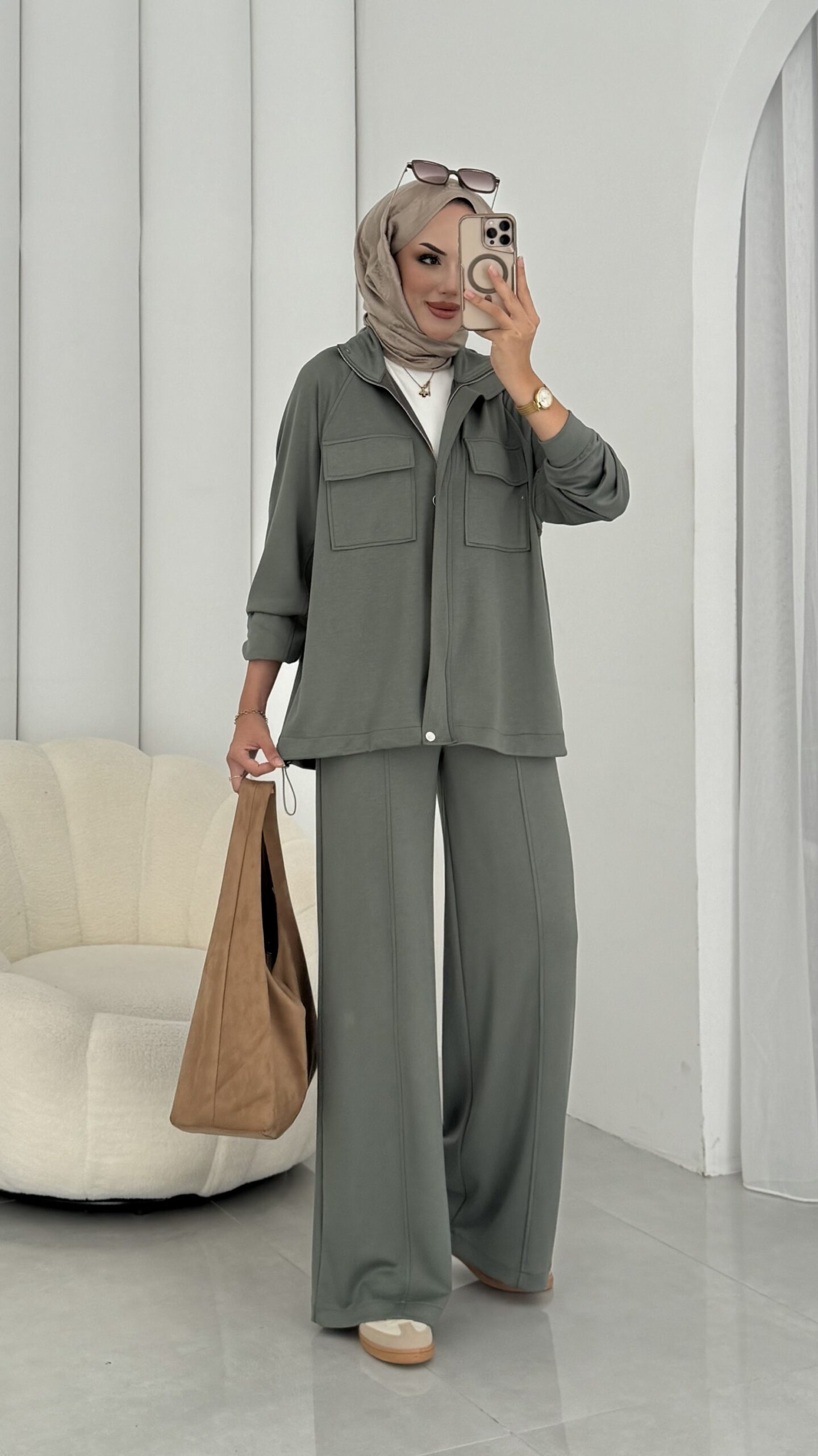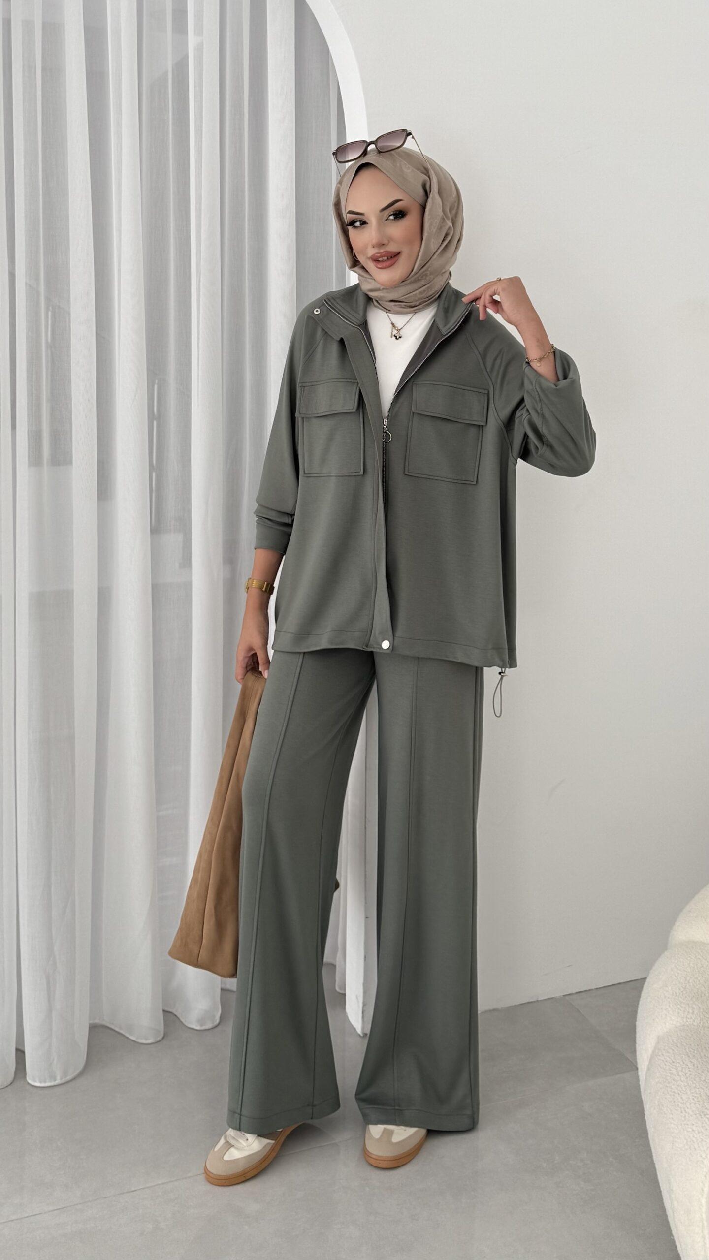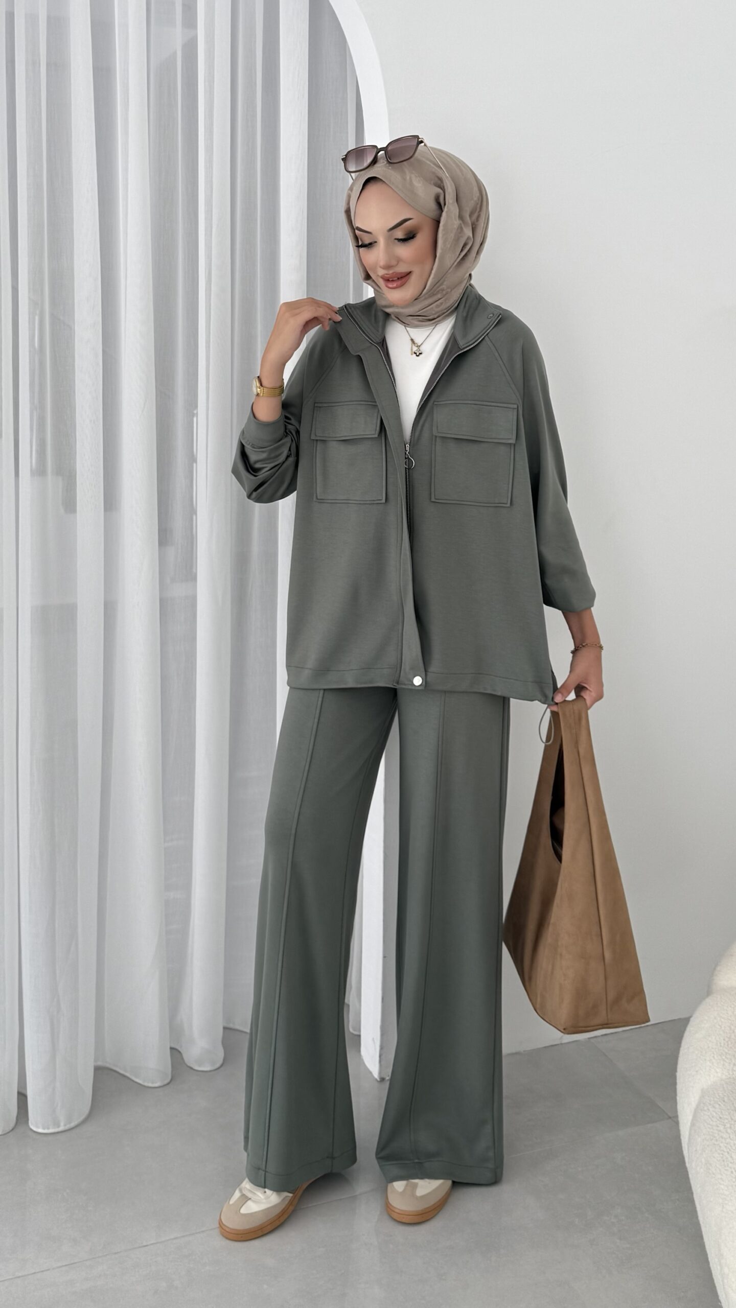 Premium Piliseli Arabic Çizgili İkili Takım – Haki