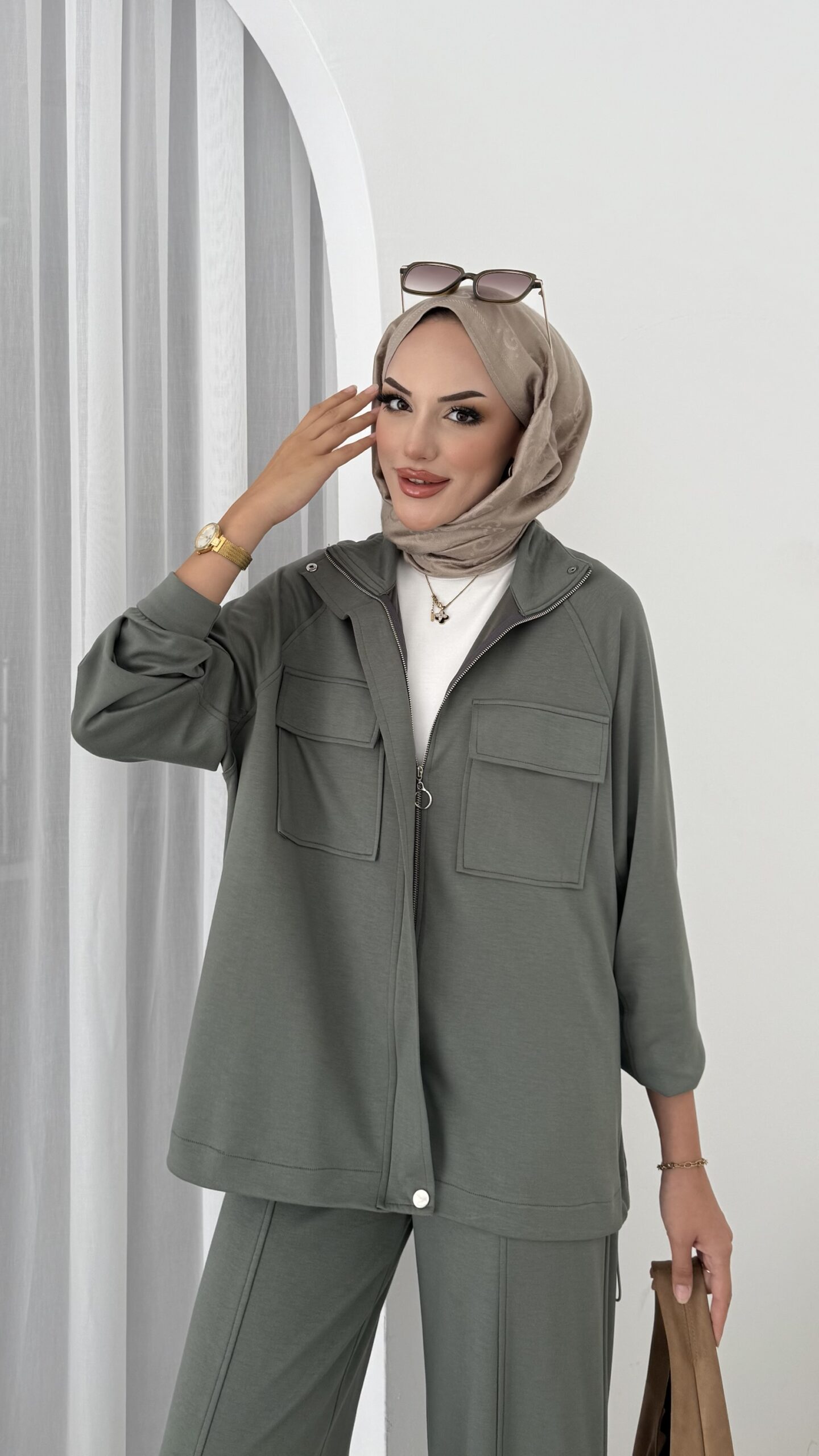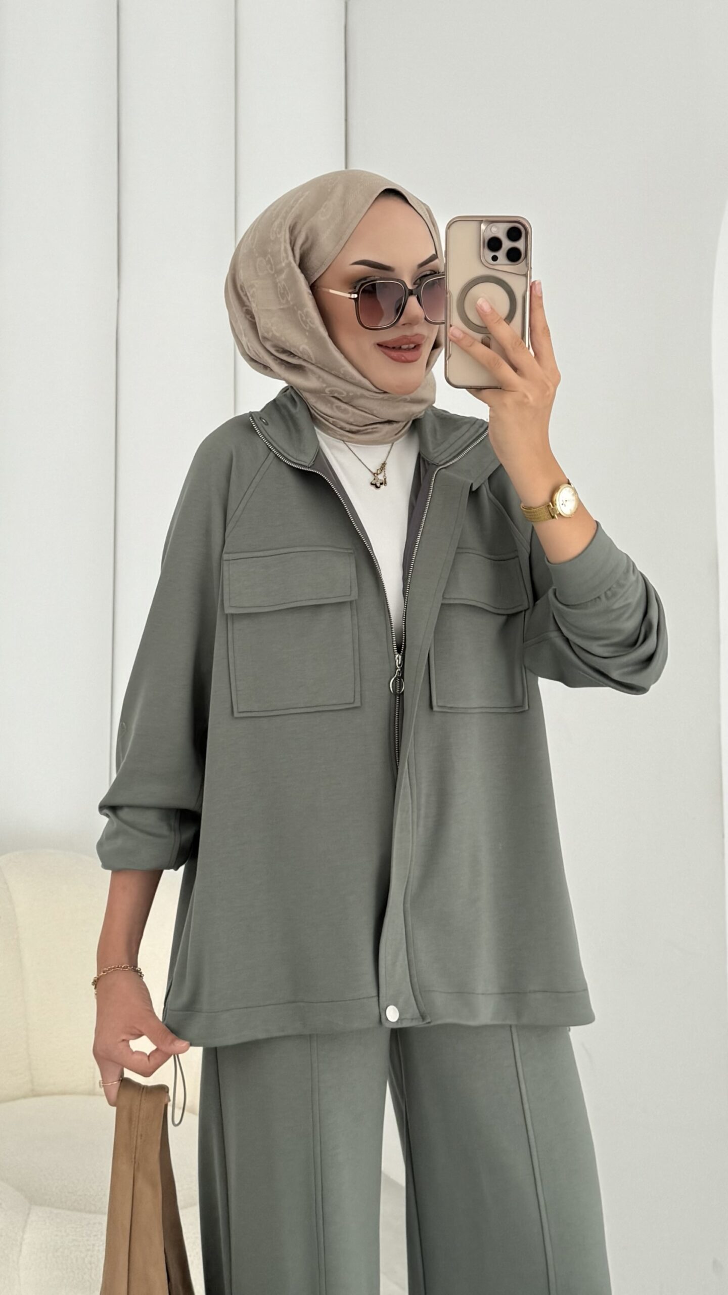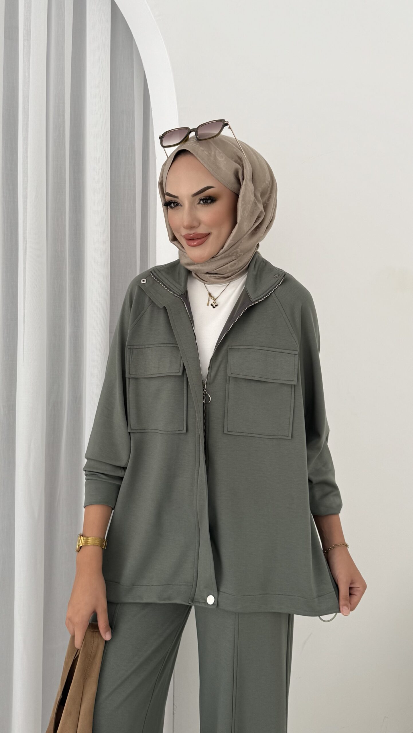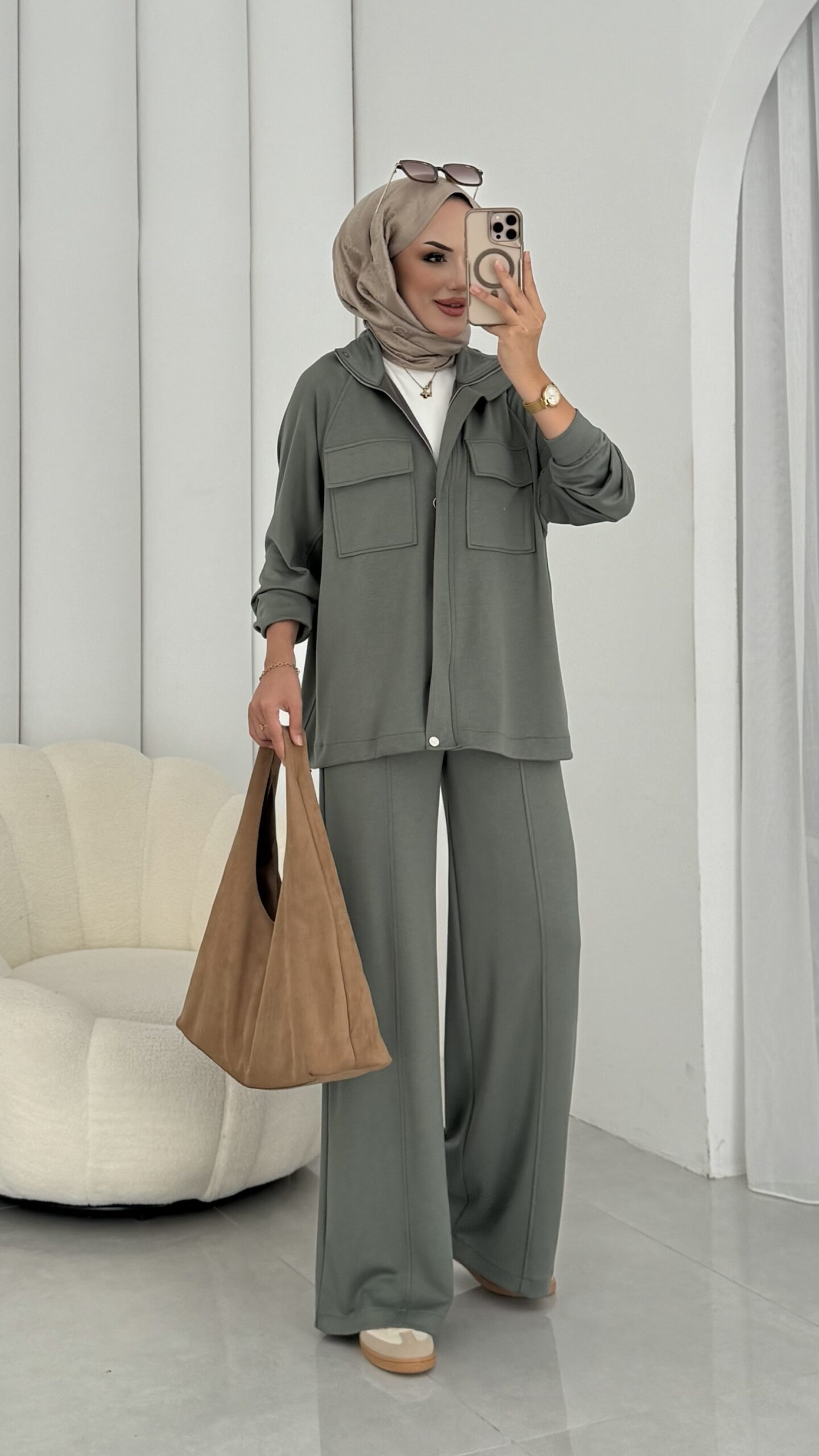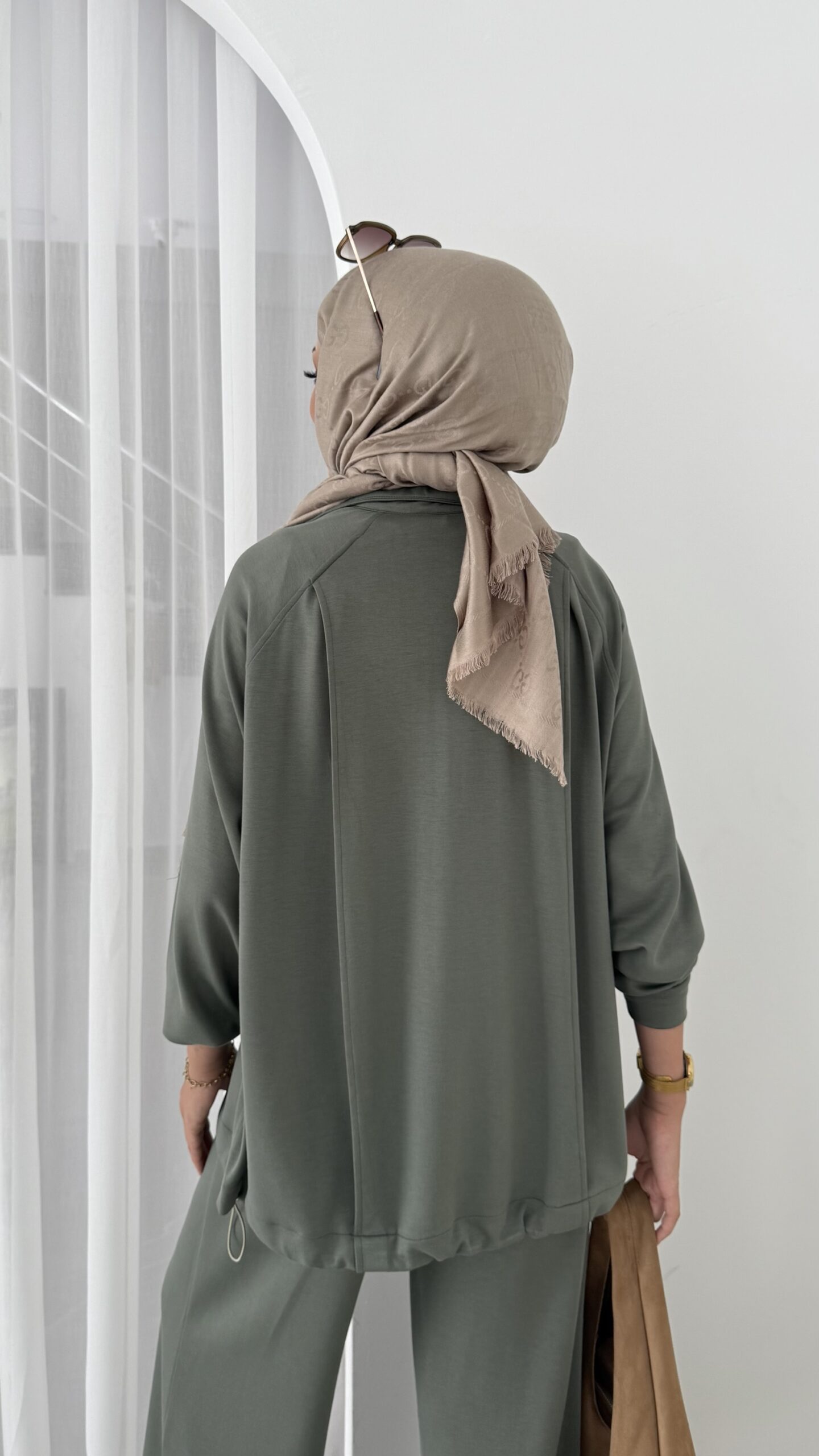 Premium Piliseli Arabic Çizgili İkili Takım – Haki