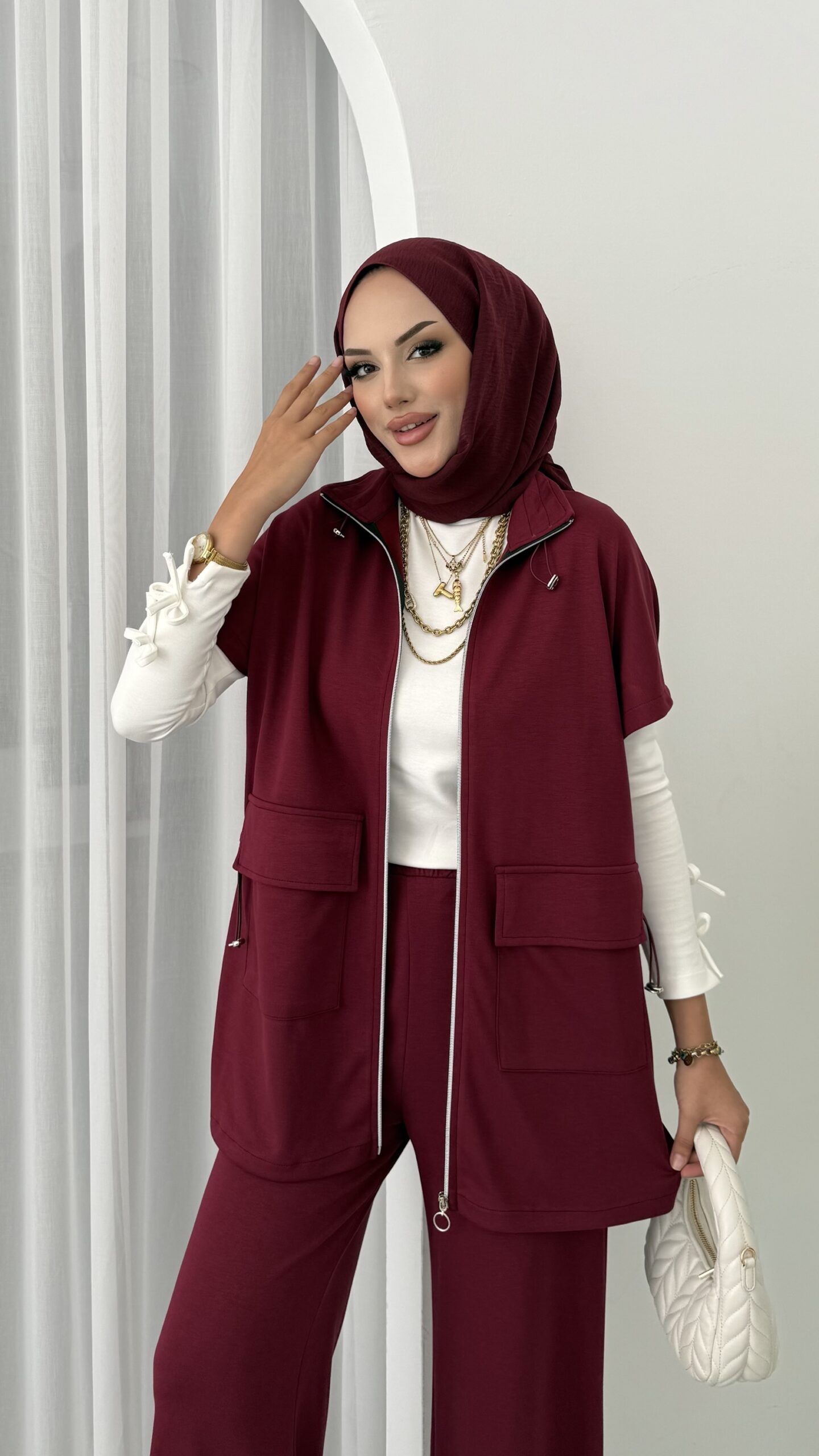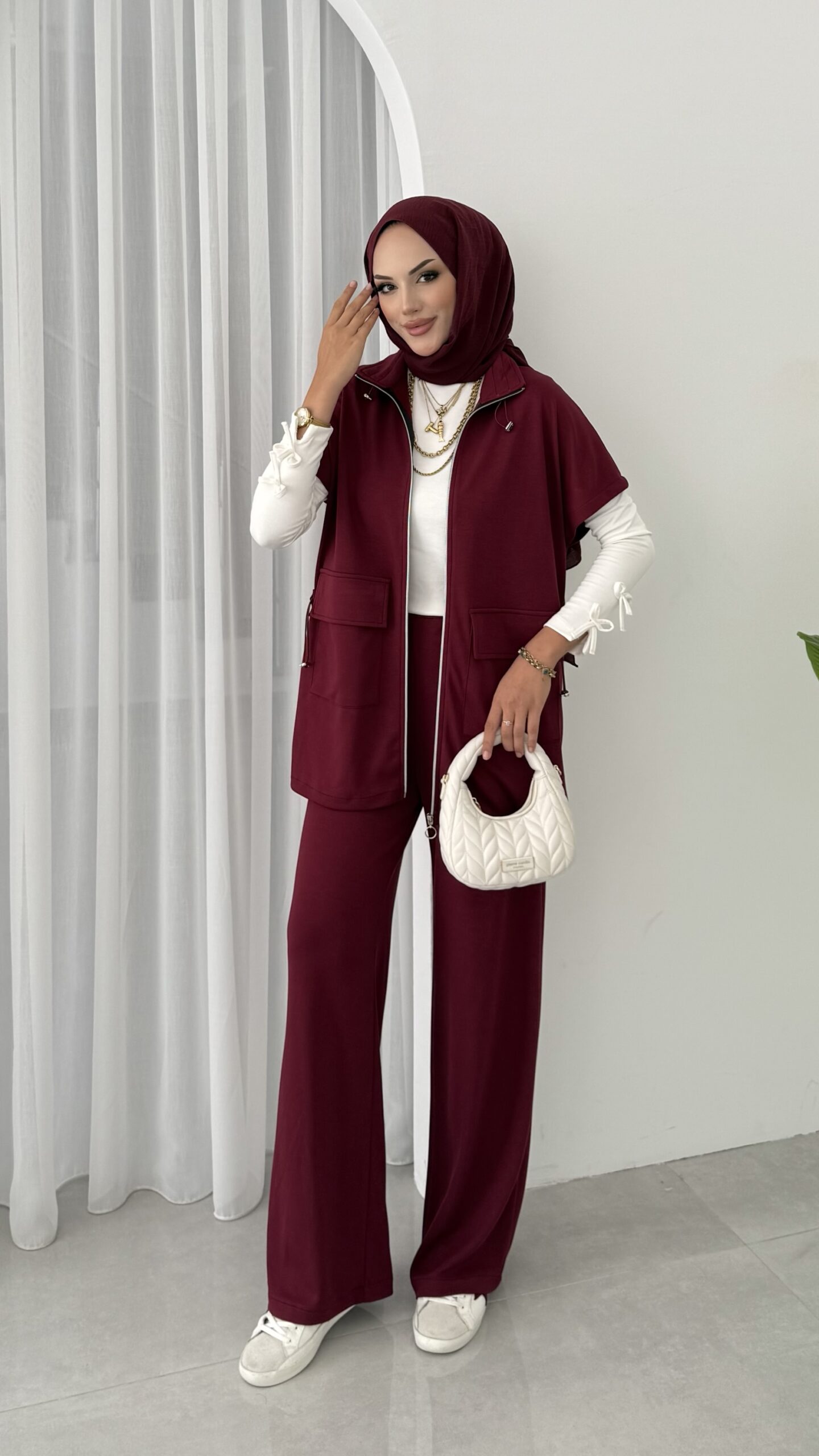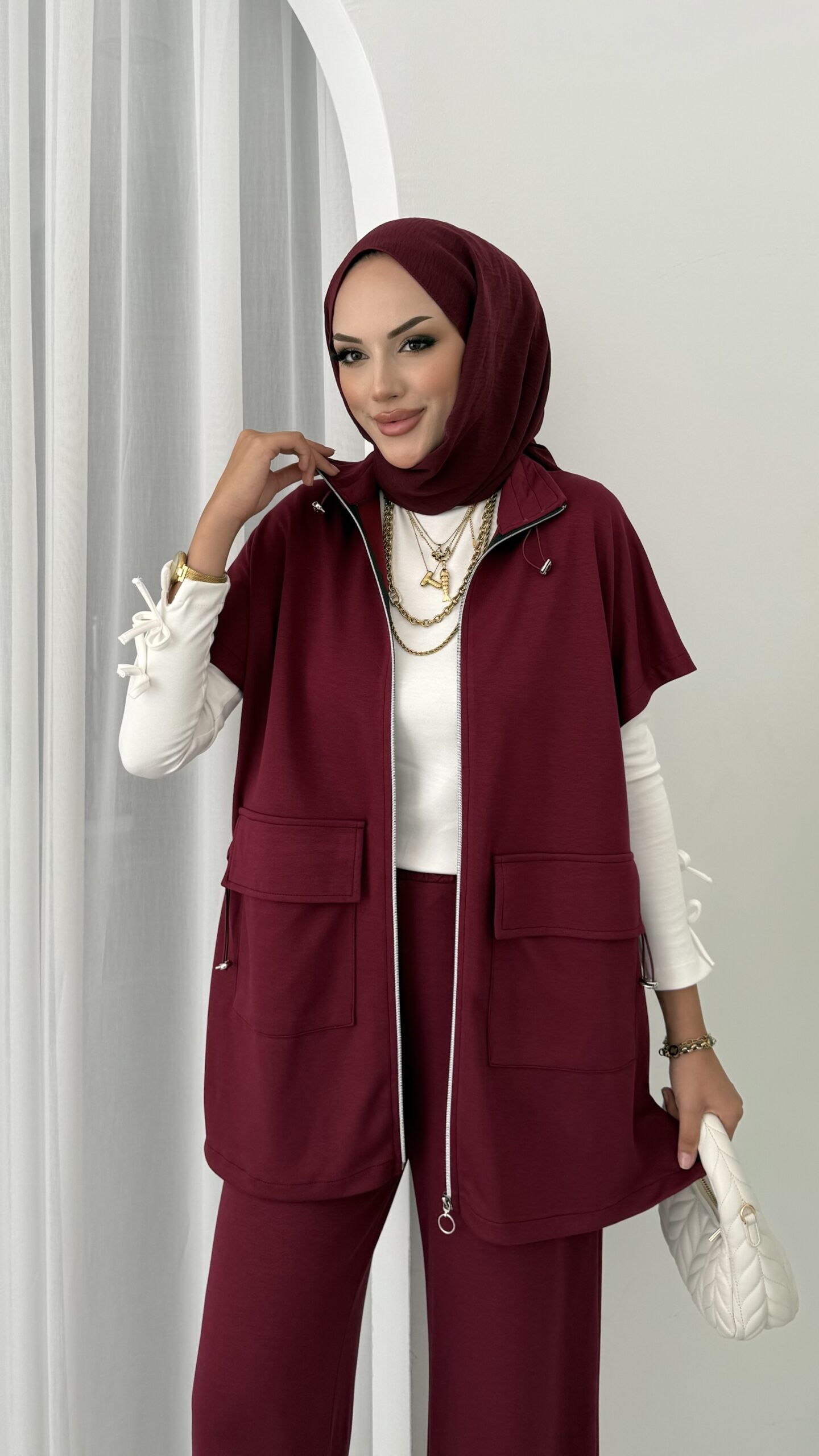 Oysh Muadil Yelekli İkili takım – Bordo