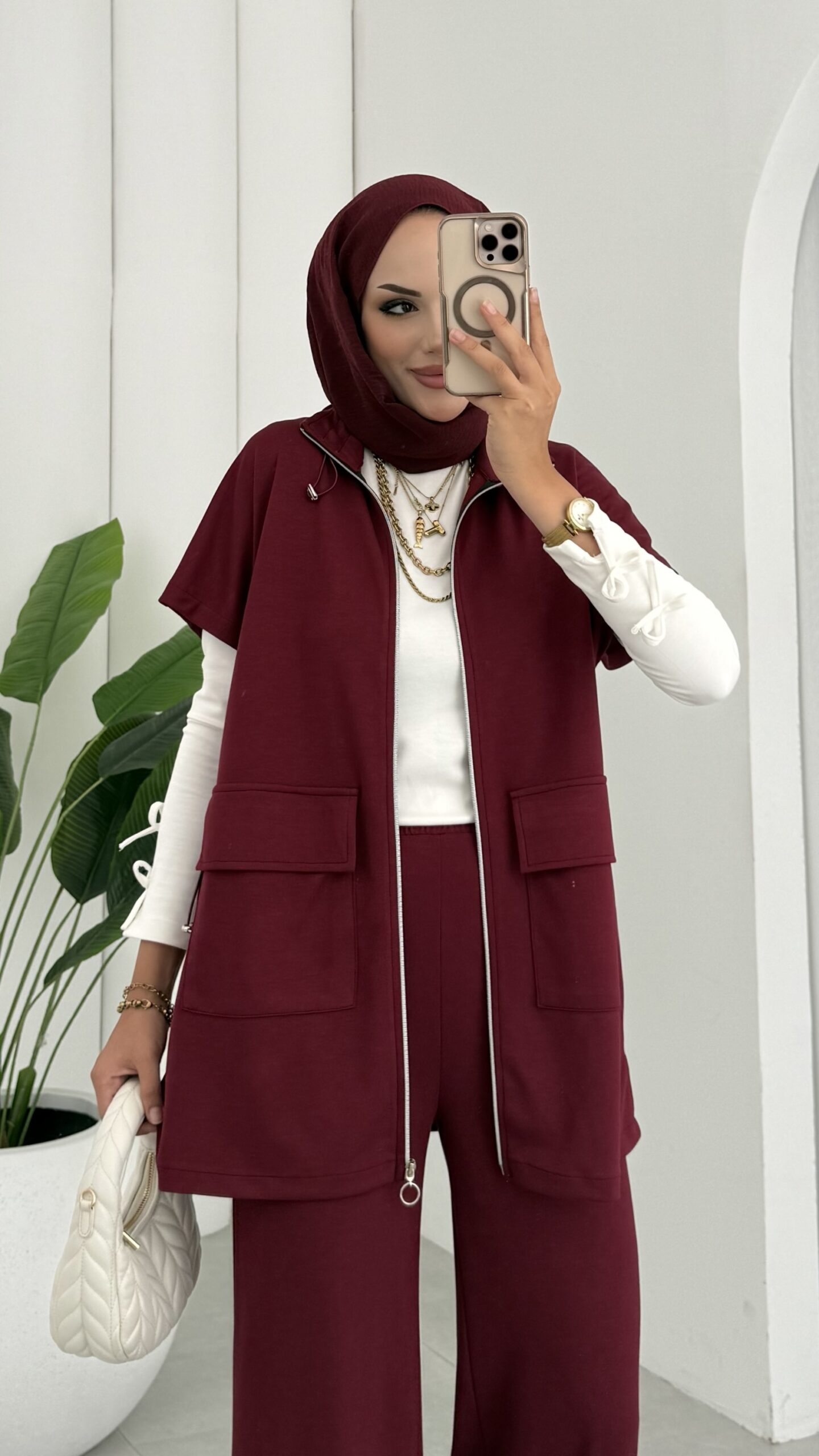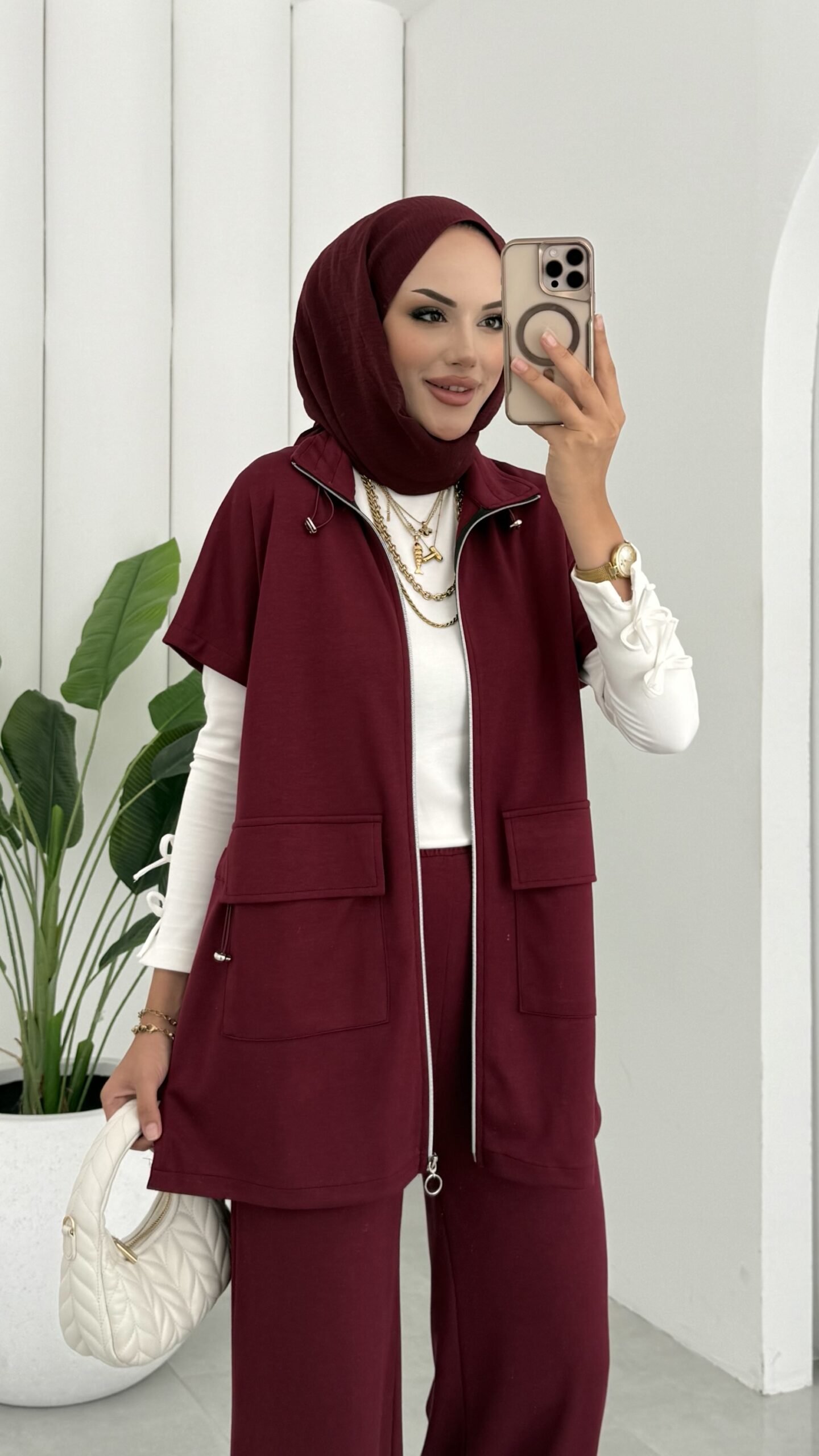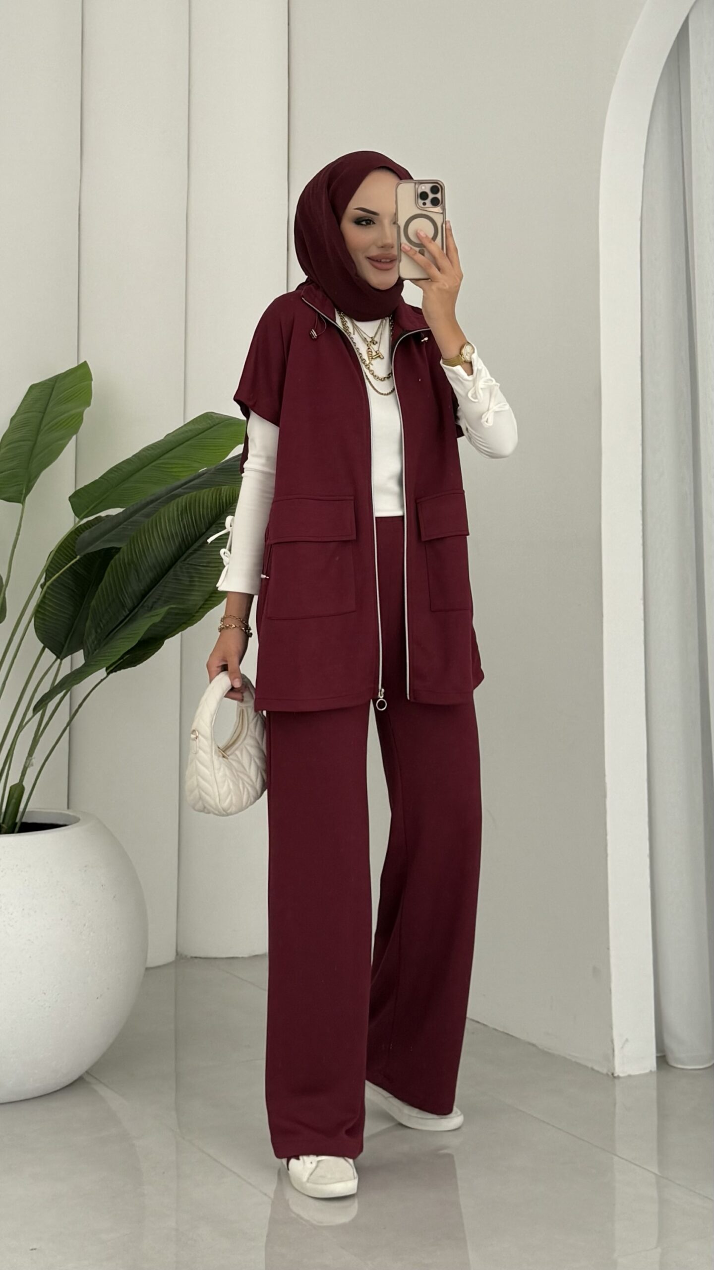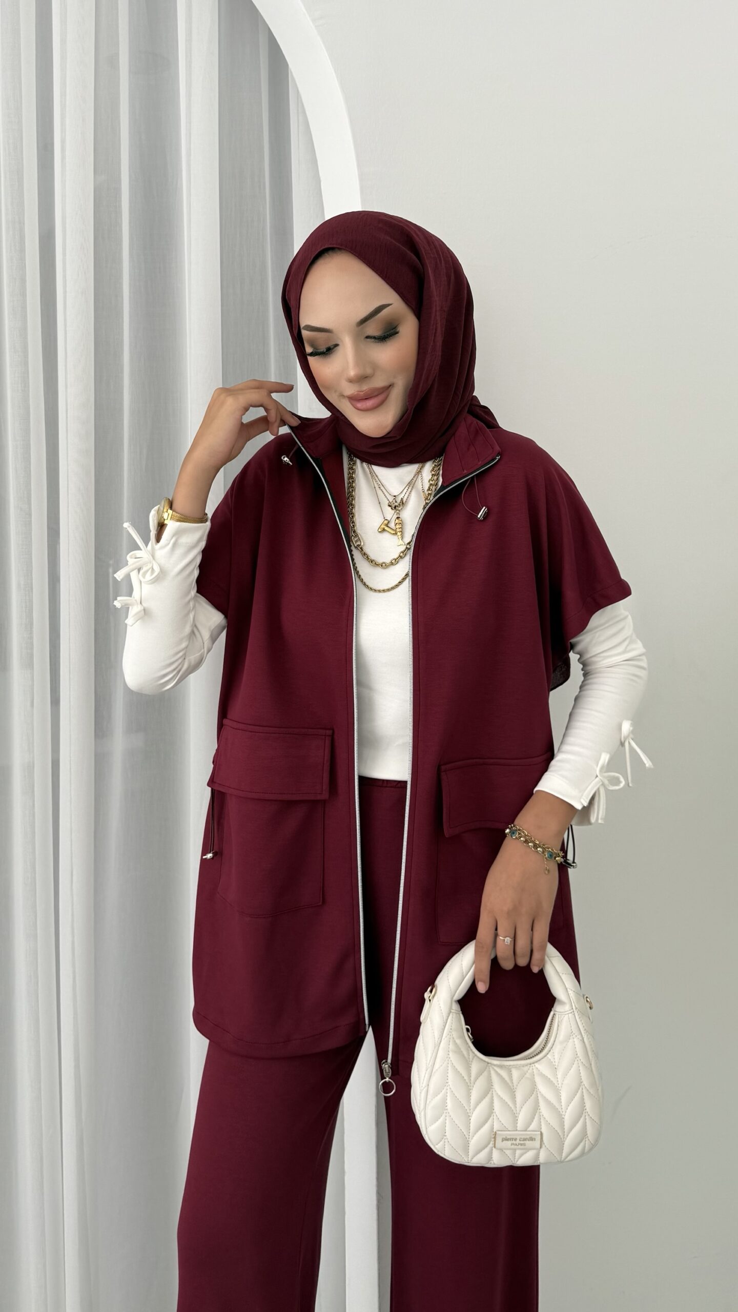 Oysh Muadil Yelekli İkili takım – Bordo