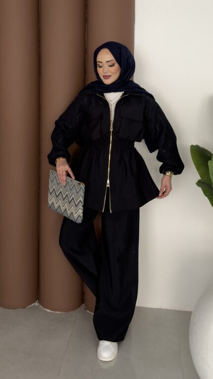 Dantel Garnili Fermuarlı Cupra İkili Takım – Lacivert
