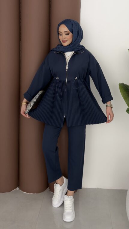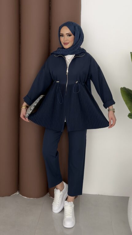 Violet Piliseli Double Blazer İkili Takım – Lacivert