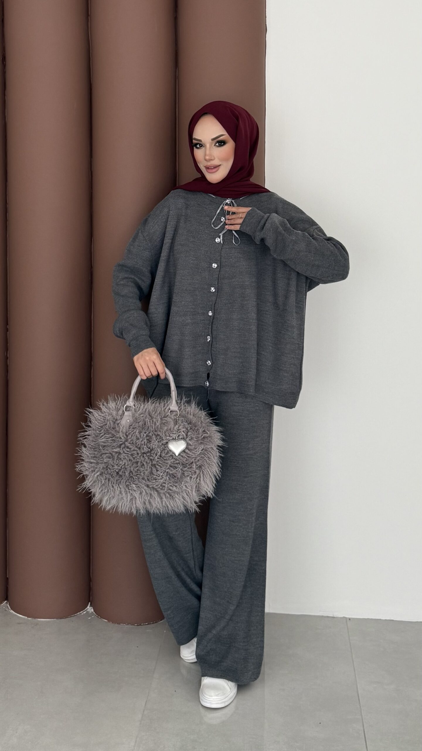 Lolita Çıkarılabilir Kürklü Triko İkili Takım – Bordo