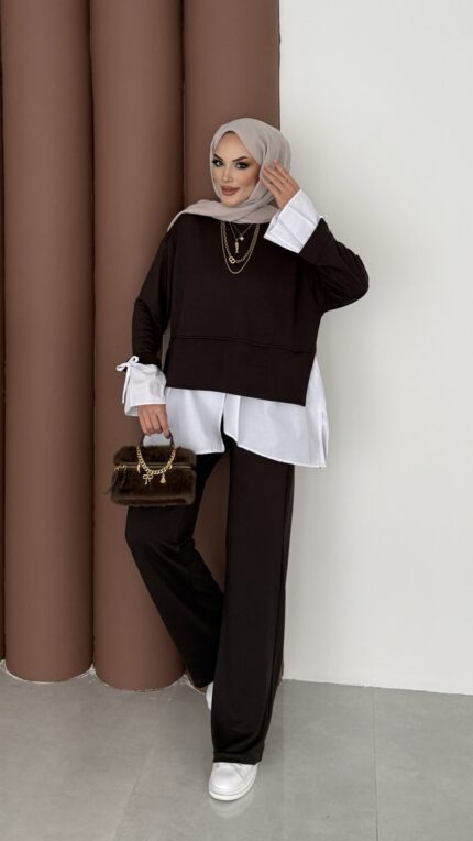 Gömlek Detaylı Oysh Takım – Kahverengi