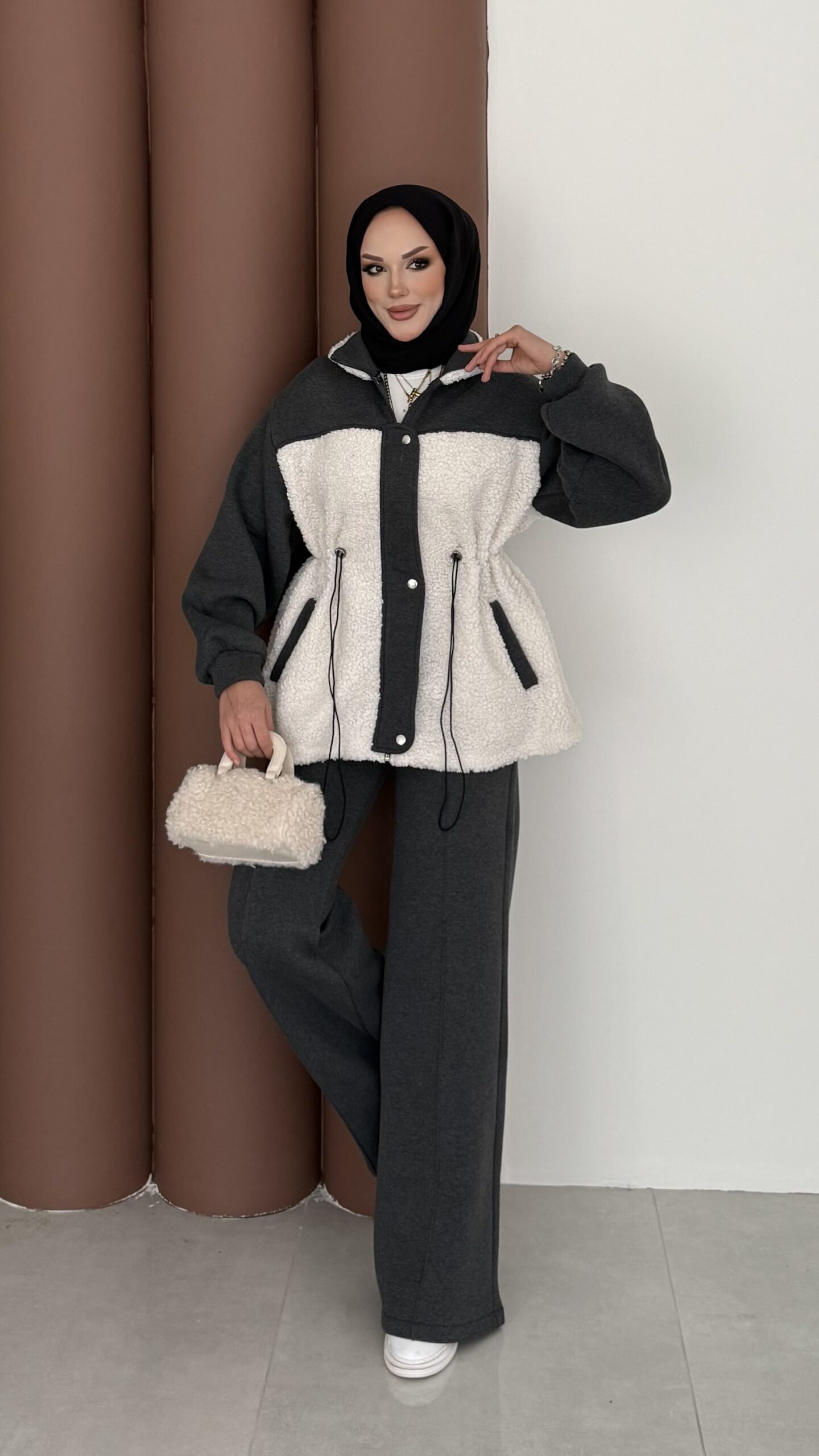Peluş Garnili Şardonlu İkili Takım – Antrasit