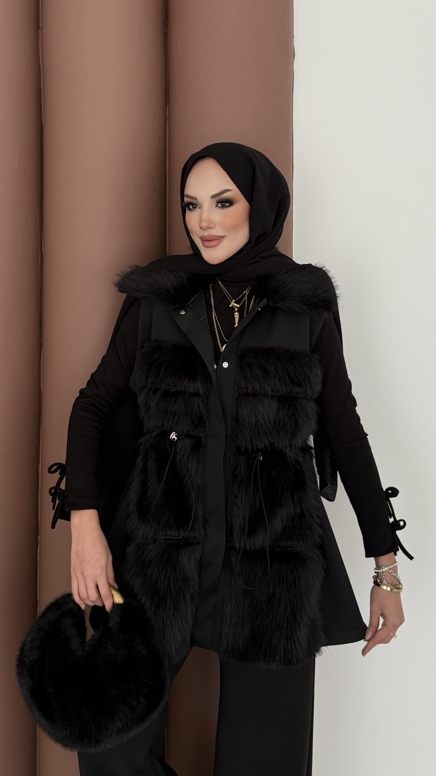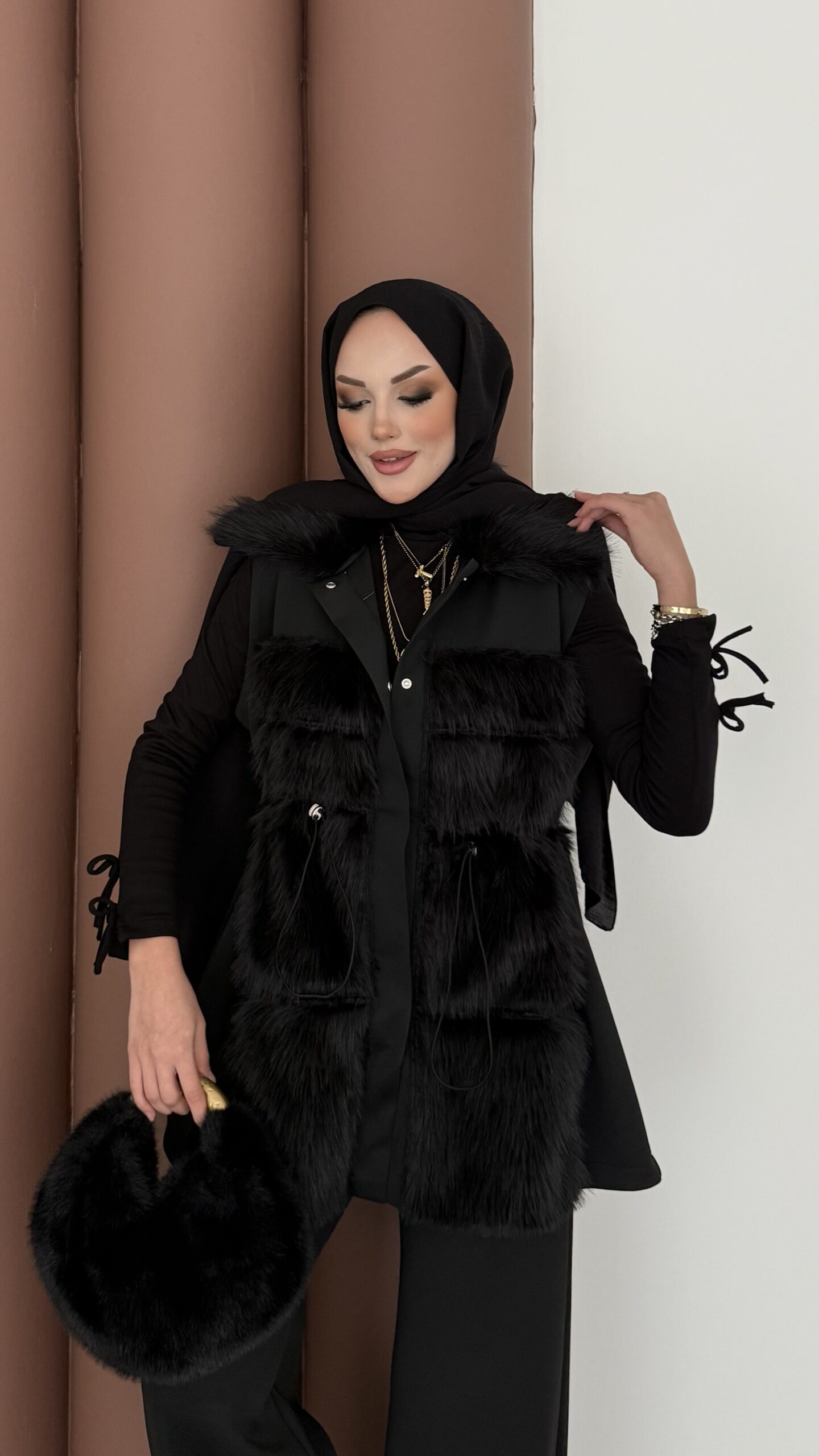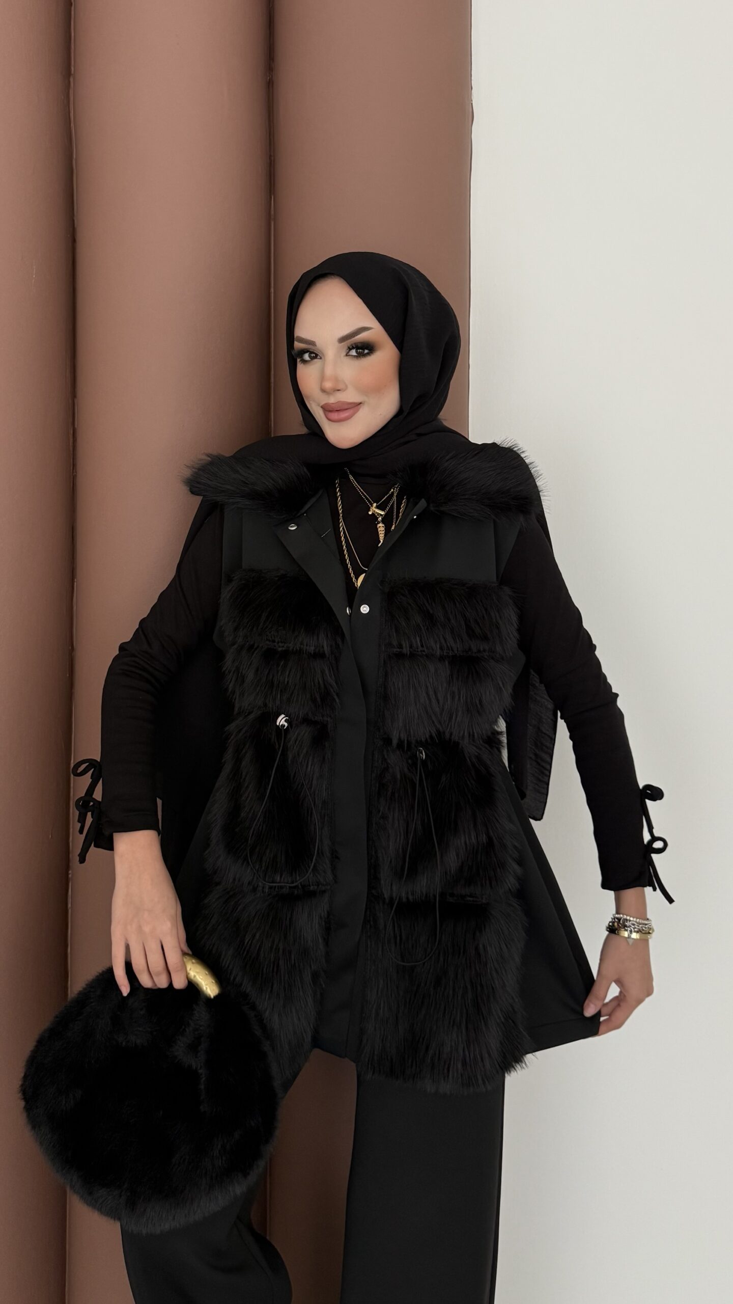 Paris Scuba Kürklü Yelek İkili Takım – Siyah