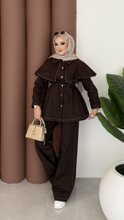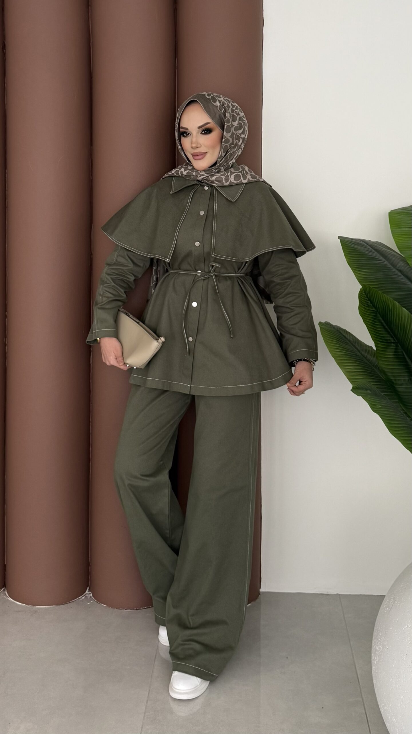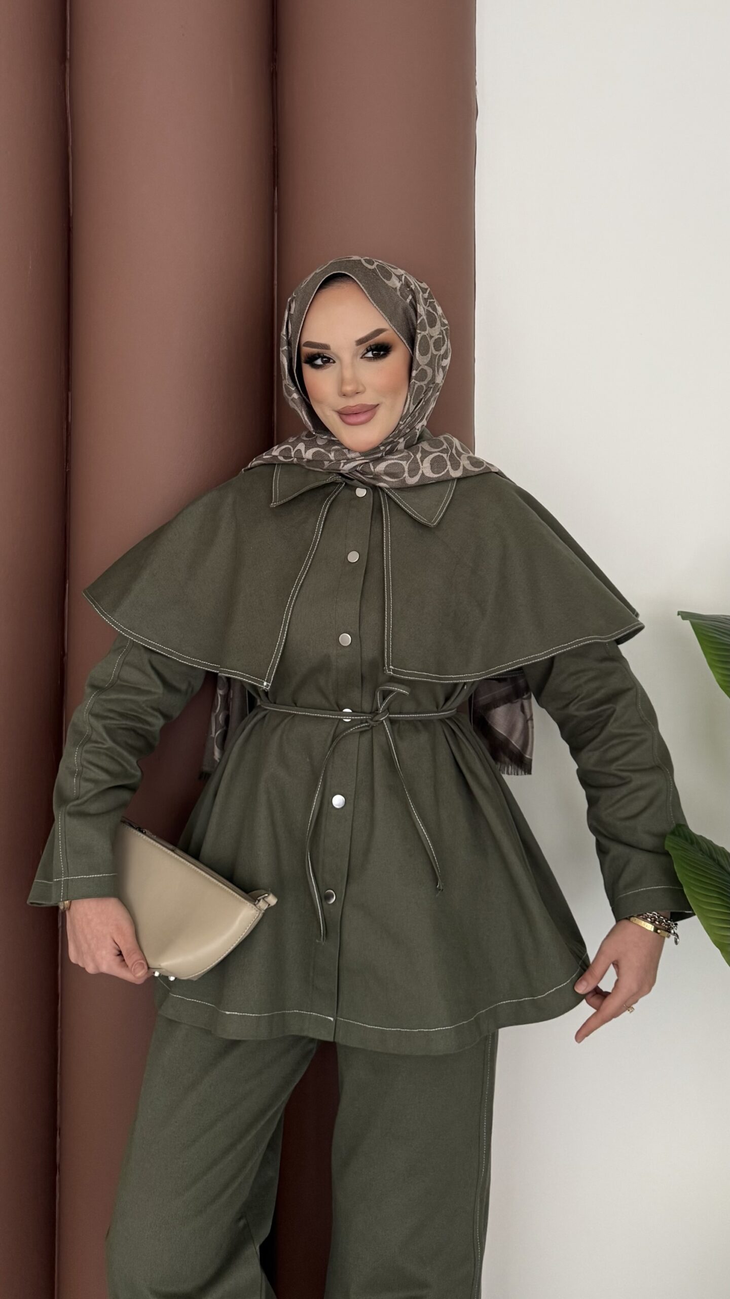 Pelerin Detaylı Gabardin İkili Takım – Haki