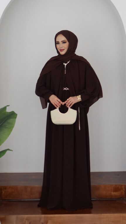 Pelerin Kemerli Şifon Tulum – Kahverengi