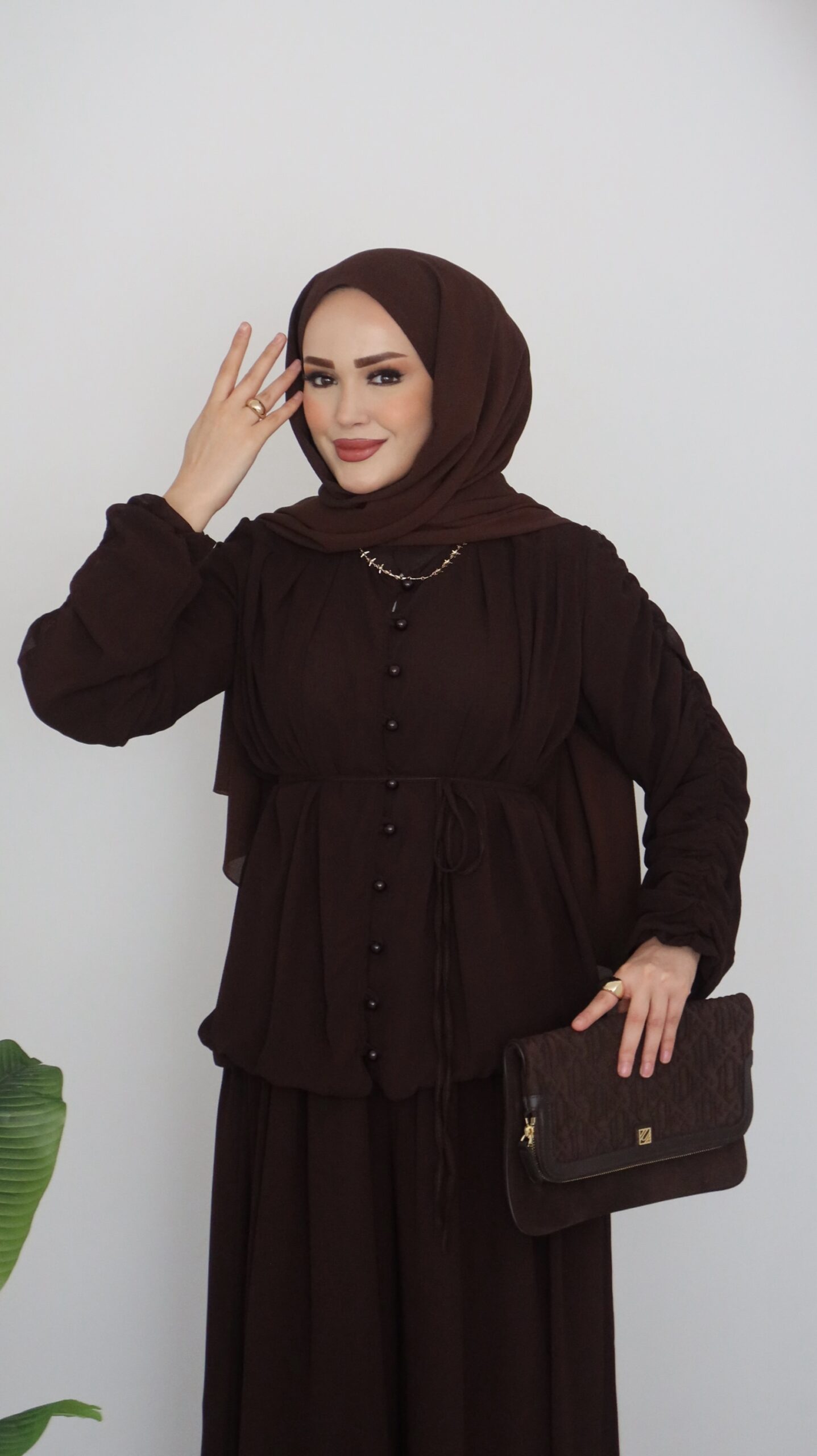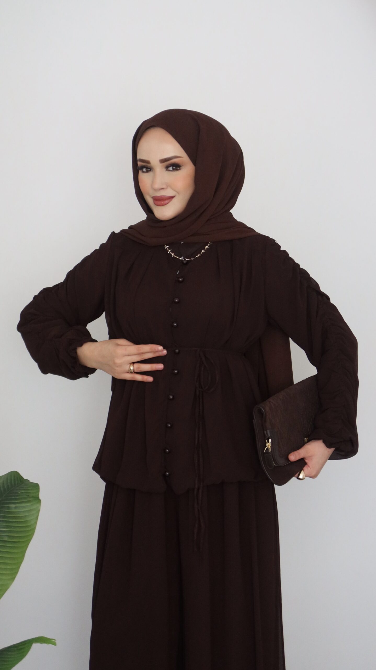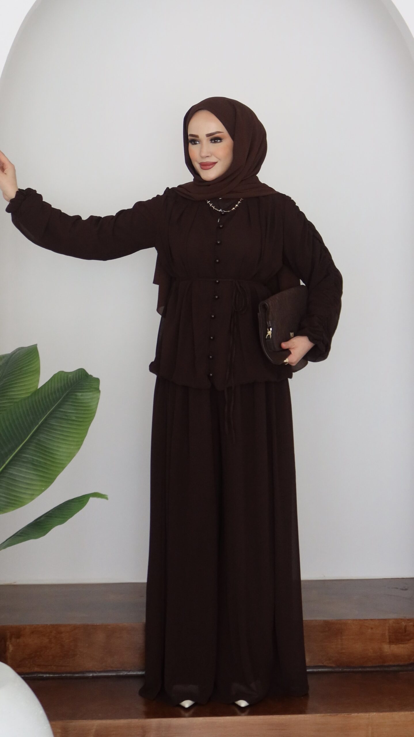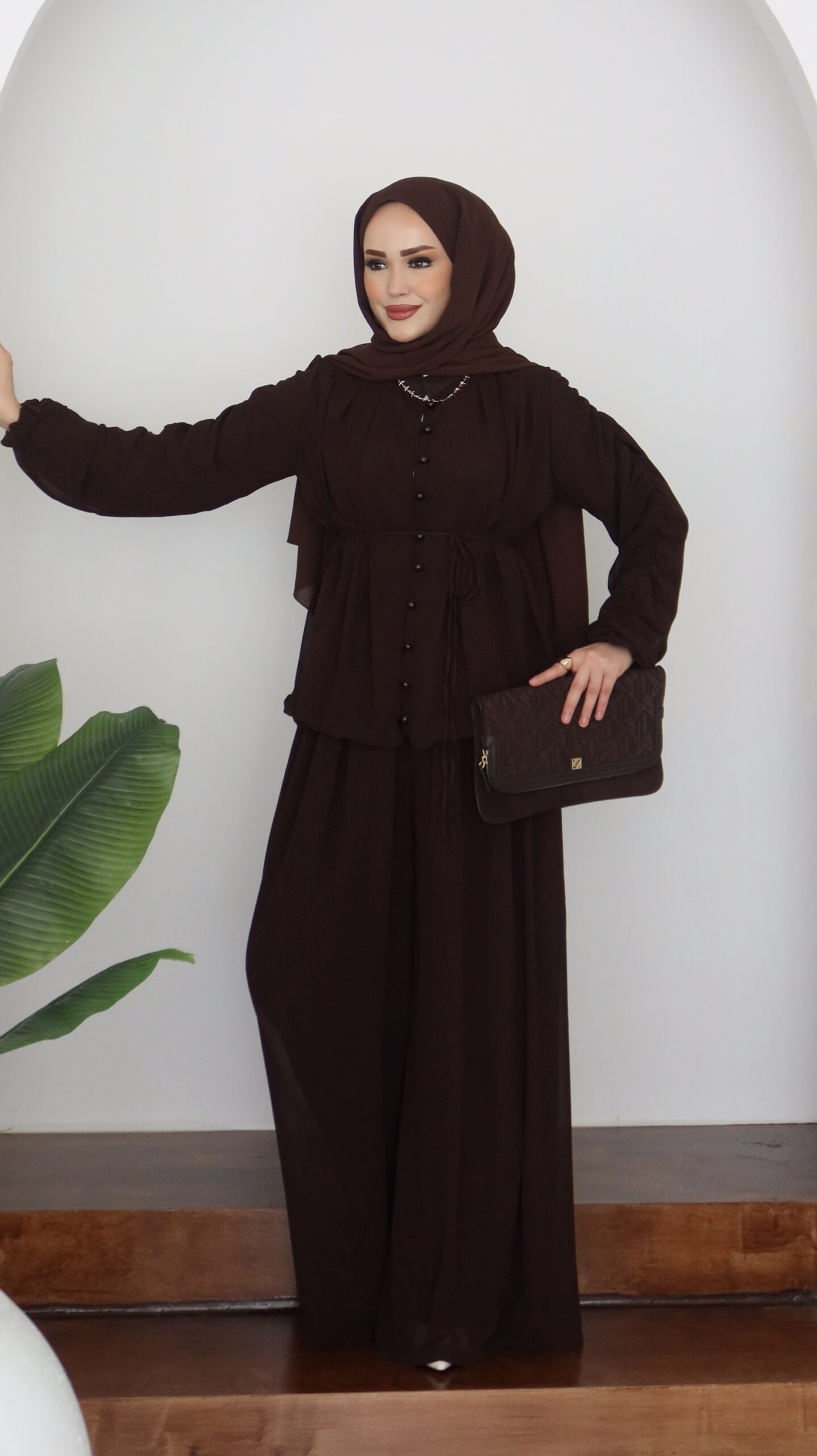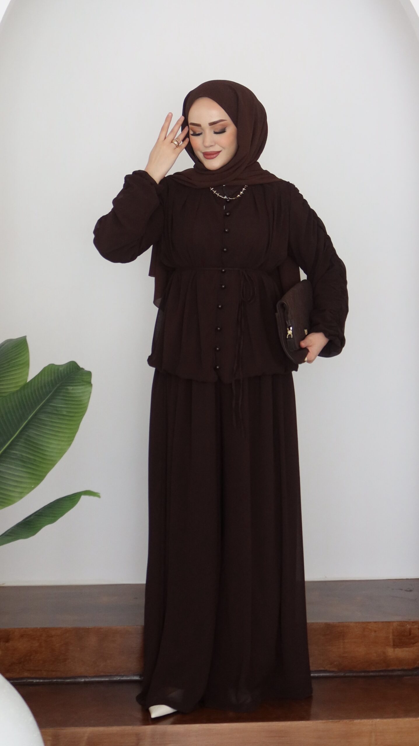 Pera Şifon Düğmeli İkili Takım – Kahverengi