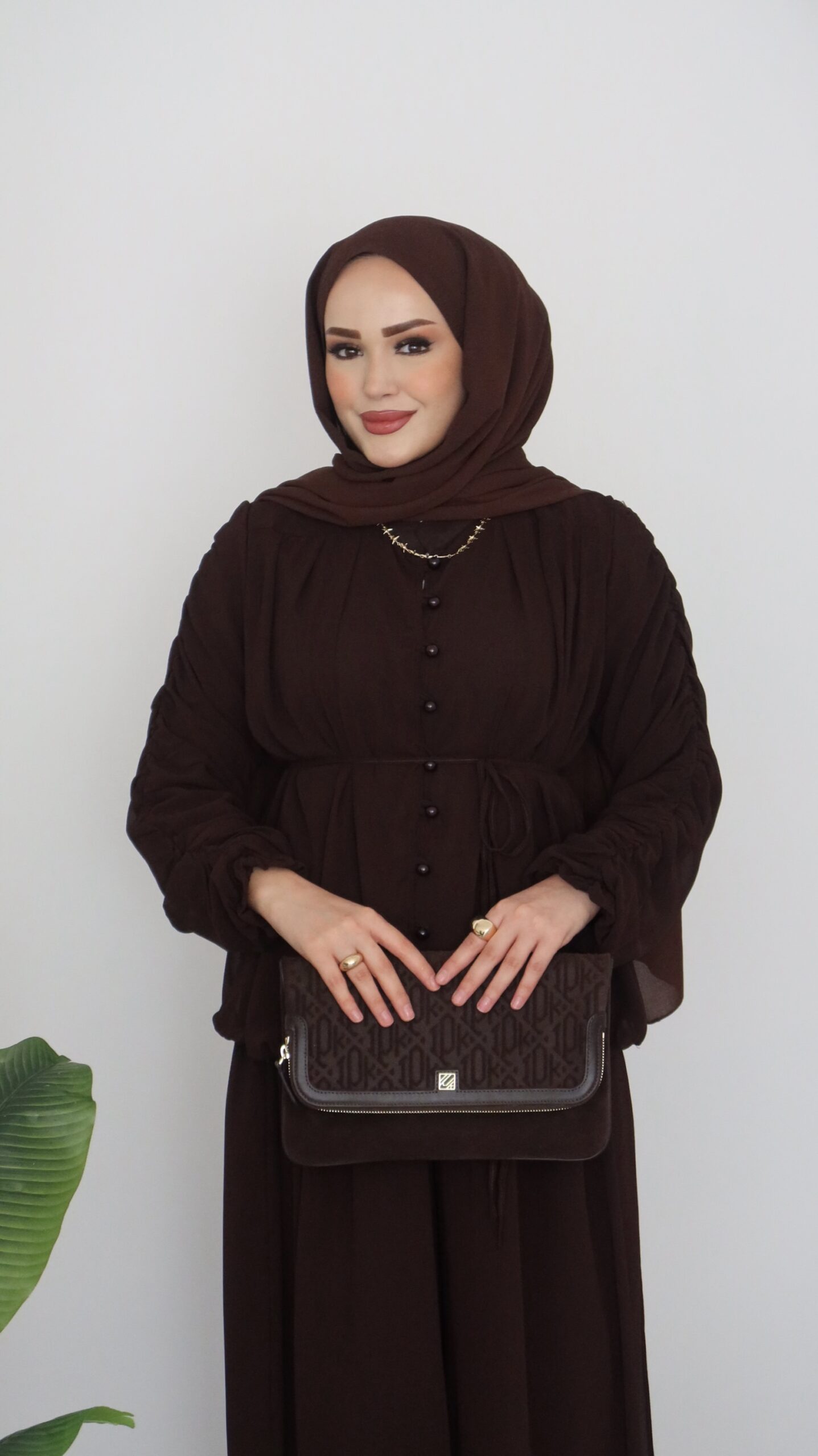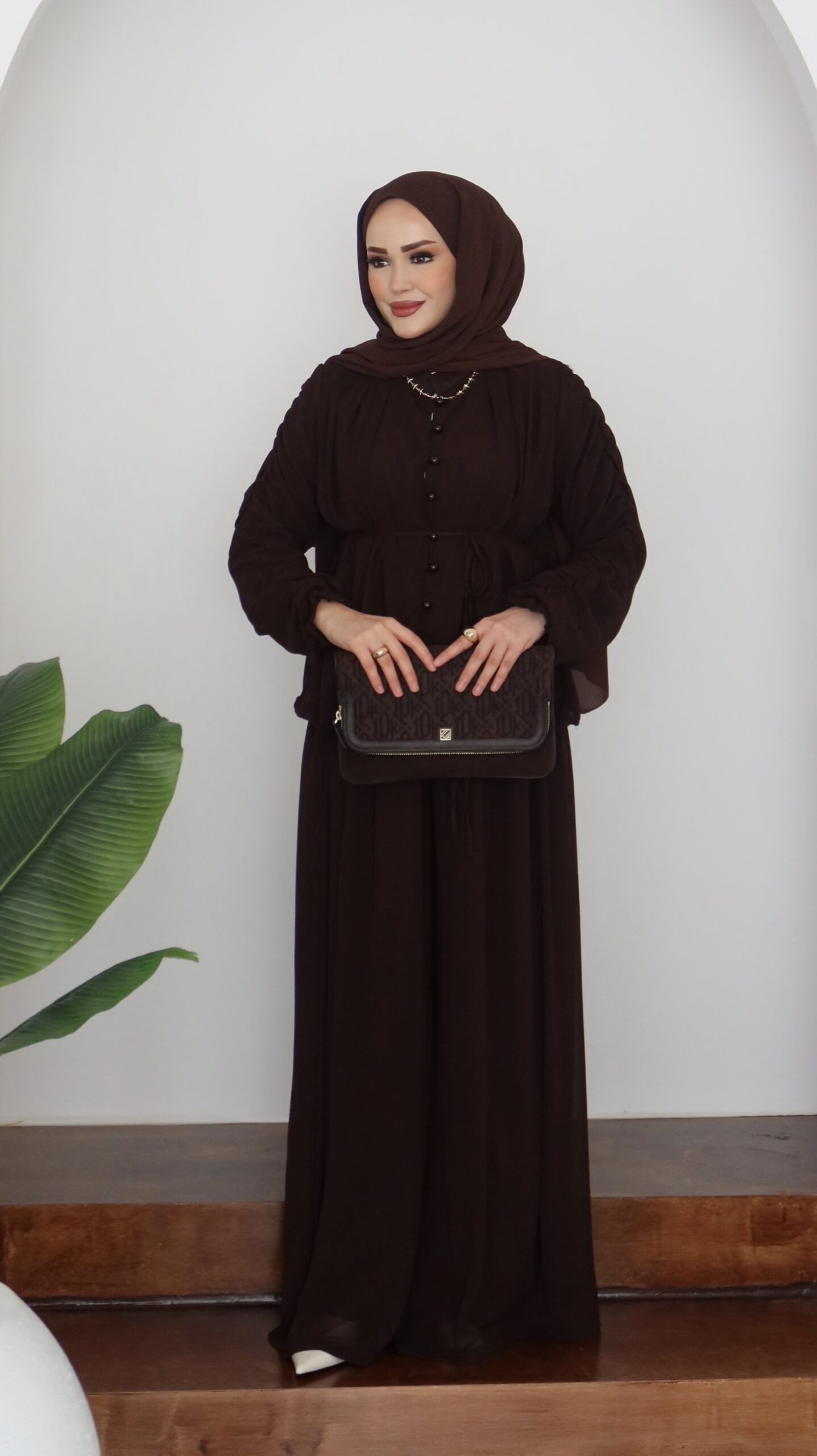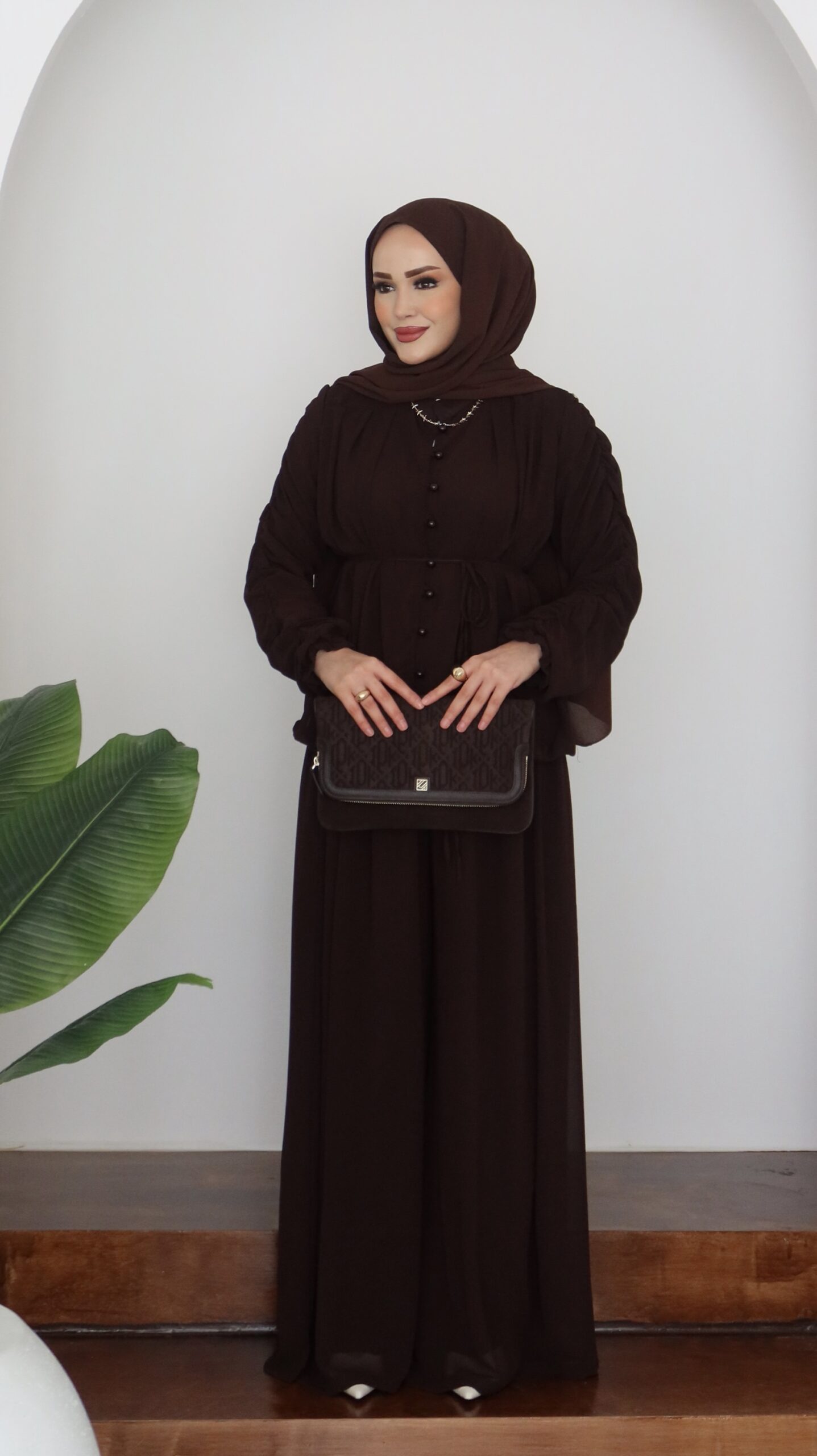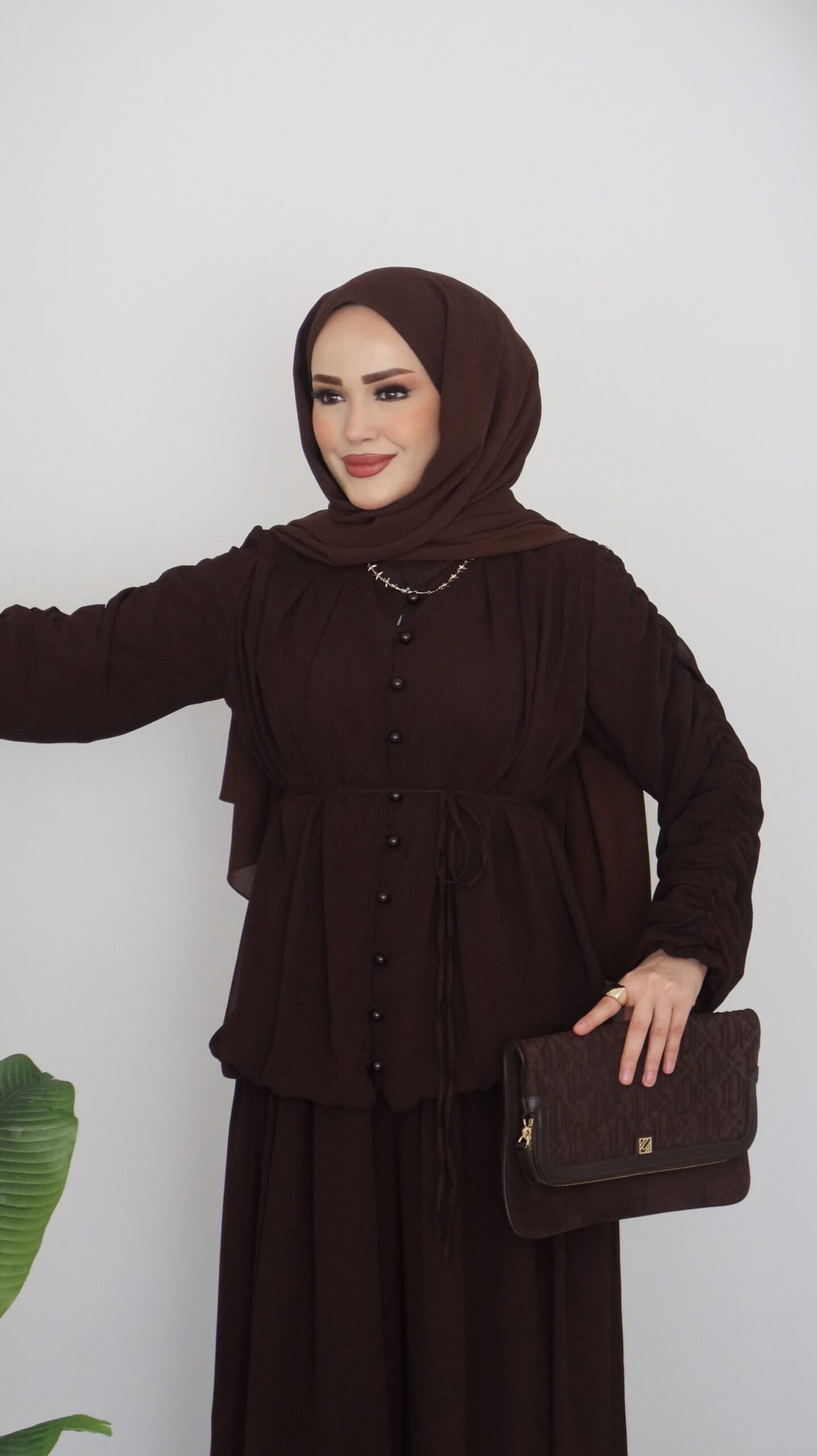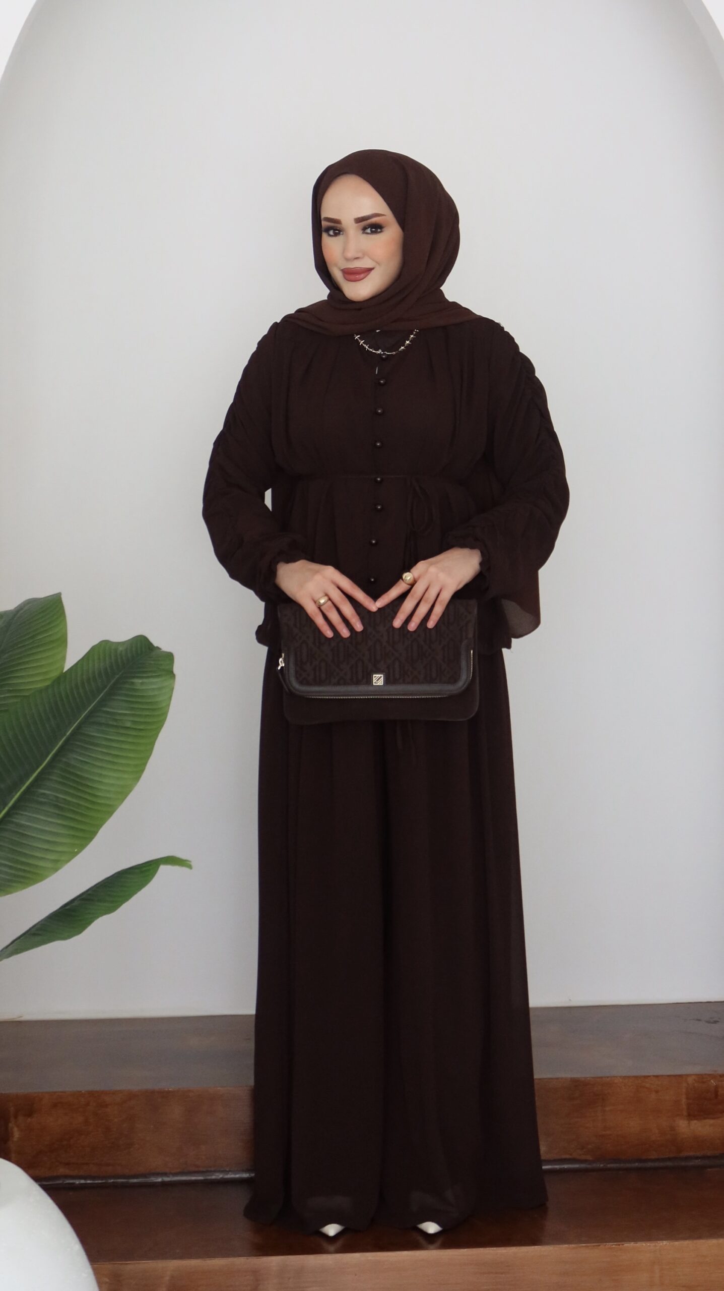 Pera Şifon Düğmeli İkili Takım – Kahverengi