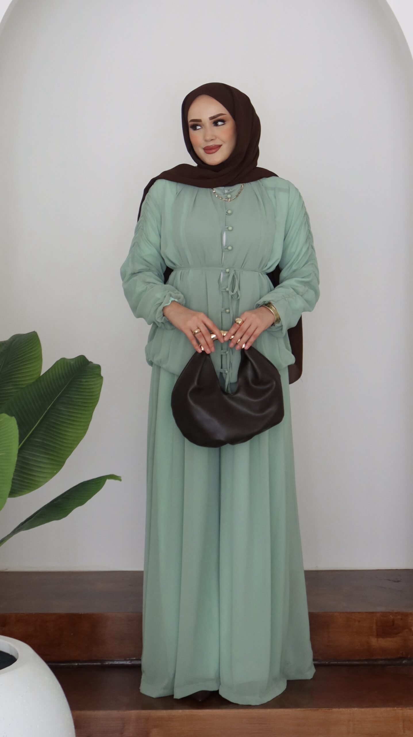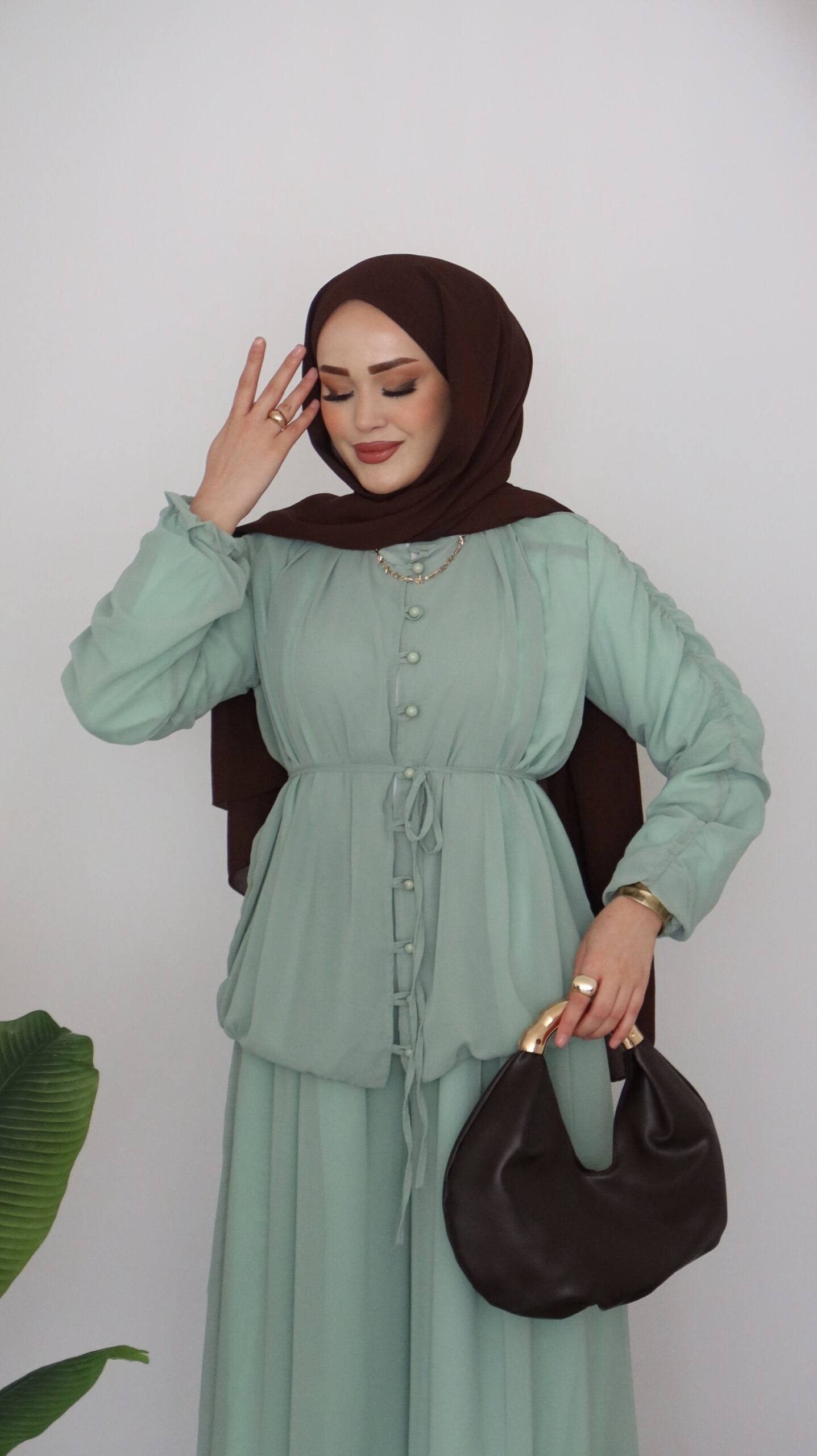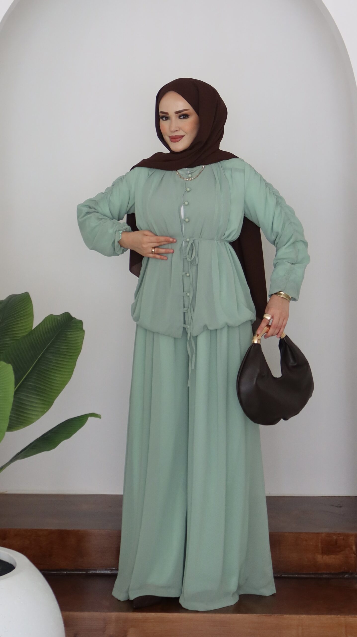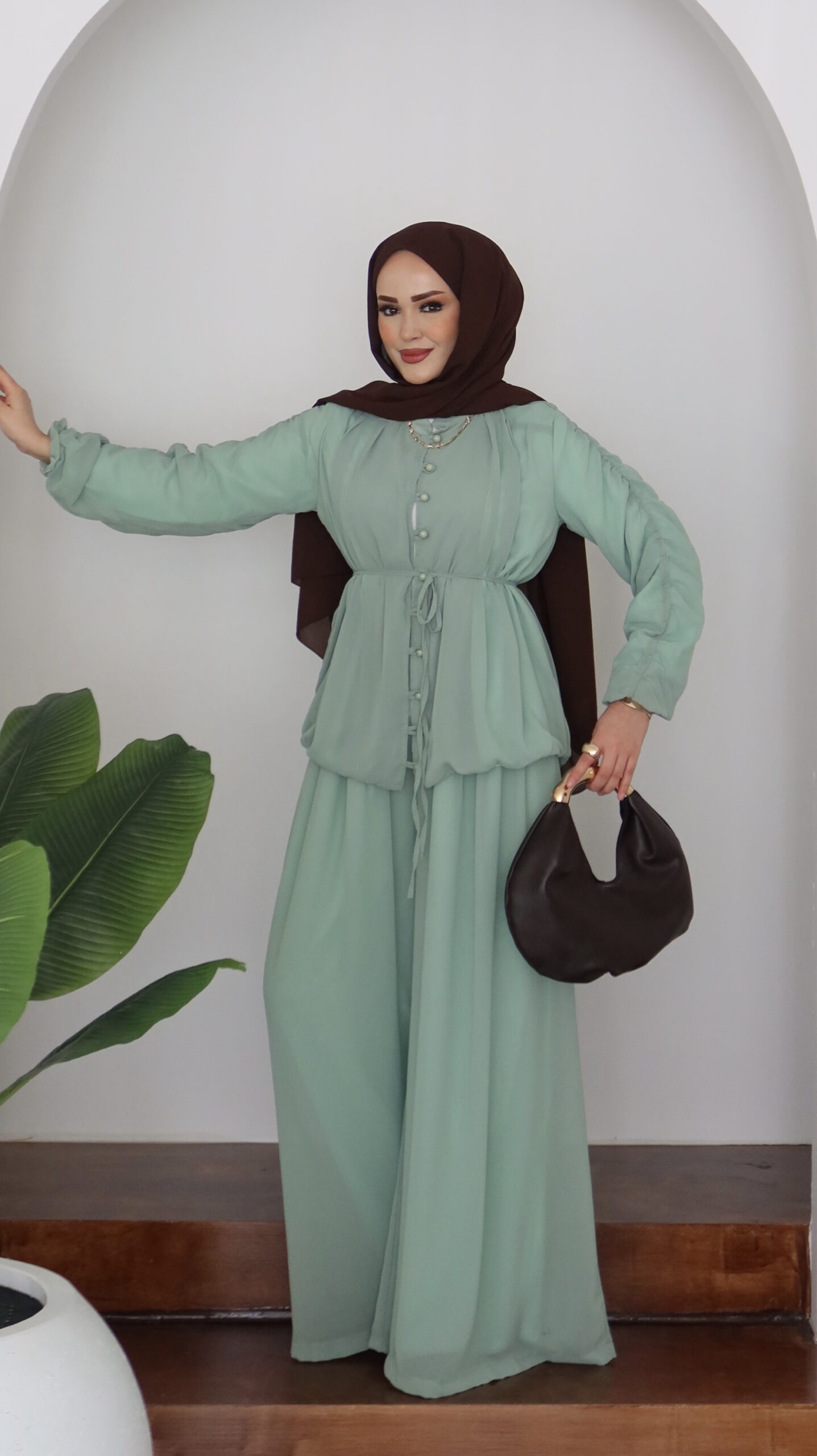 Pera Şifon Düğmeli İkili Takım – Mint