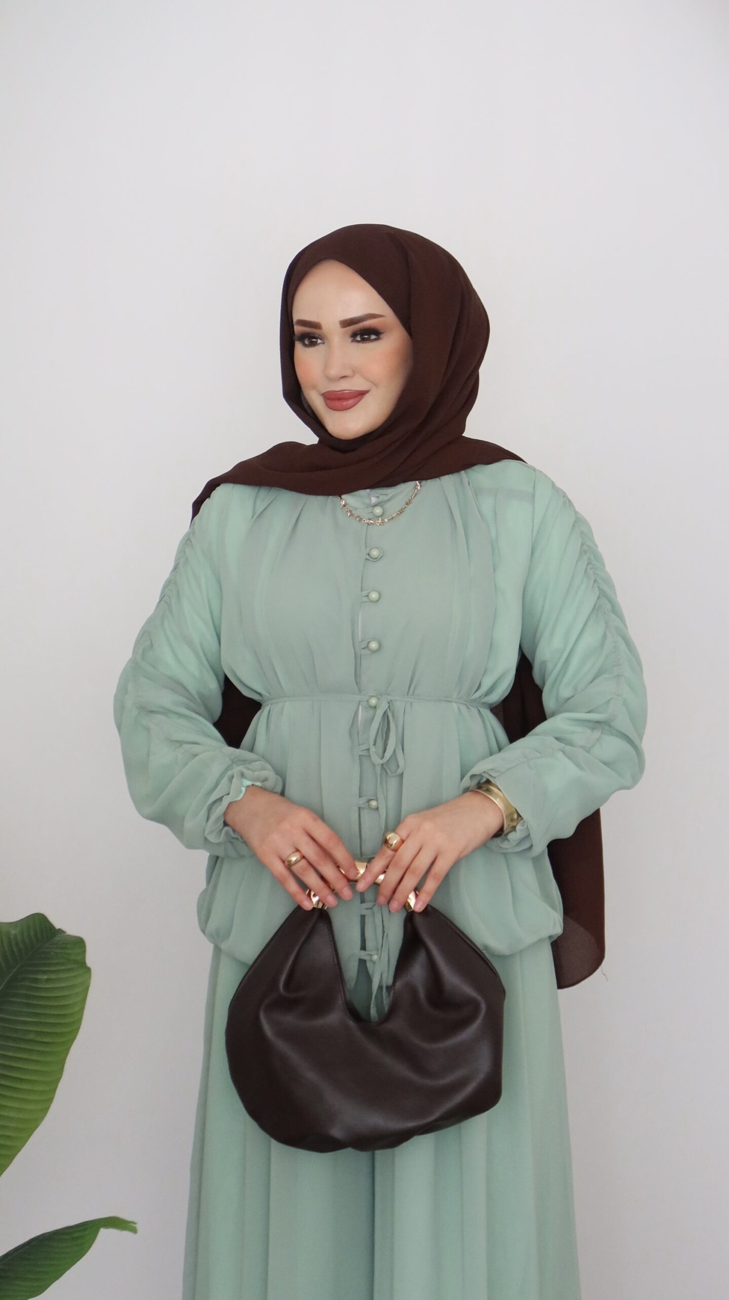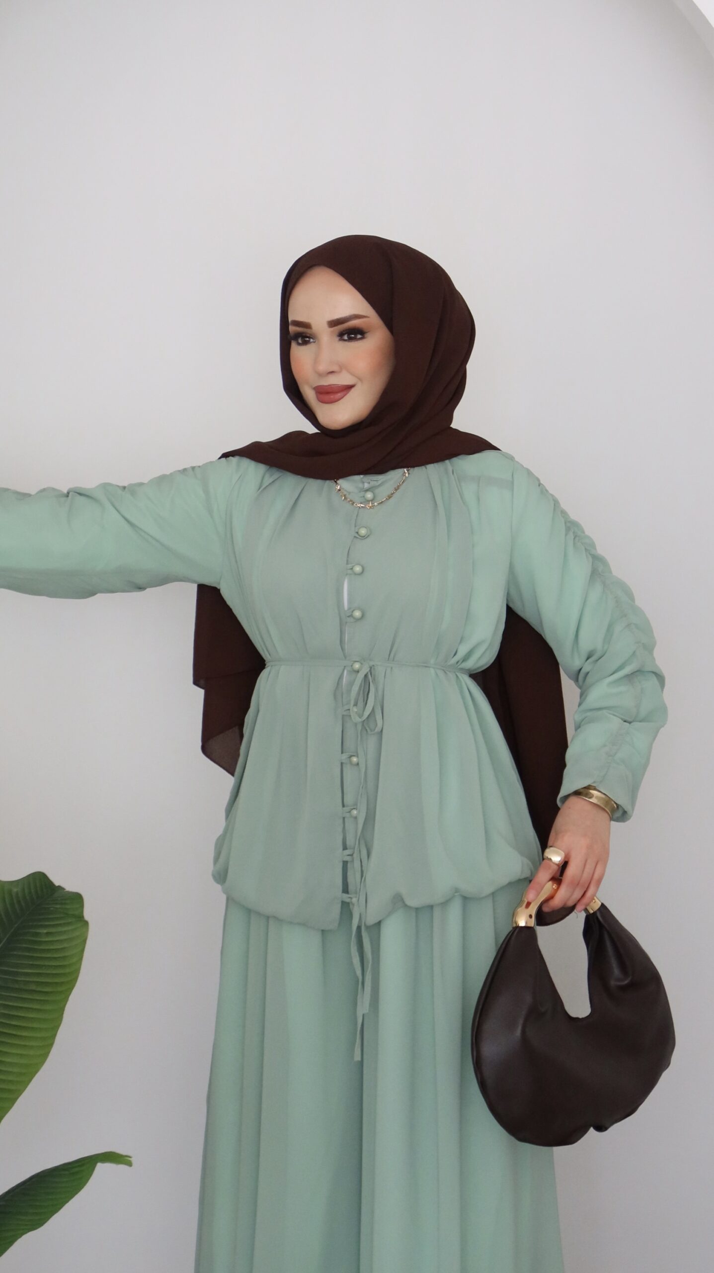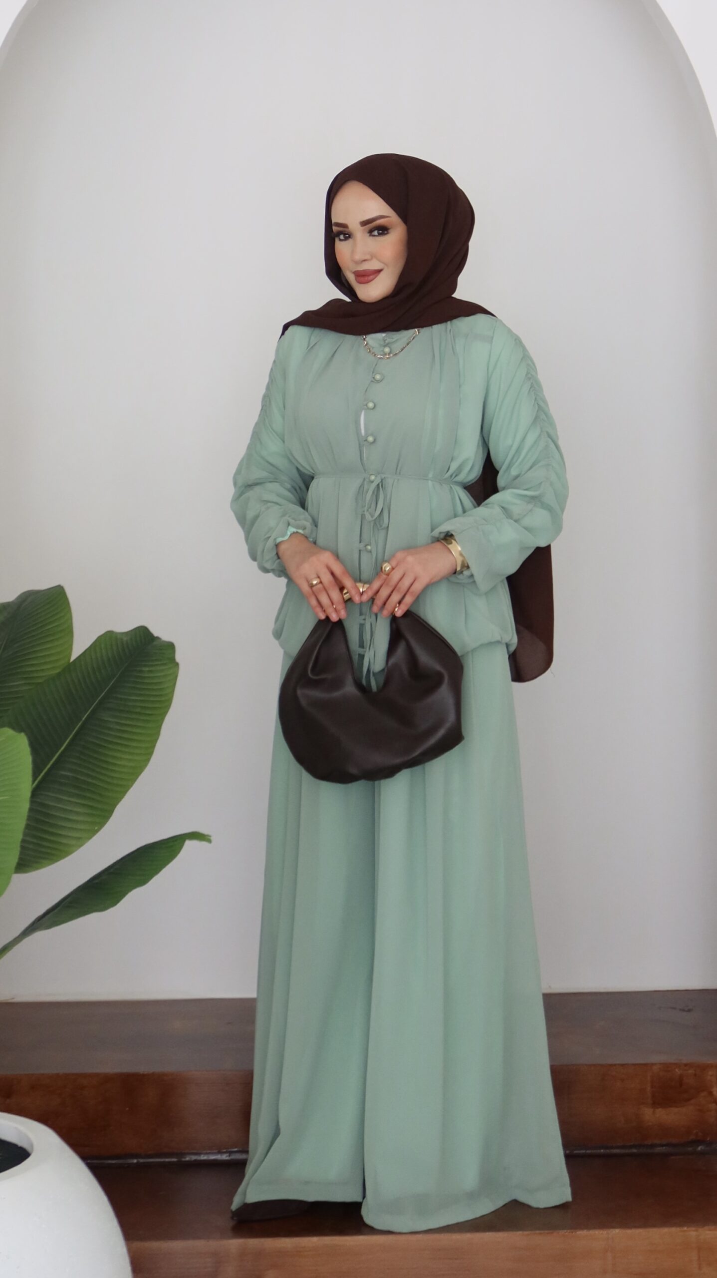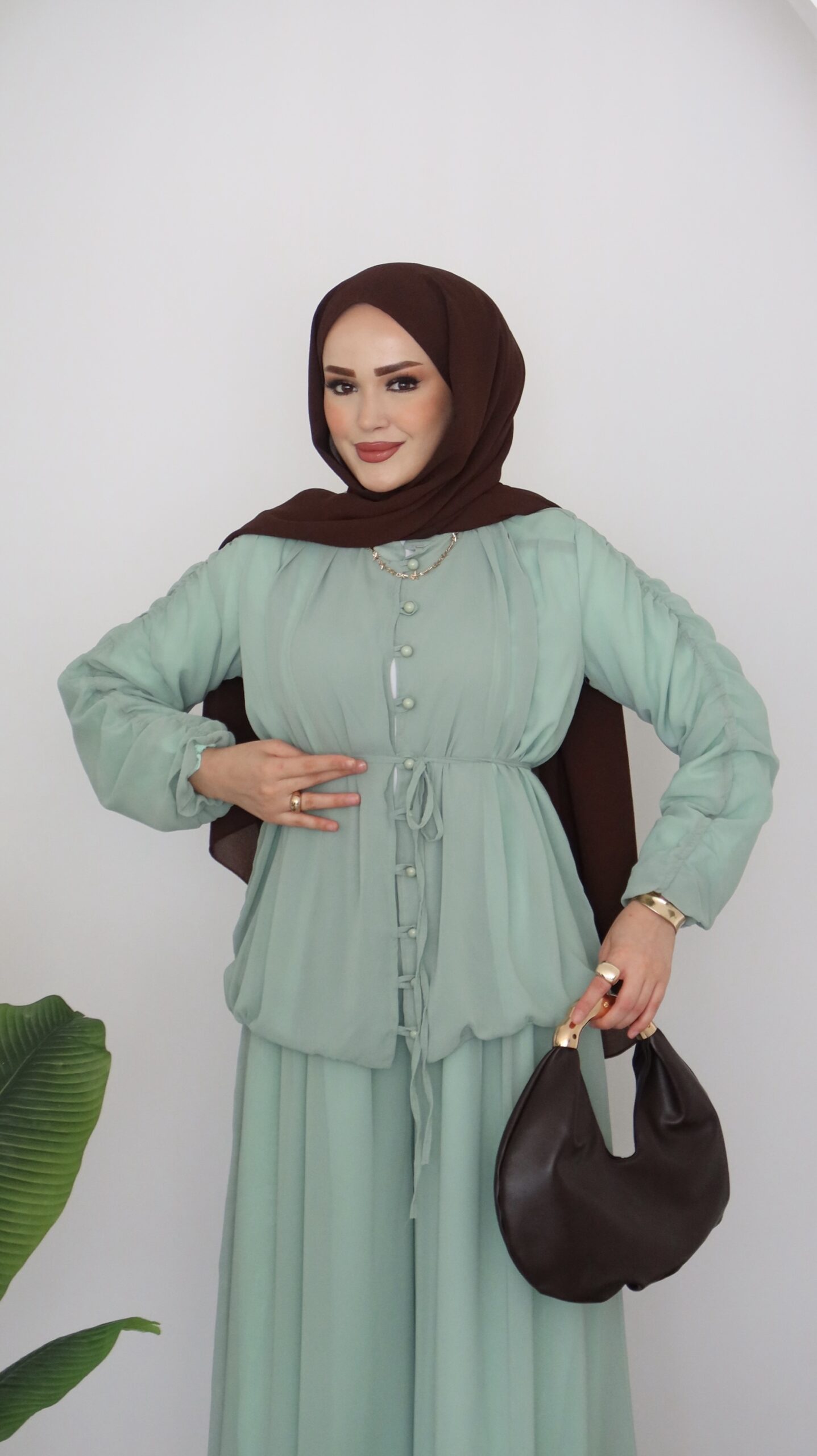 Pera Şifon Düğmeli İkili Takım – Mint