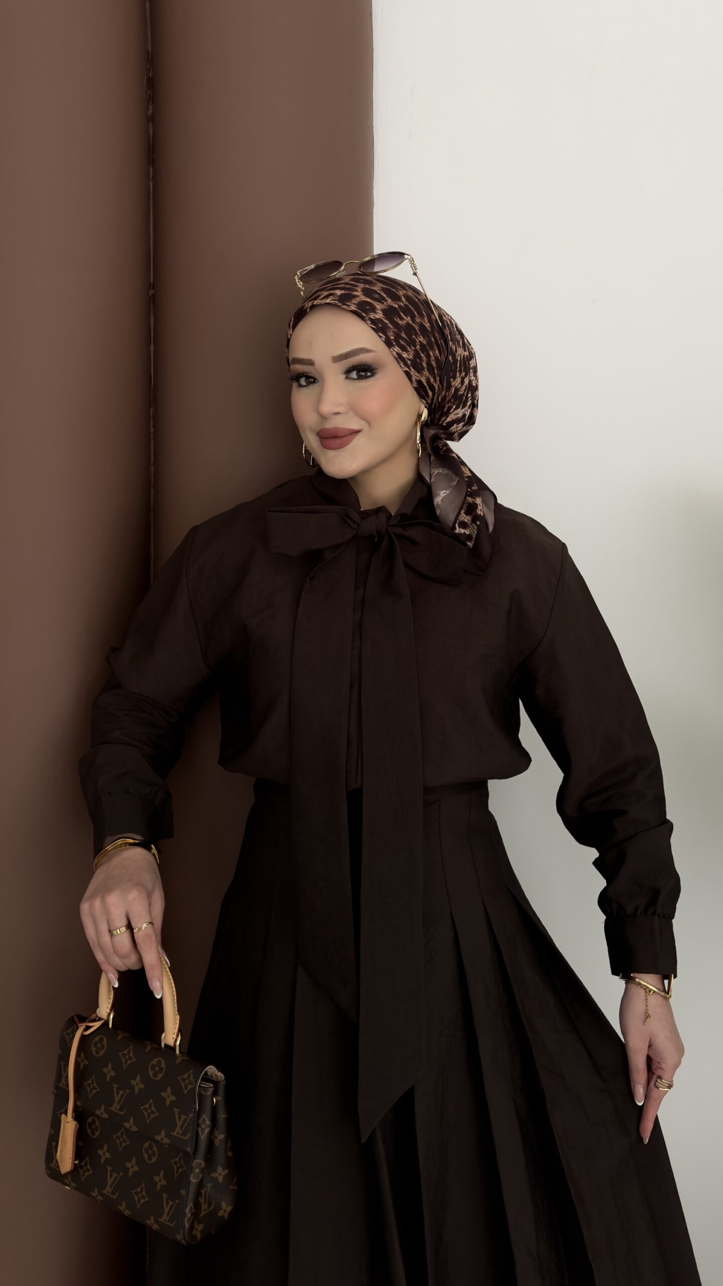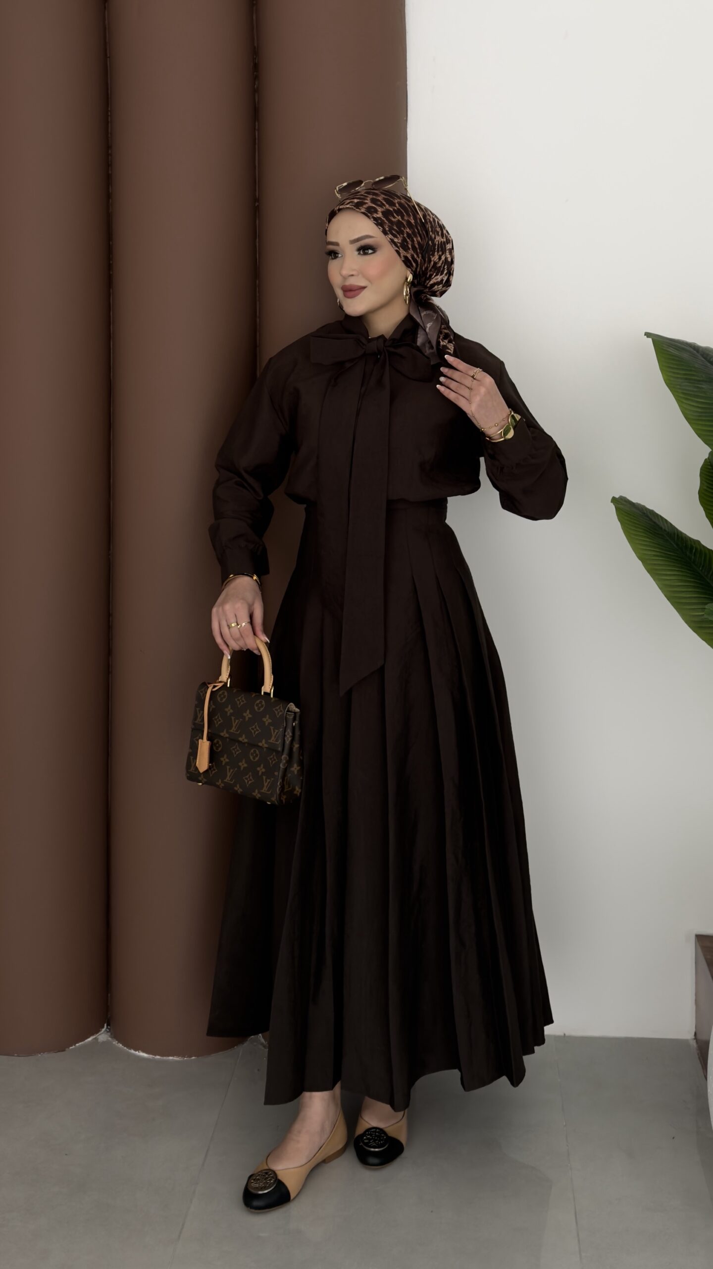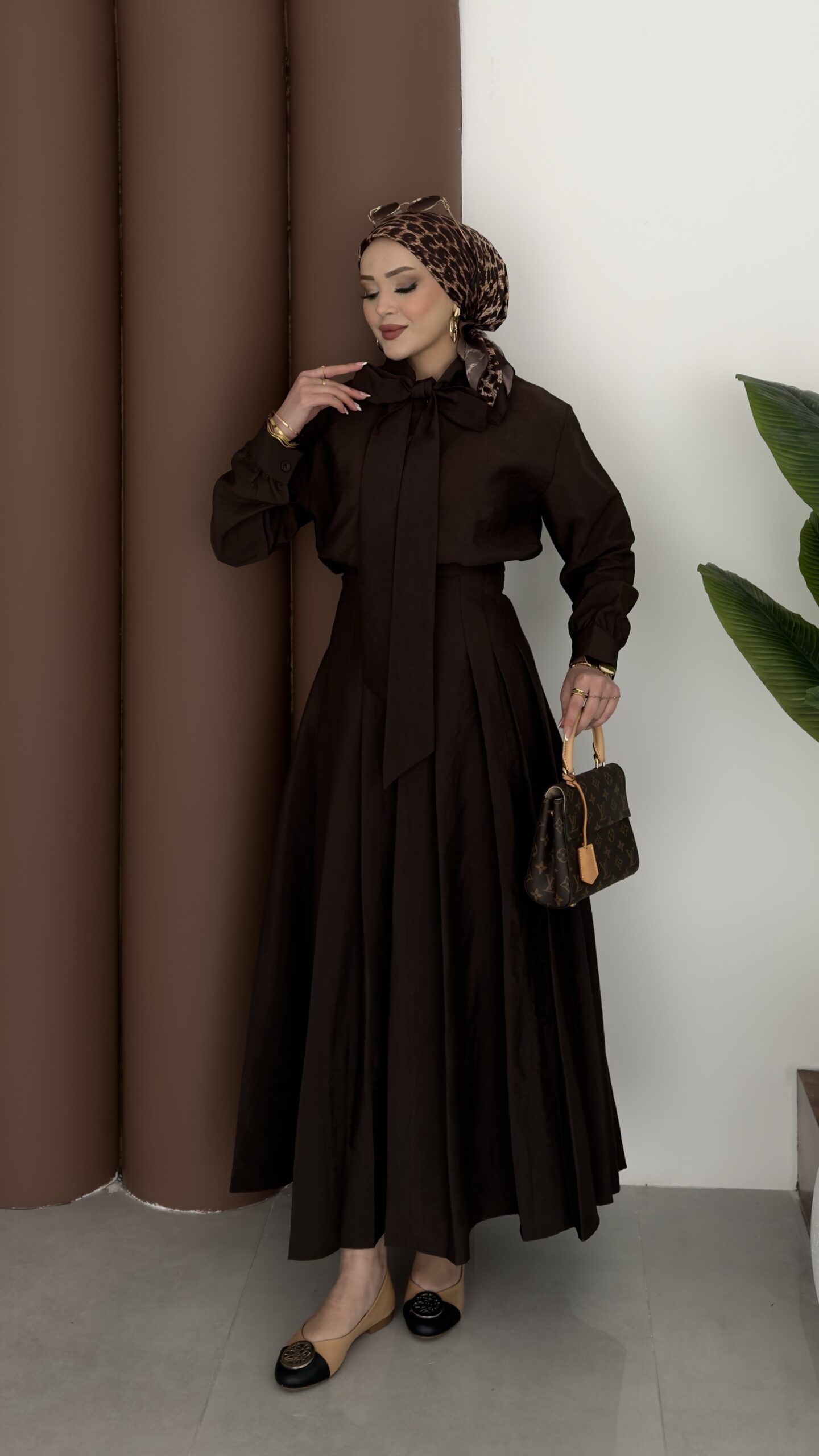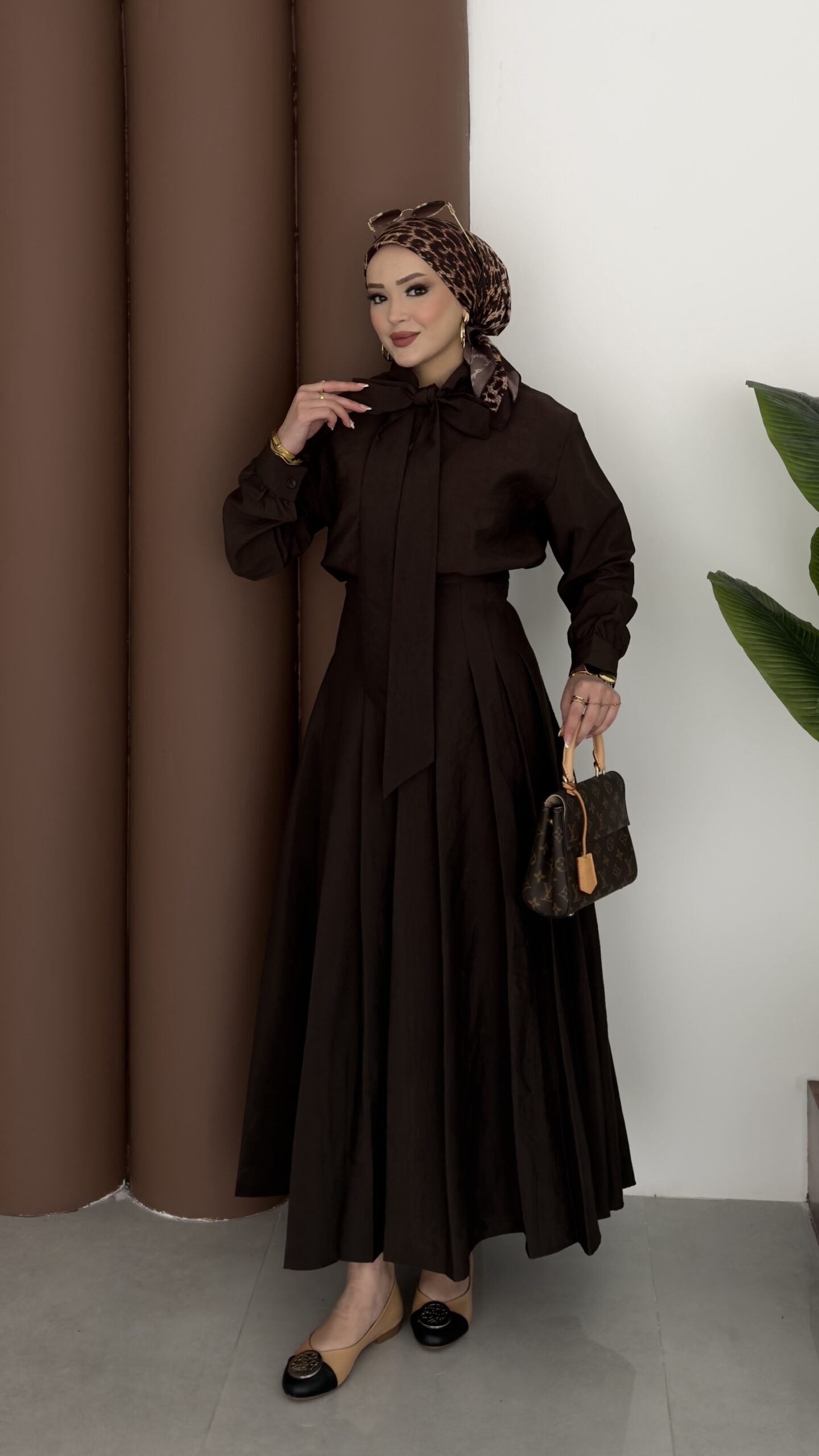 Pile Detaylı Cupra Etek İkili Takım – Kahverengi