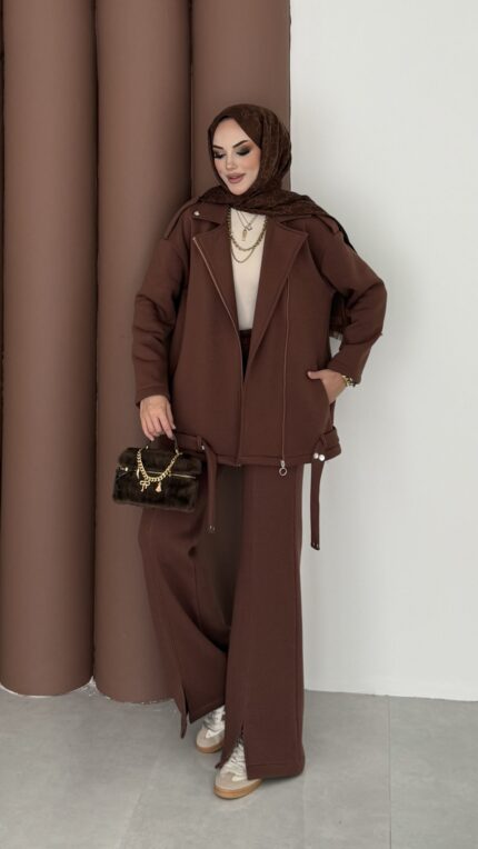 Peluş Garnili Şardonlu İkili Takım – Bordo