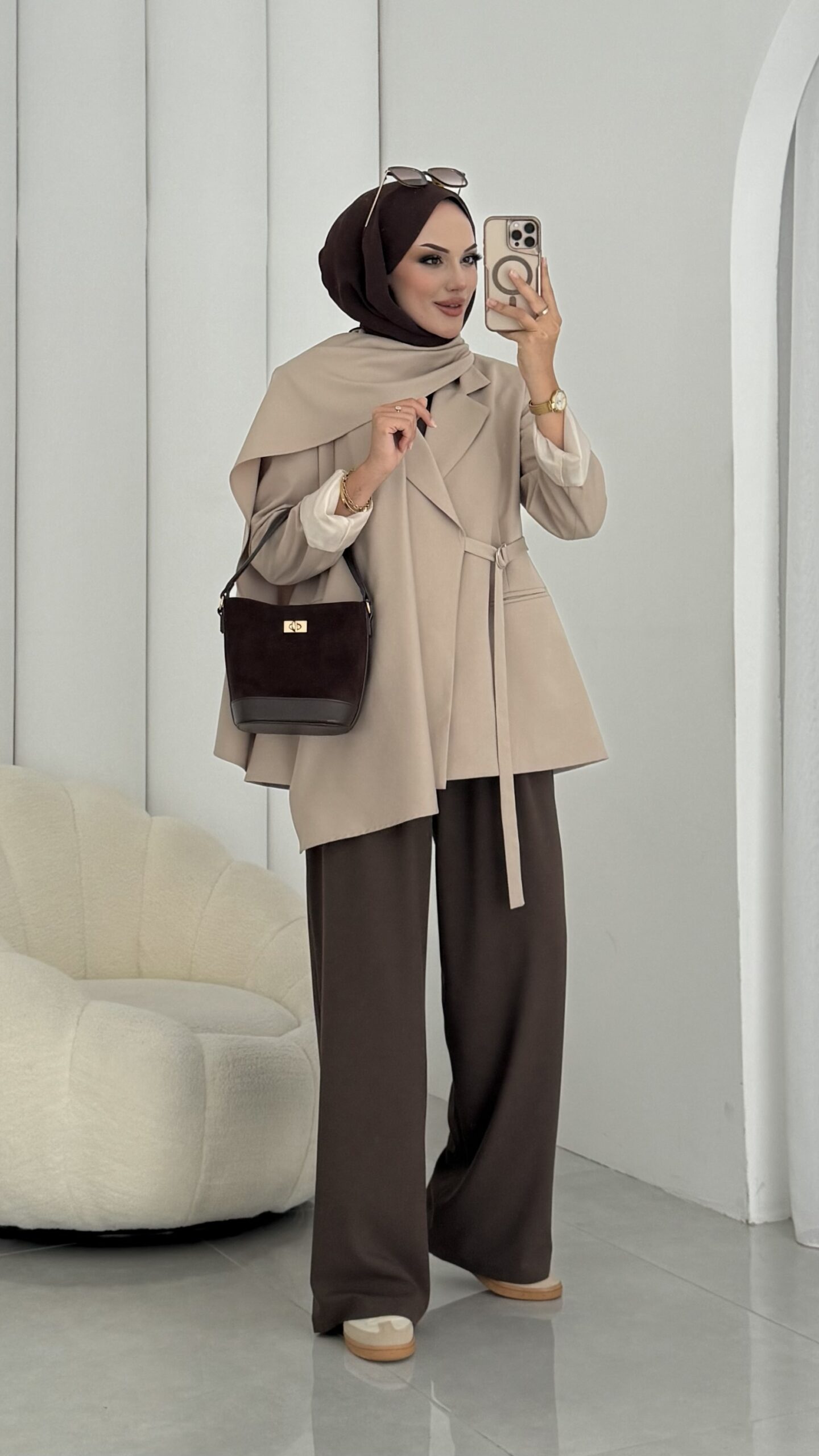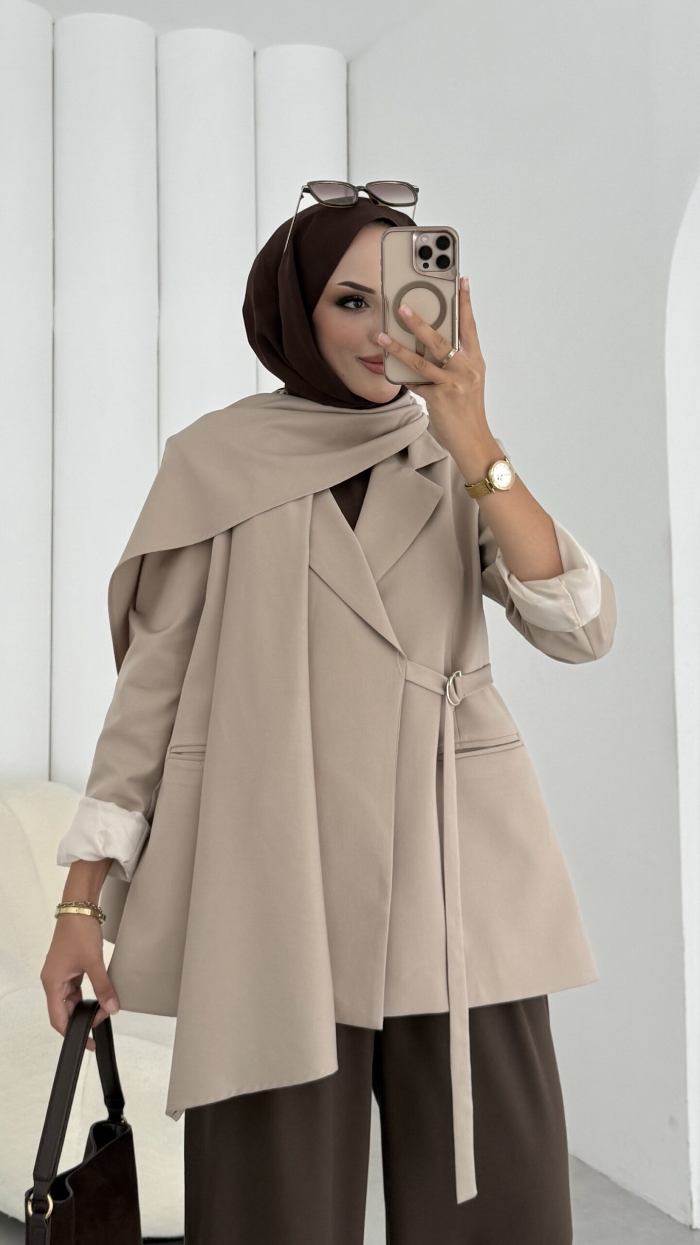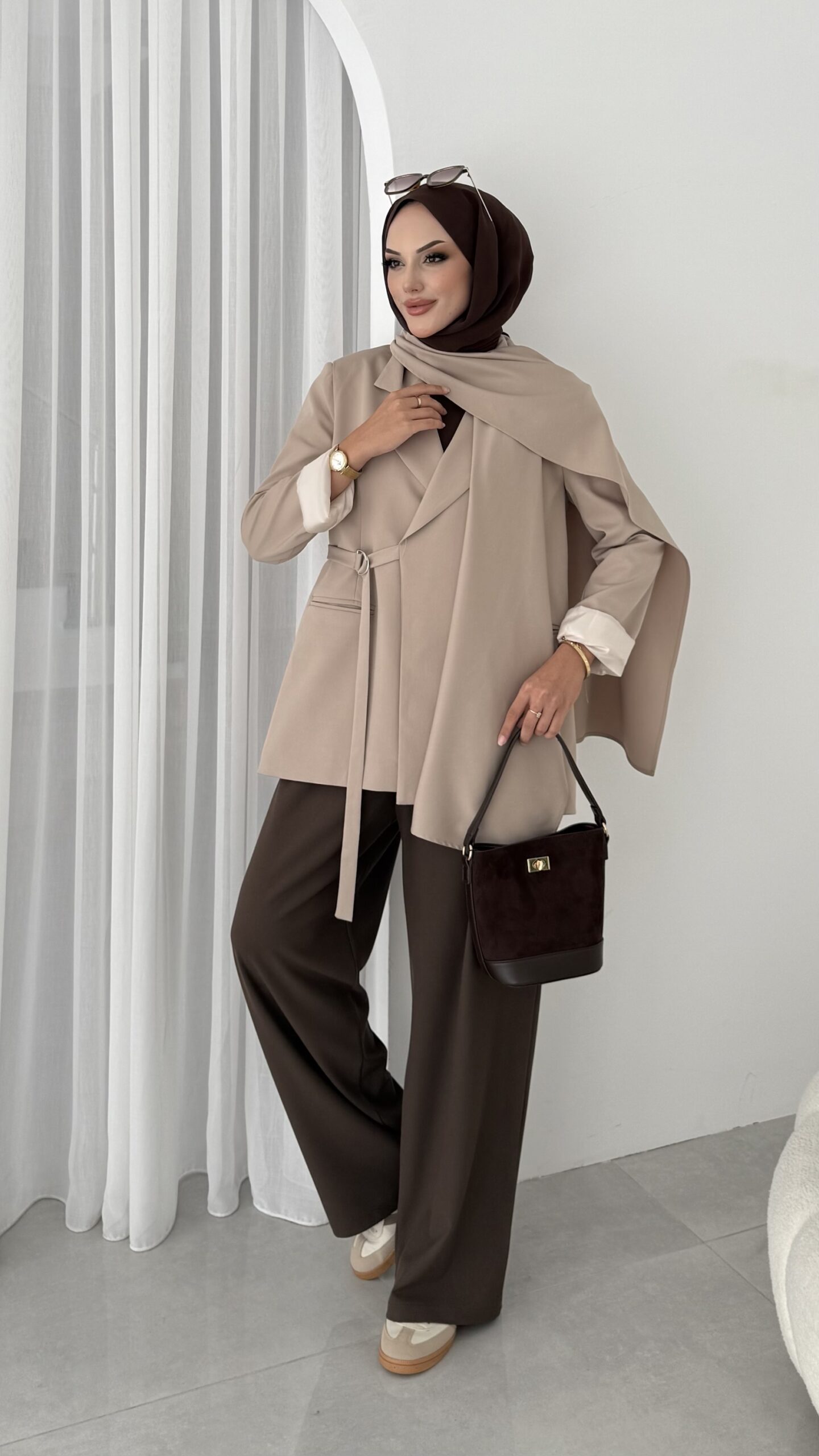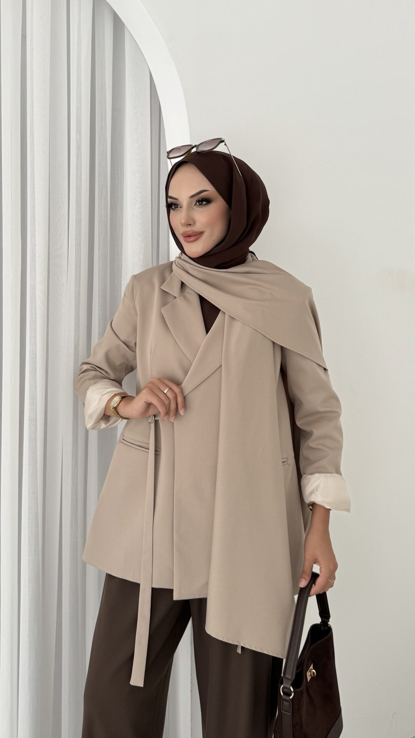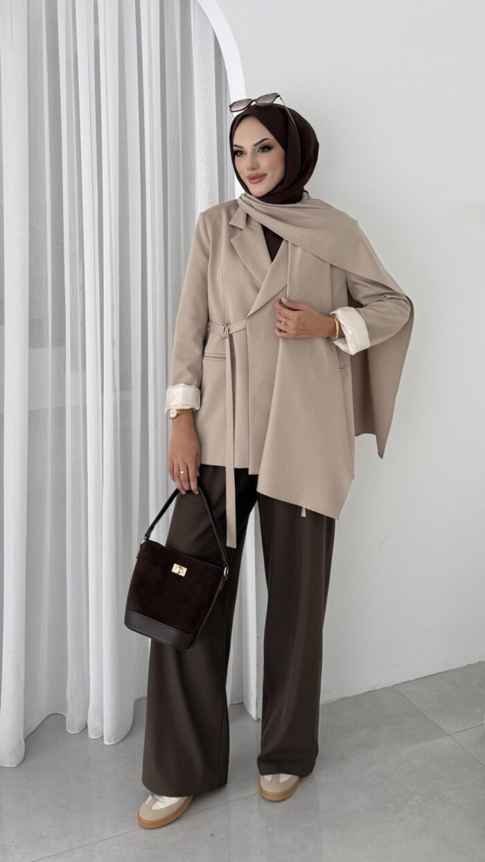 Pinterest Premium Atkılı Blazer Ceket – Bej
