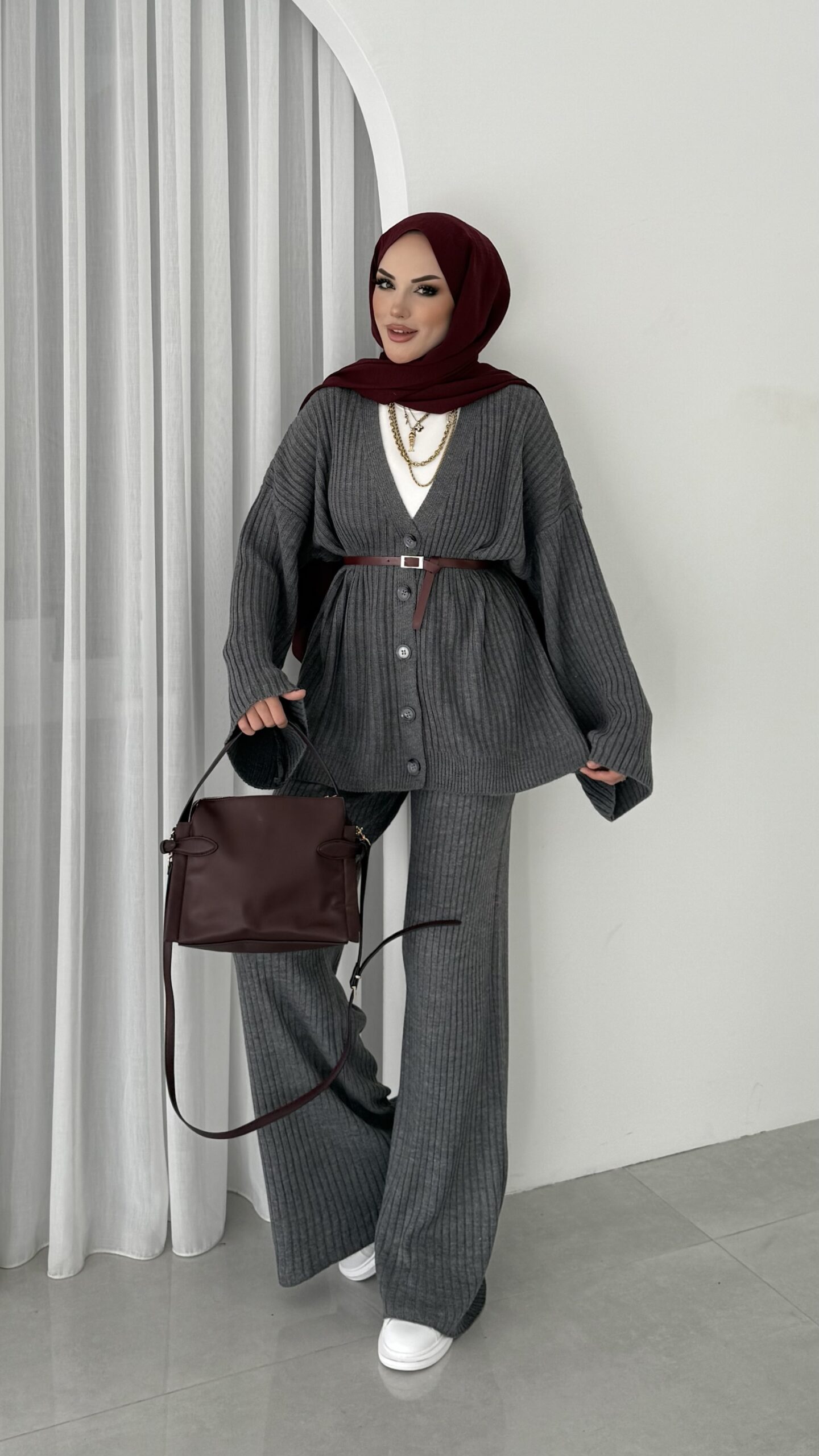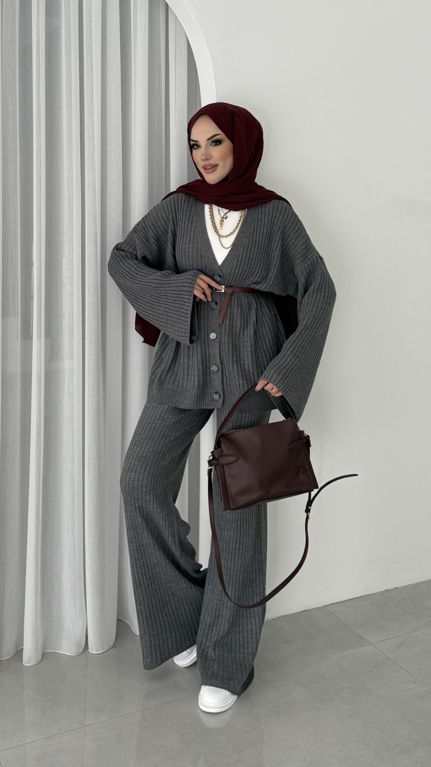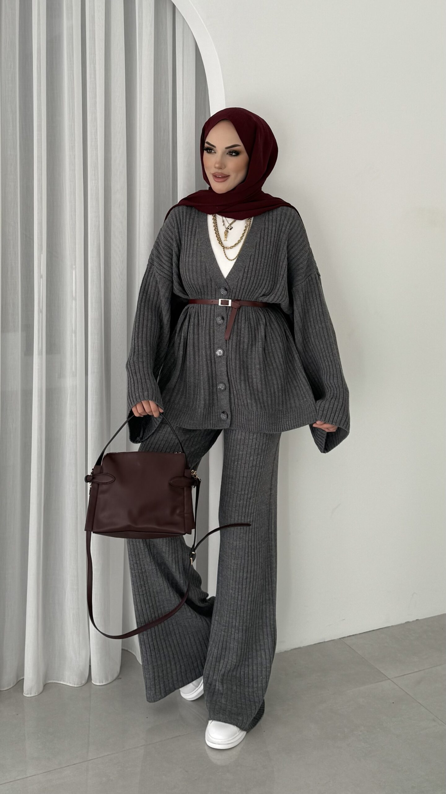 Premium Fitilli Triko İkili Takım – Antrasit
