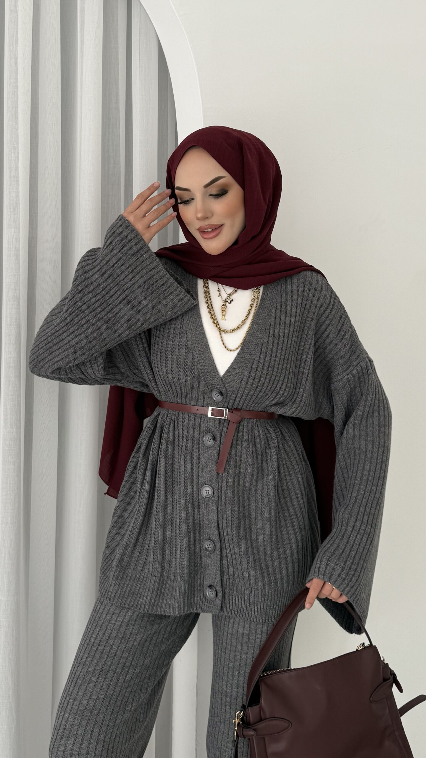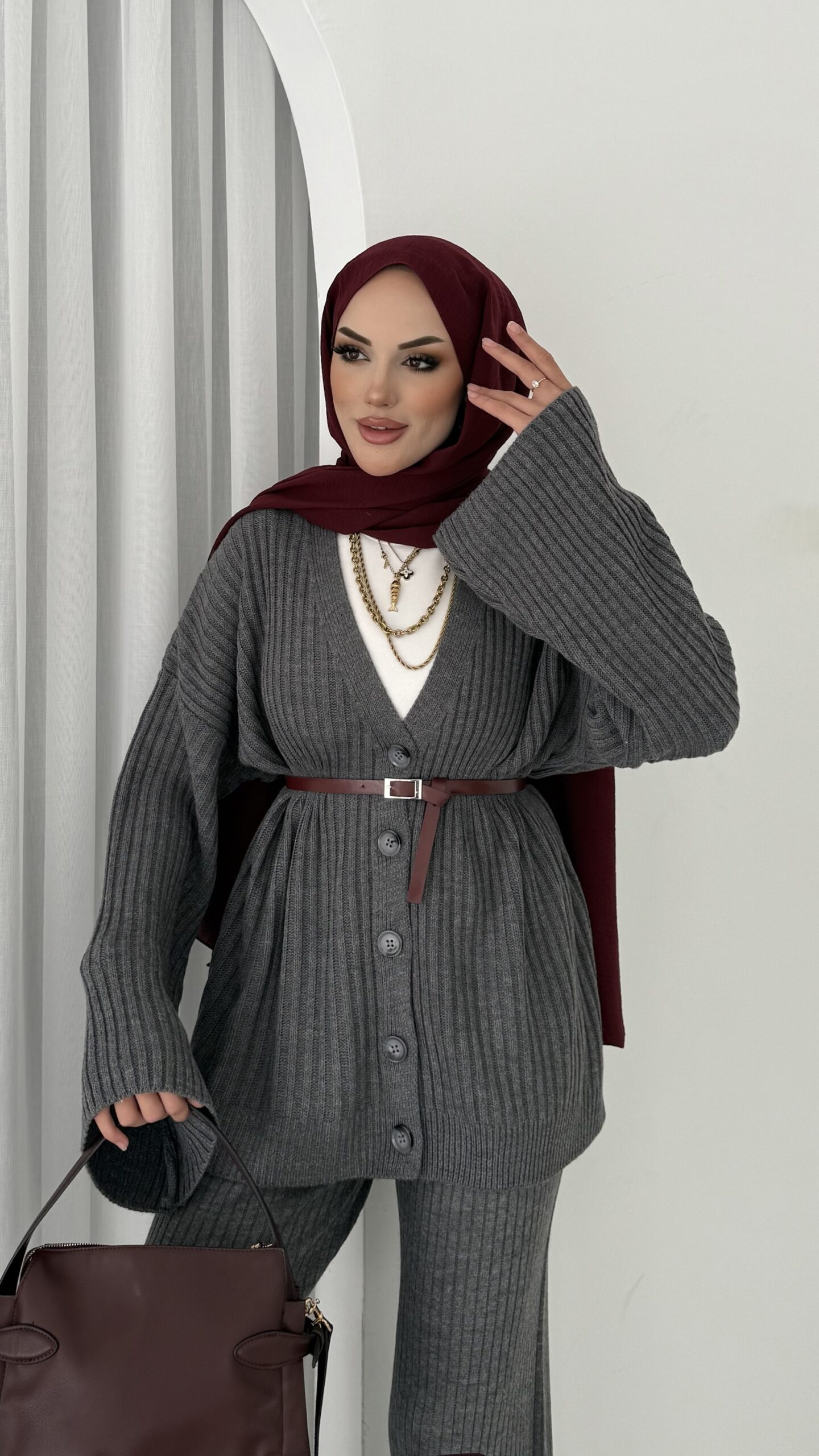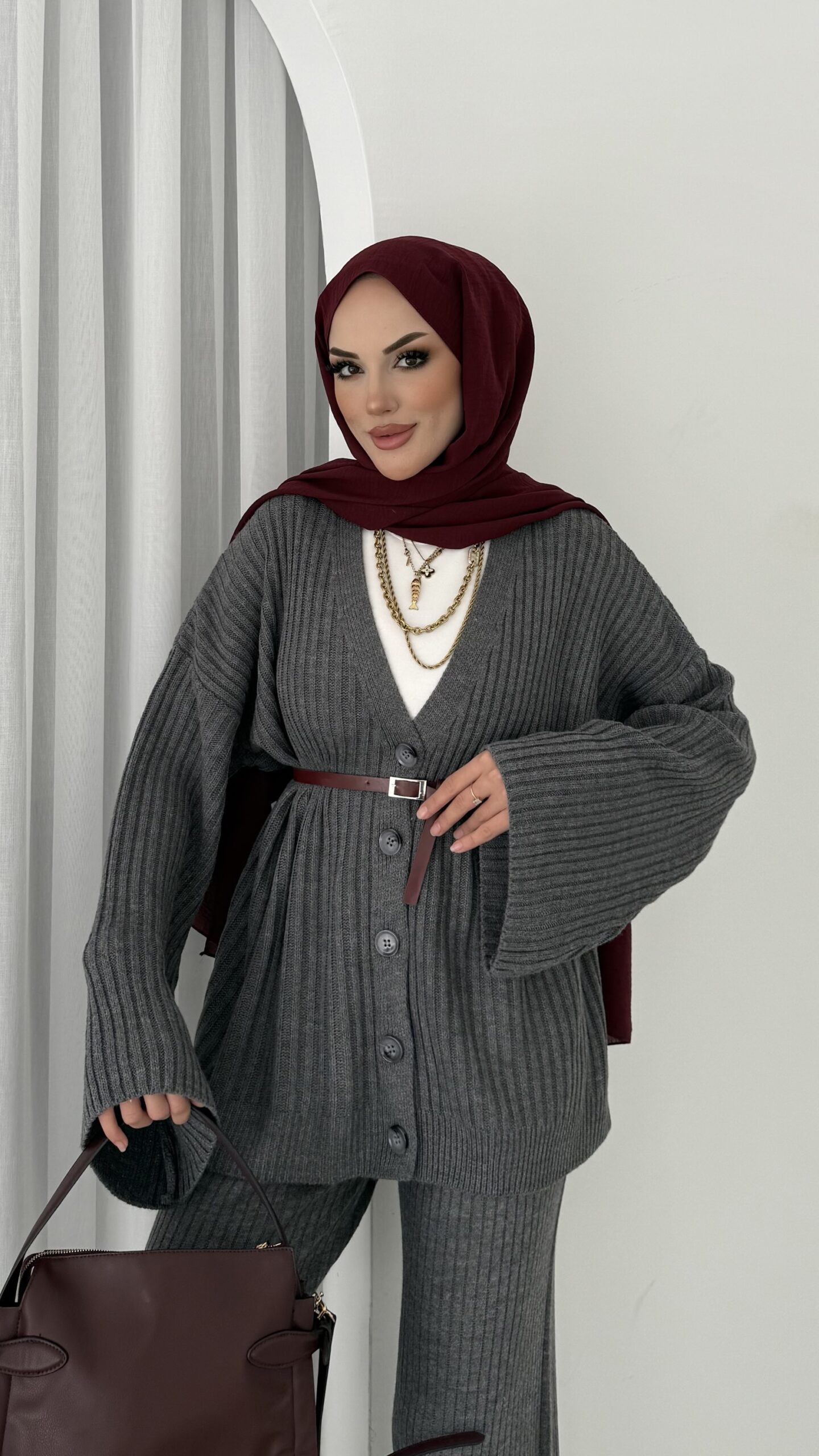 Premium Fitilli Triko İkili Takım – Antrasit