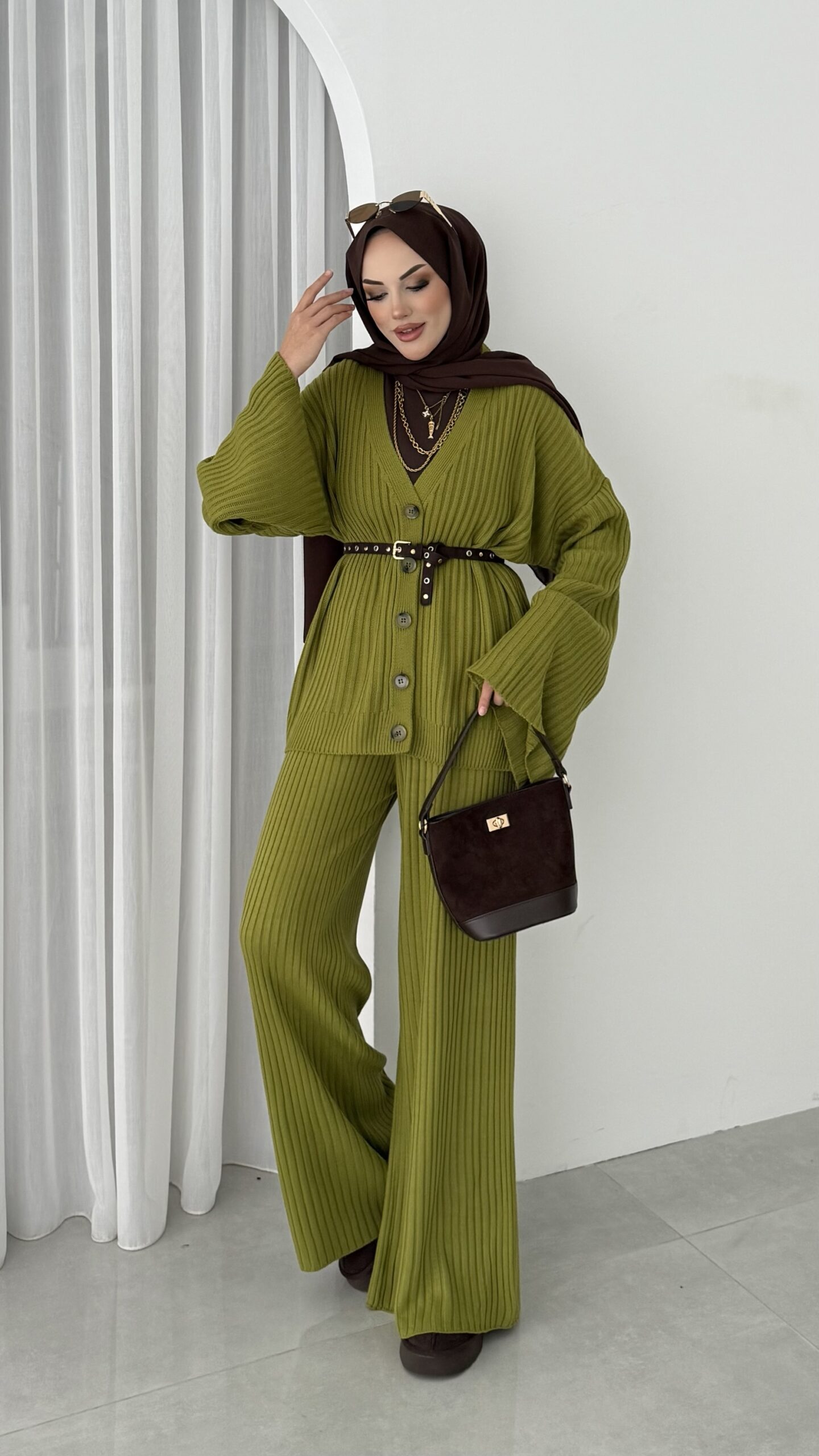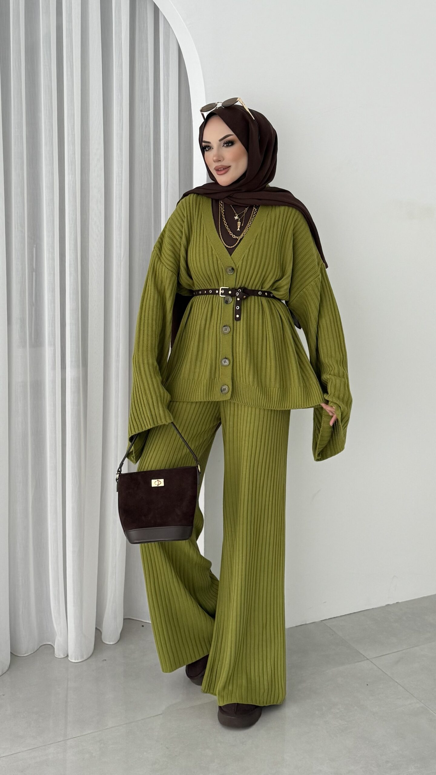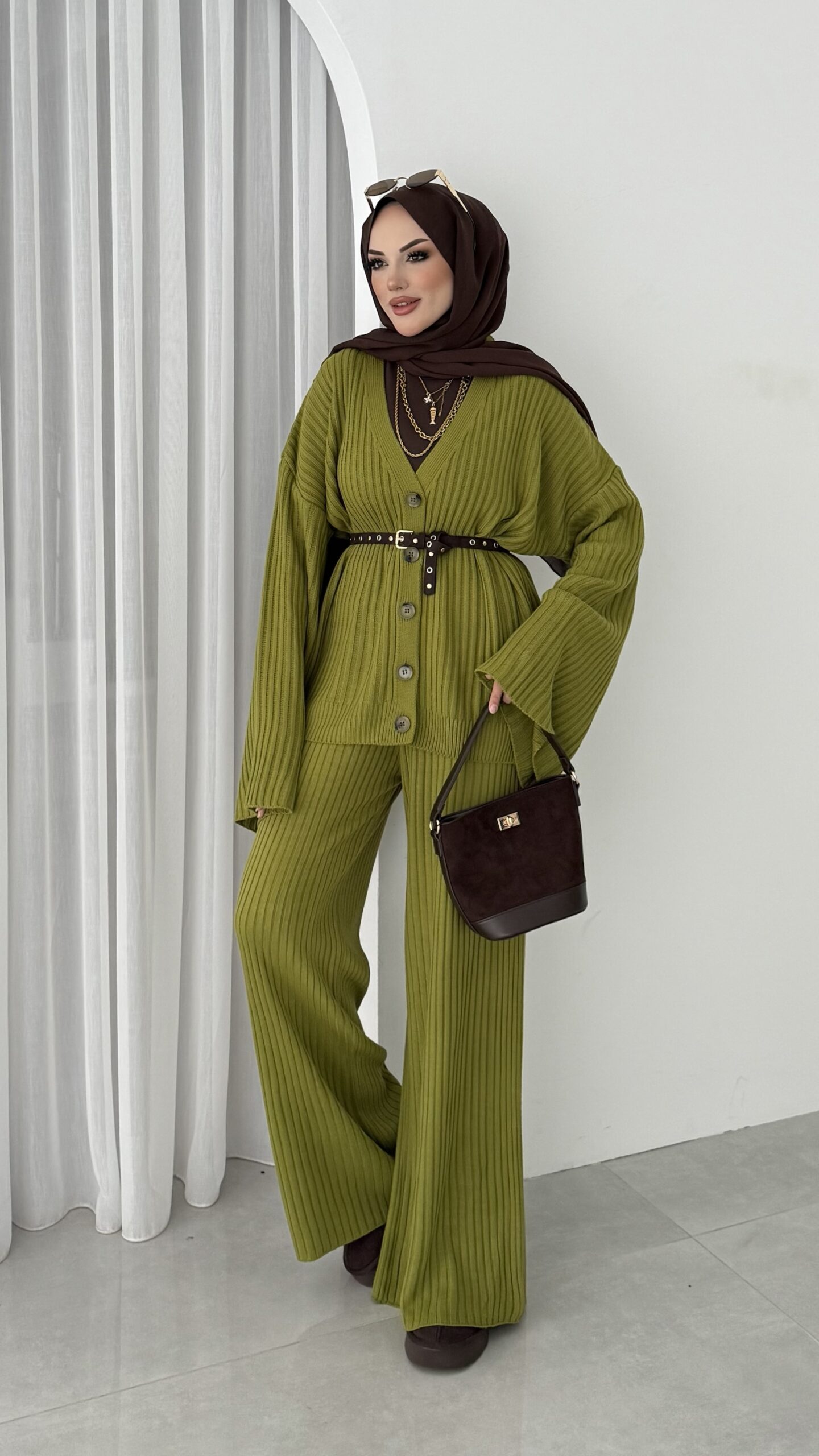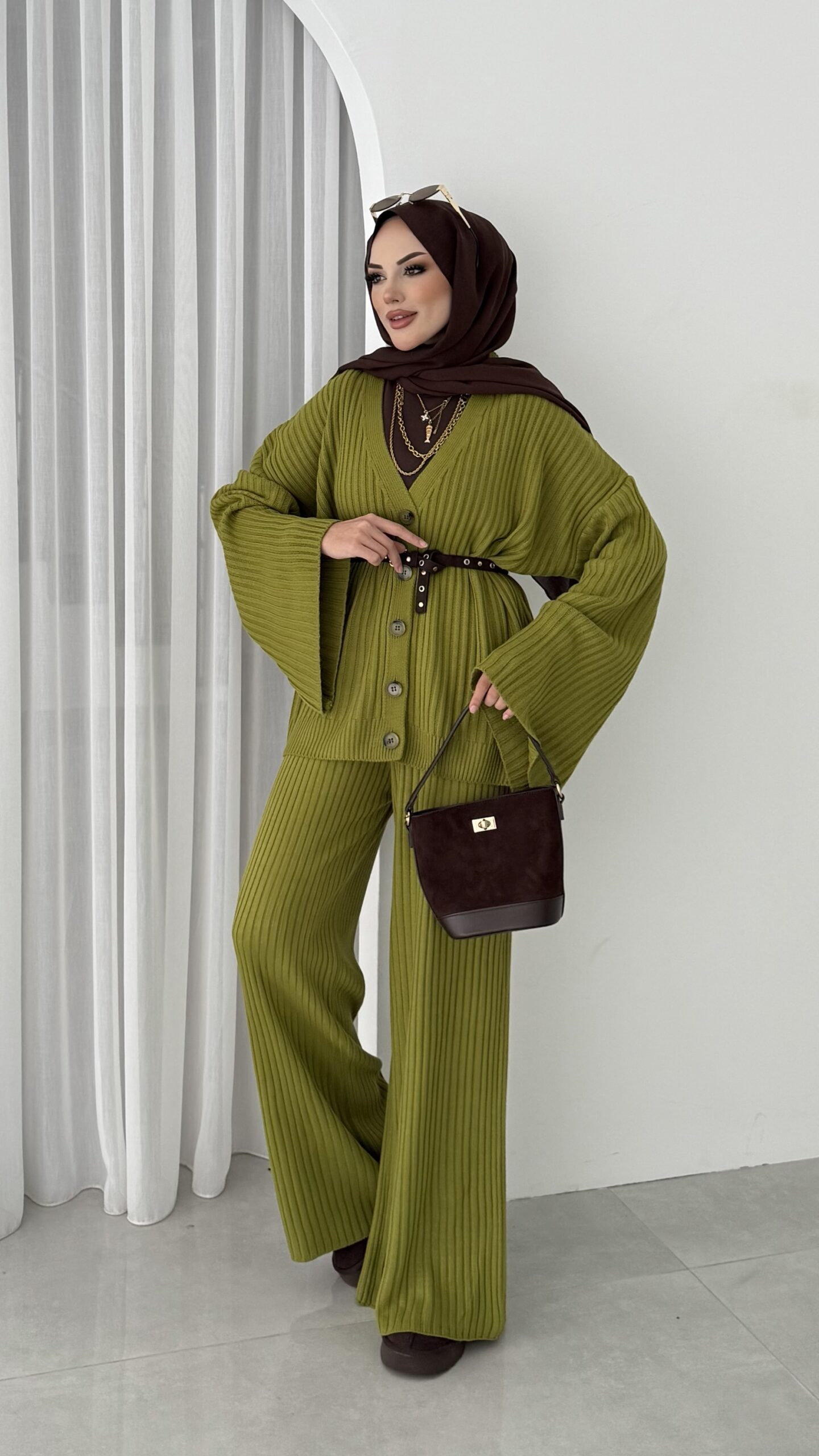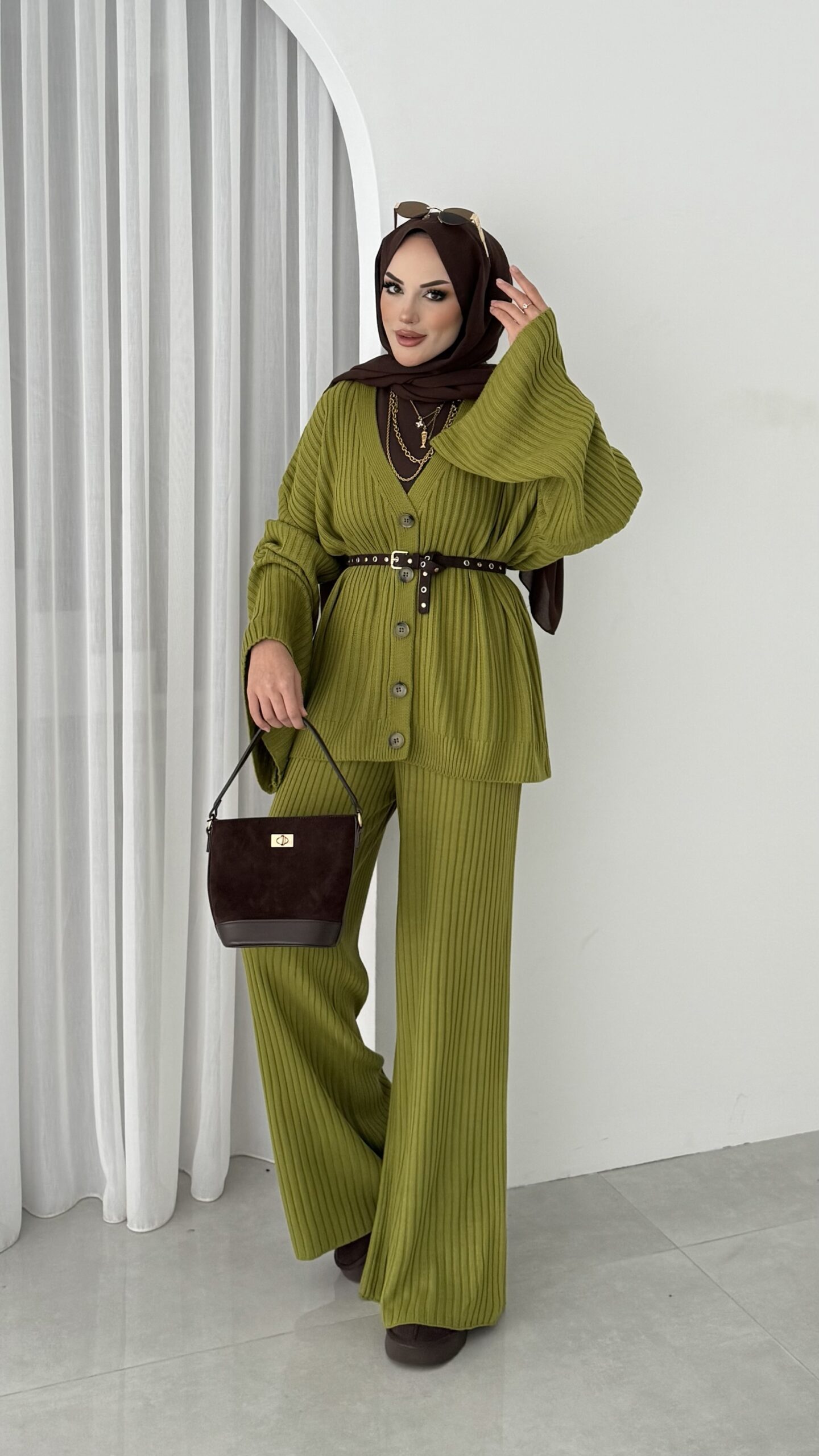 Premium Fitilli Triko İkili Takım – Yağyeşil
