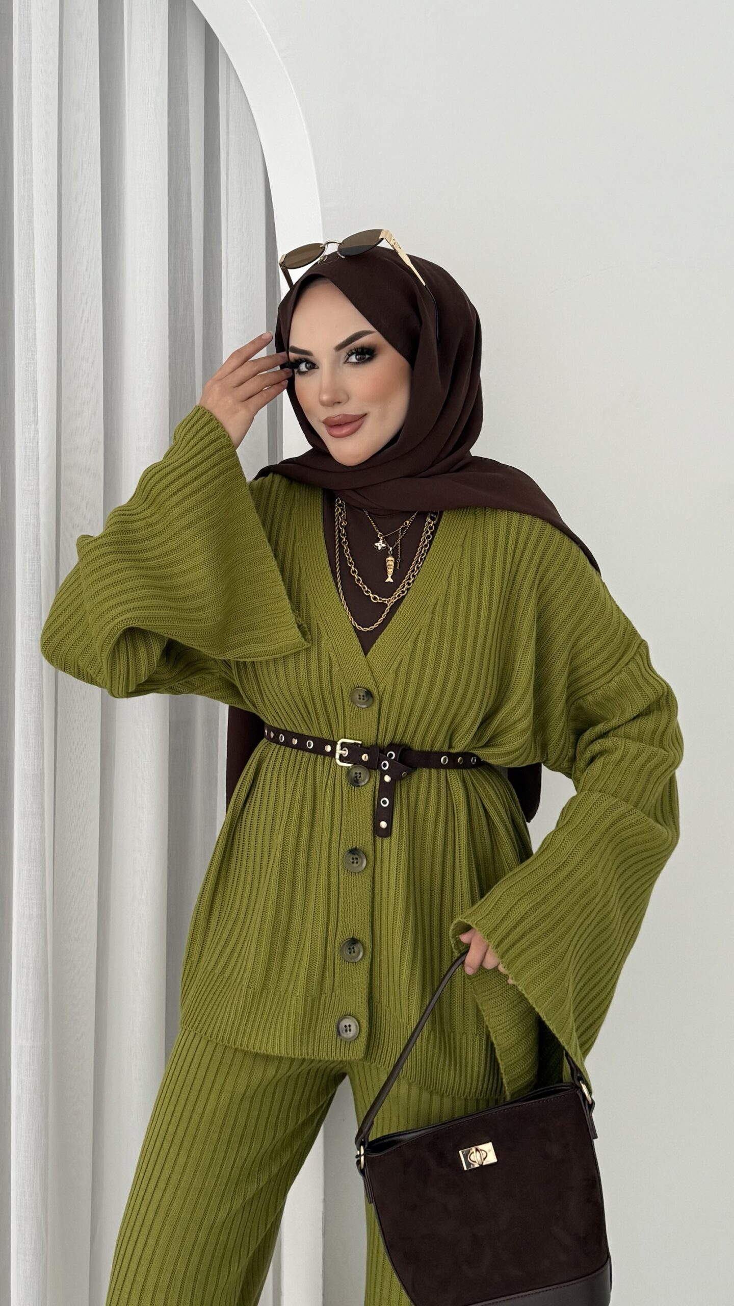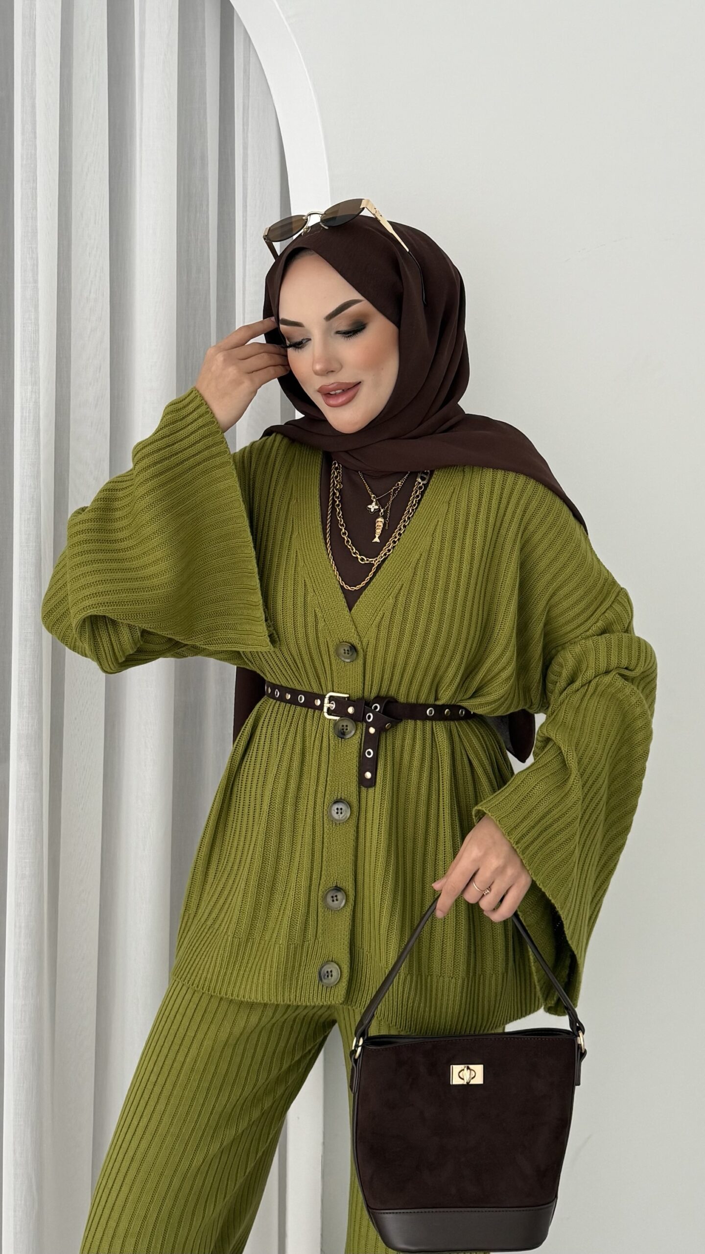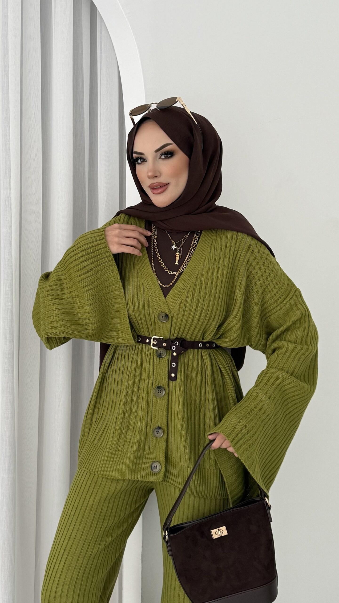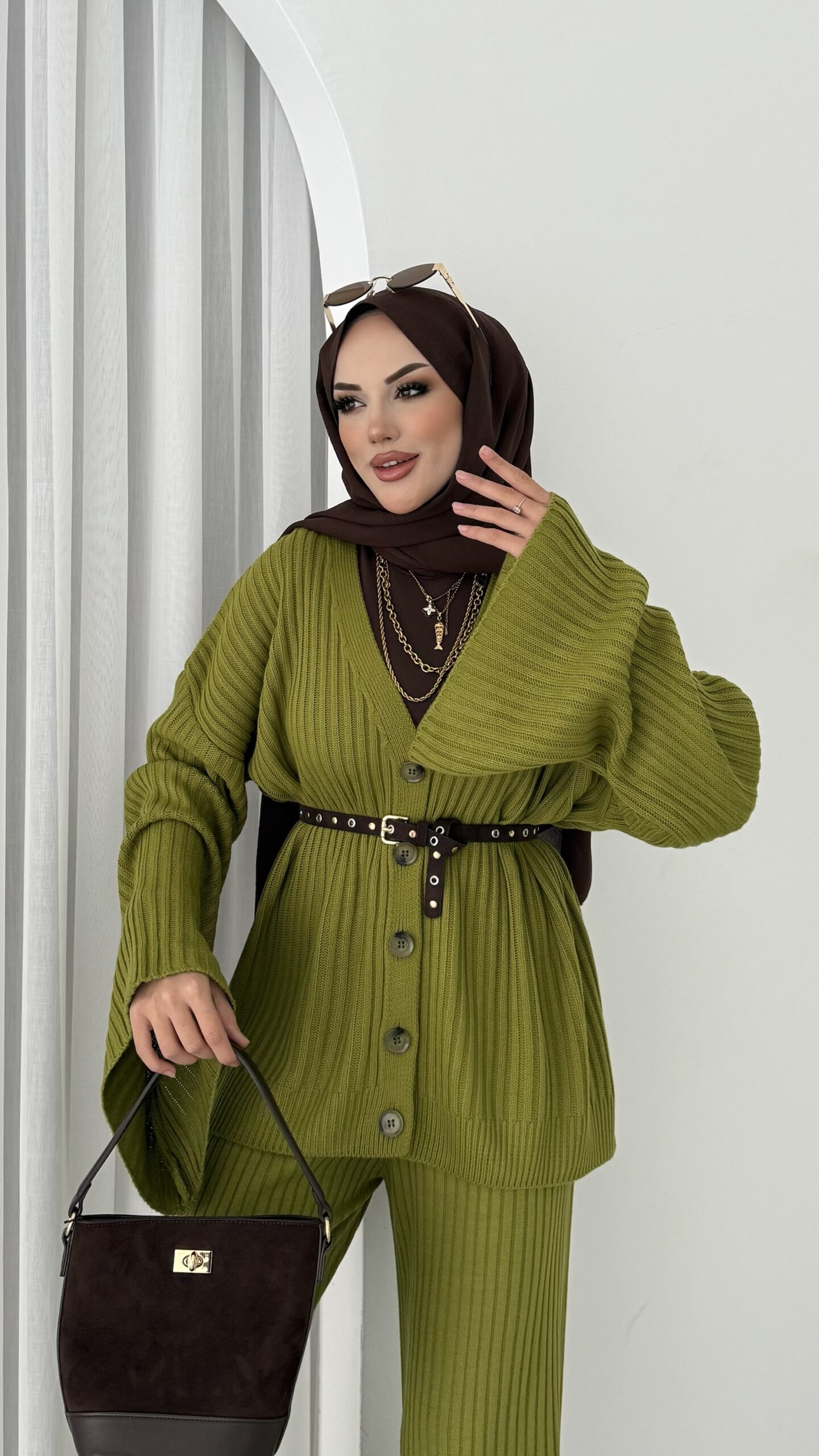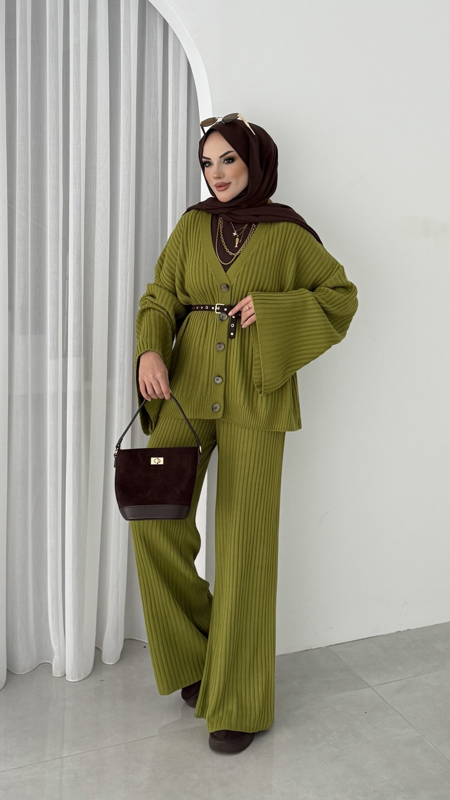 Premium Fitilli Triko İkili Takım – Yağyeşil