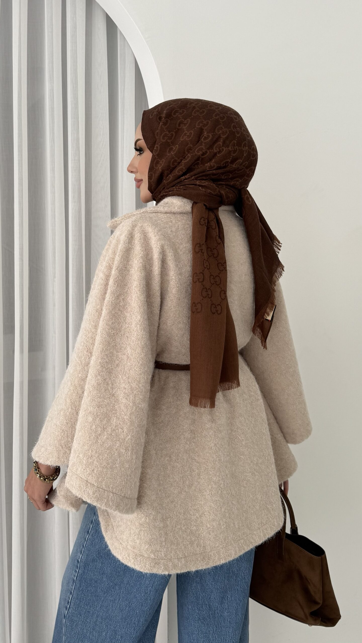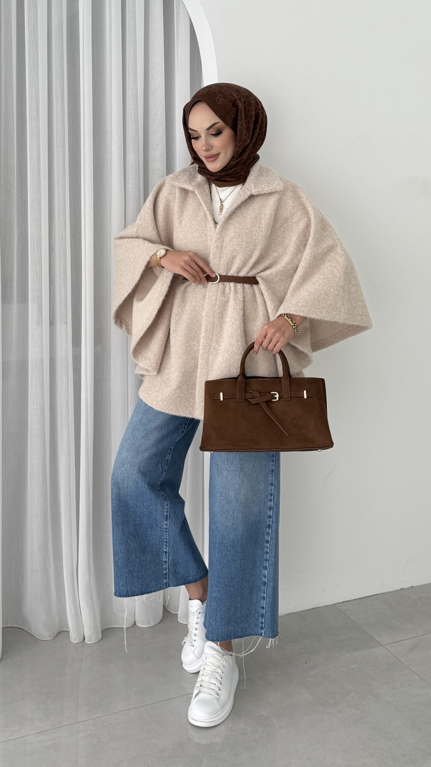 Premium Kılçıklı Kemerli Panço – Bej