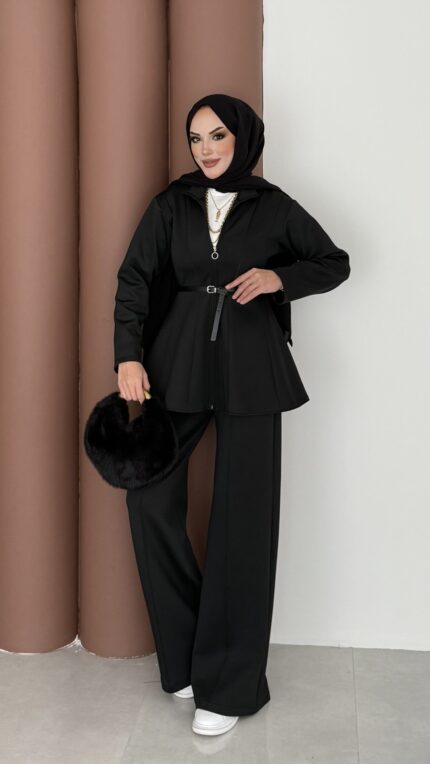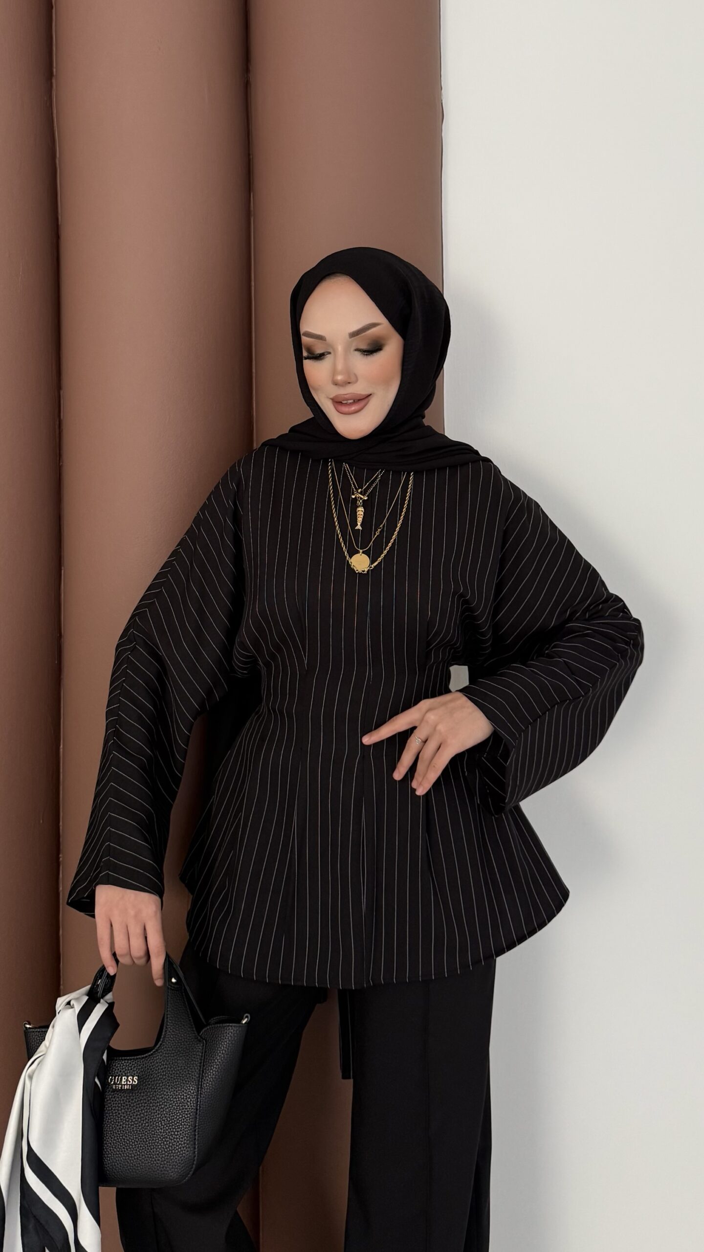 Premium Piliseli Arabic Çizgili İkili Takım – Siyah