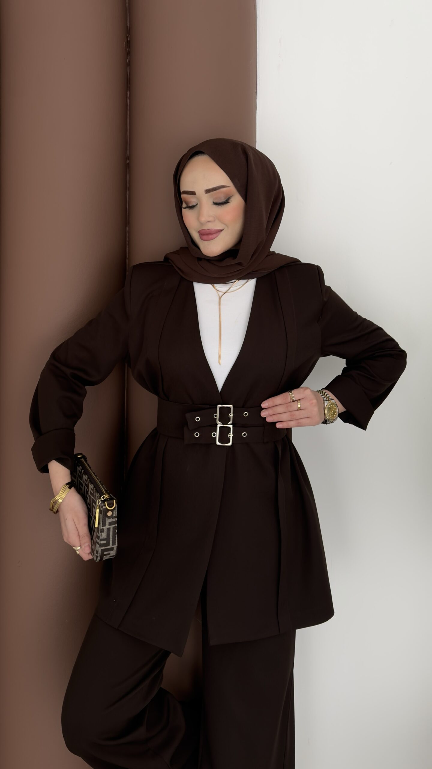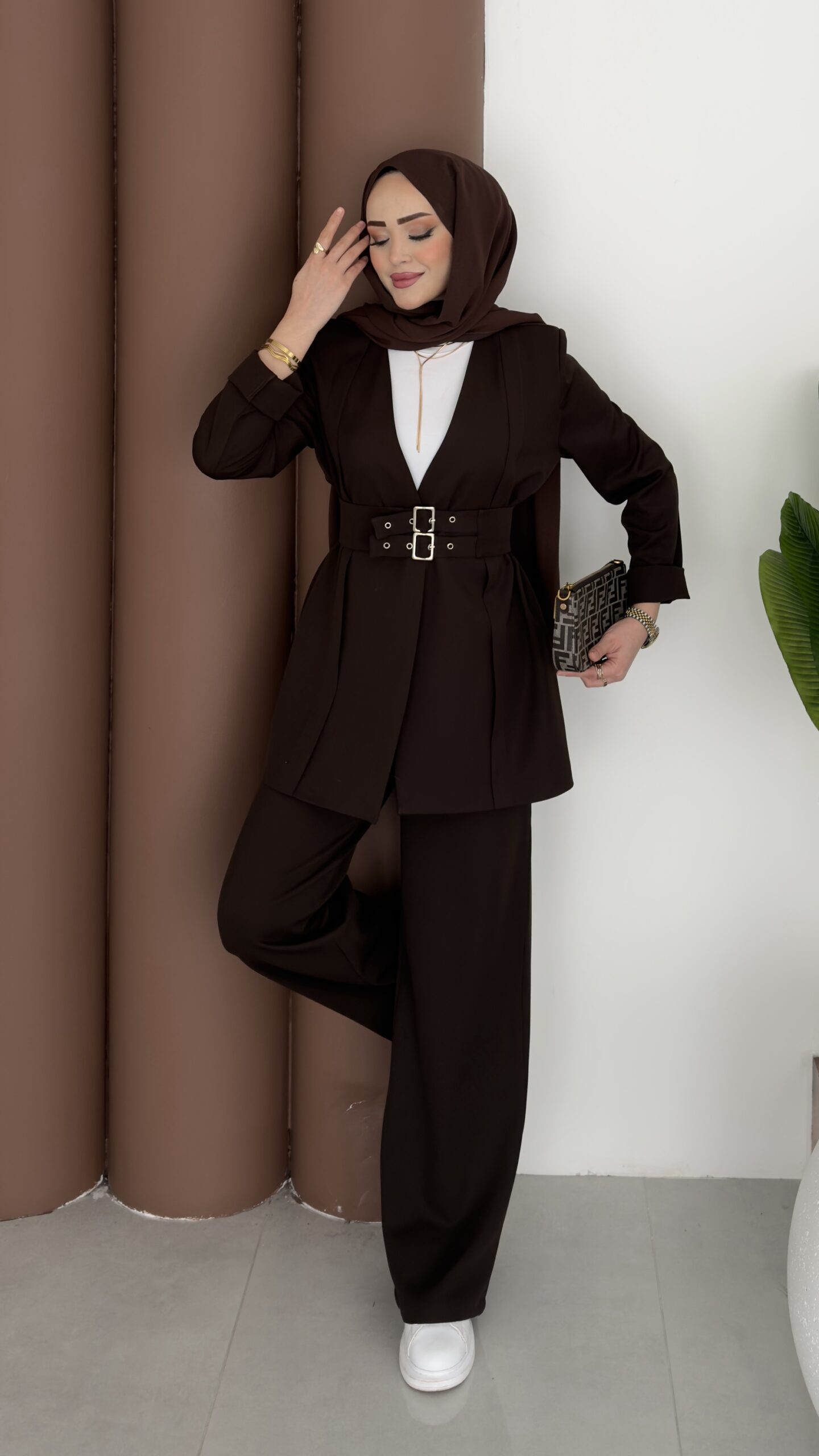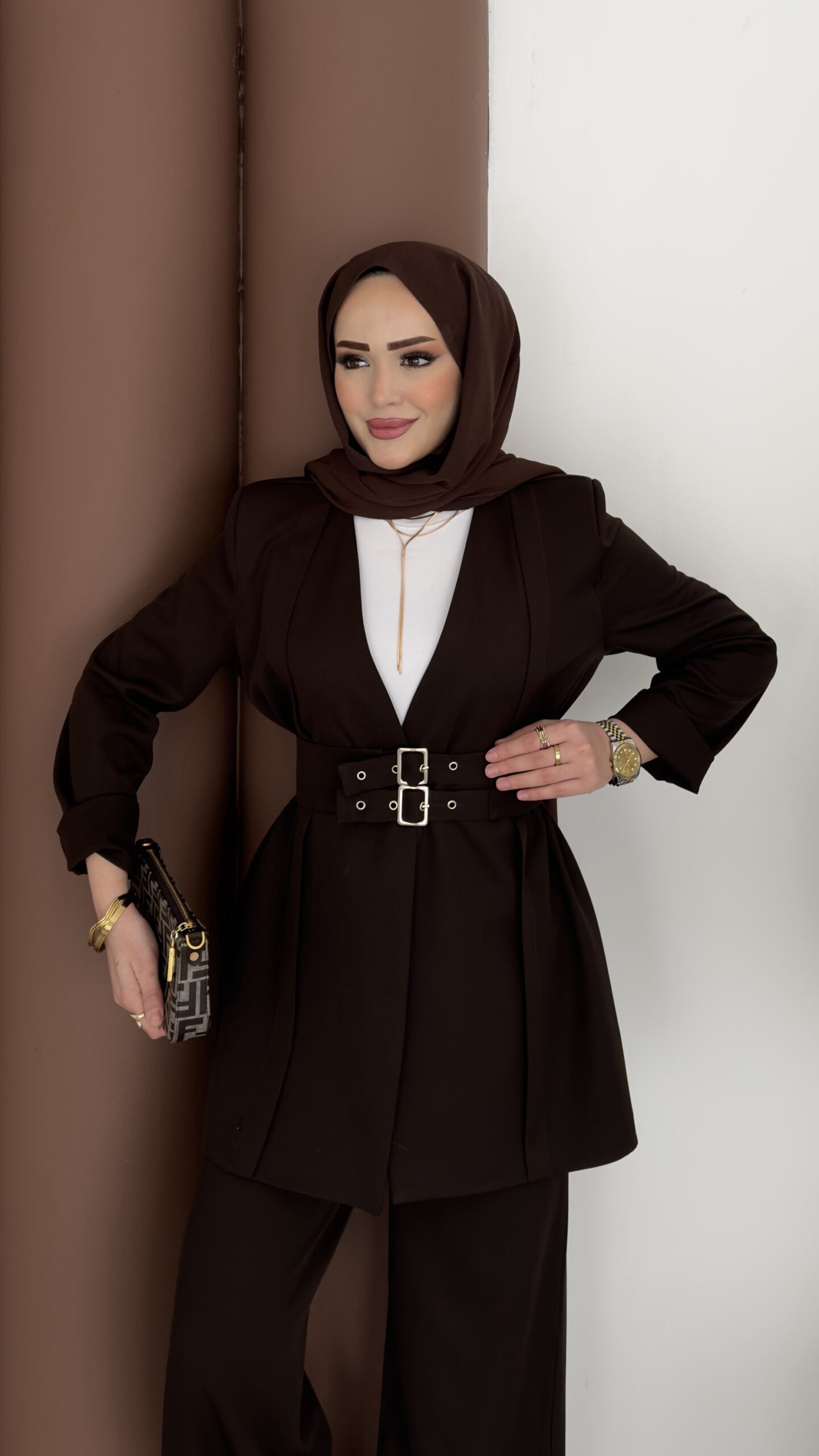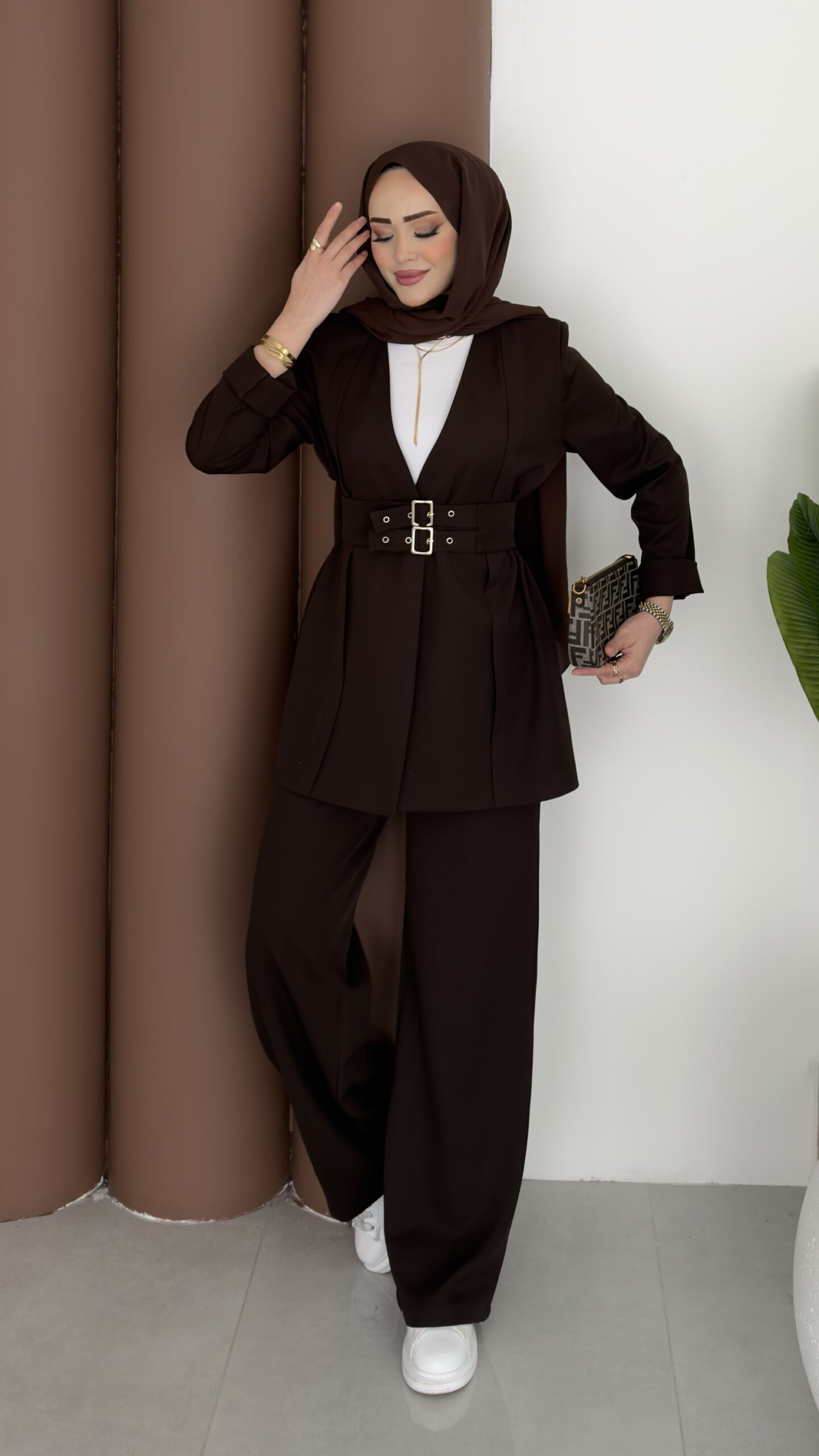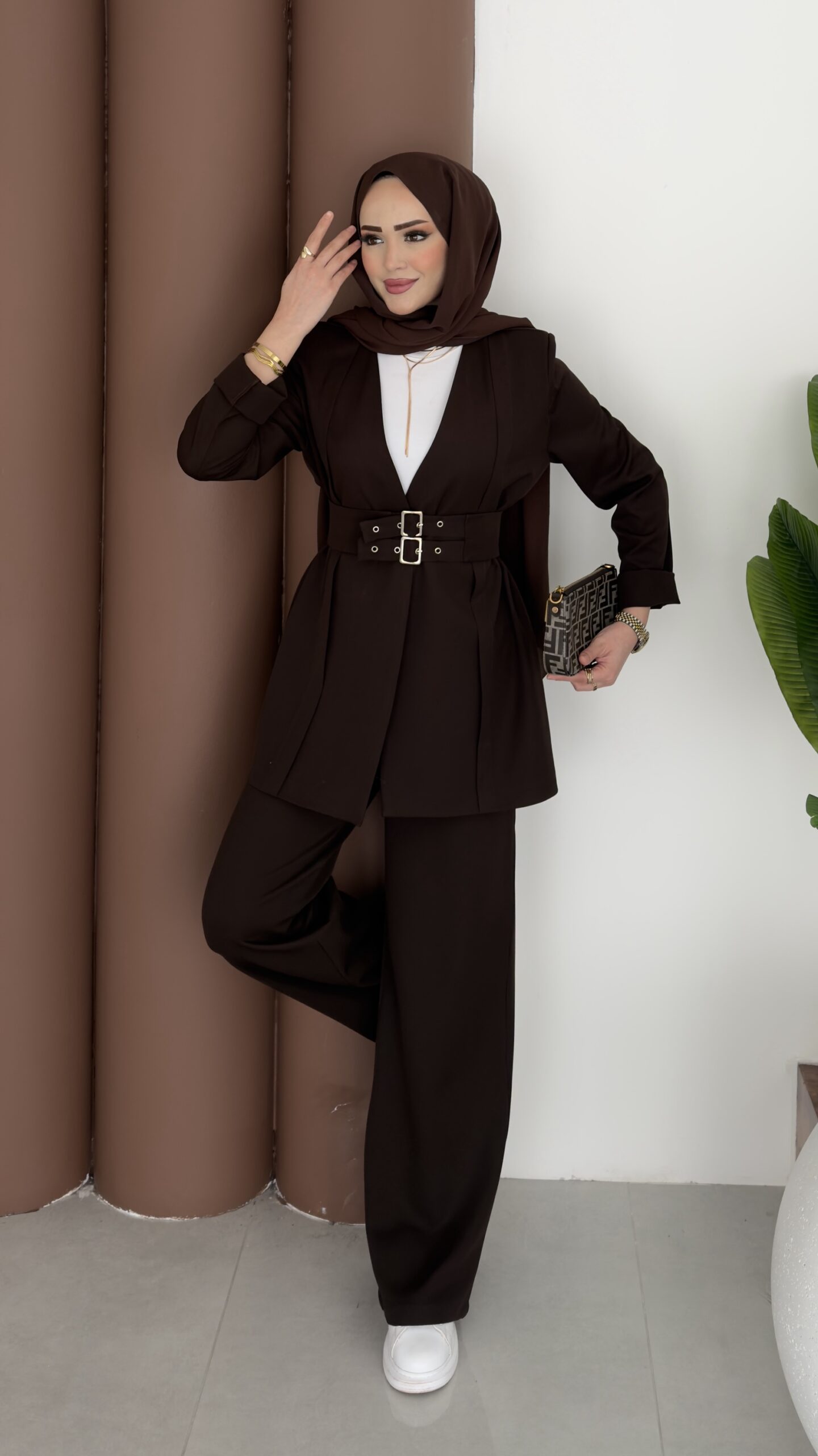 Prime Geniş Kemerli Dabıl İkili Takım – Kahverengi