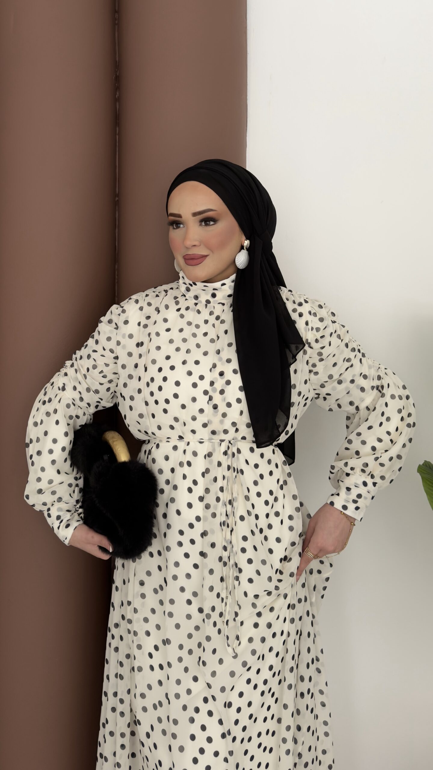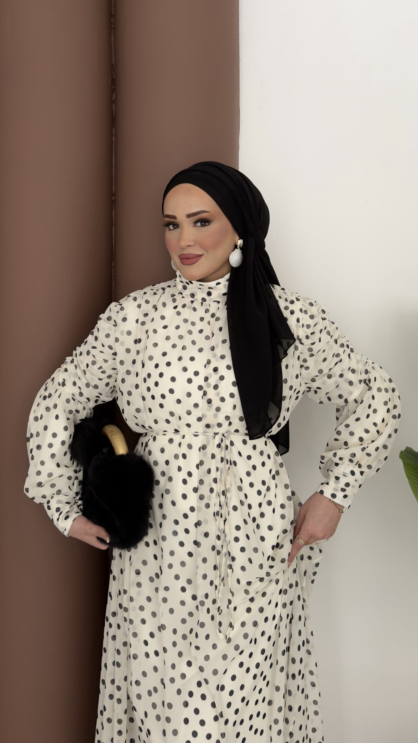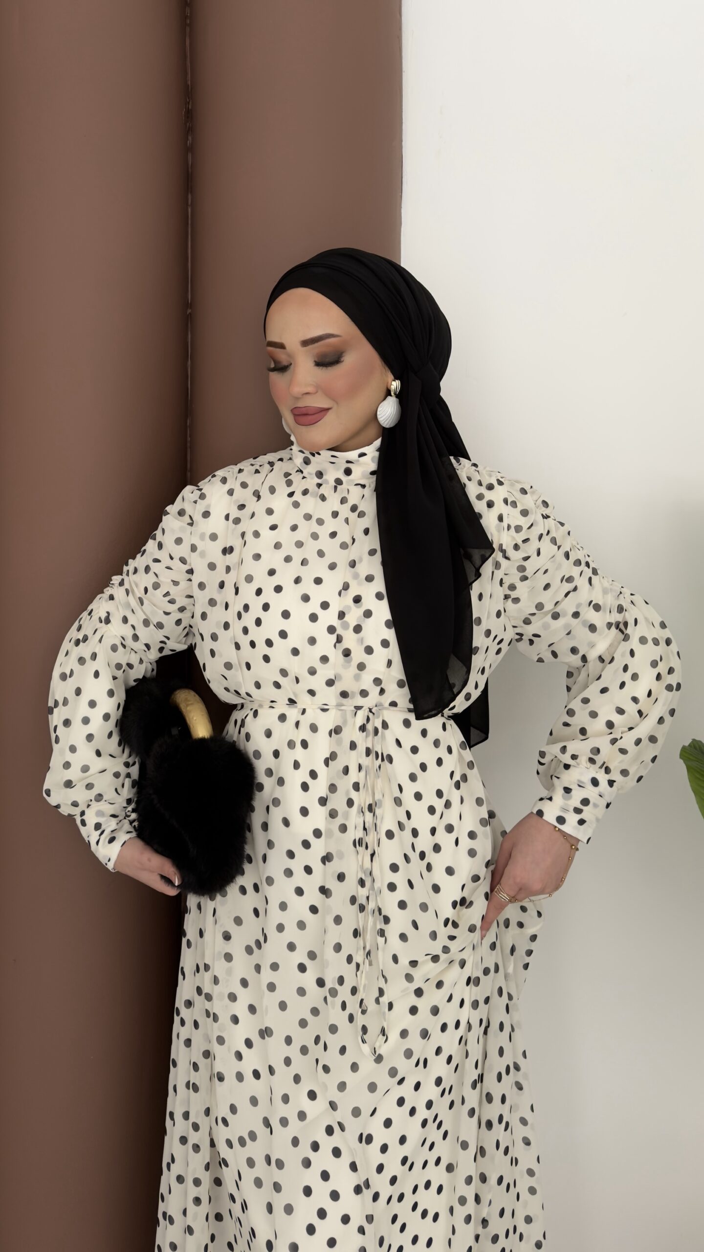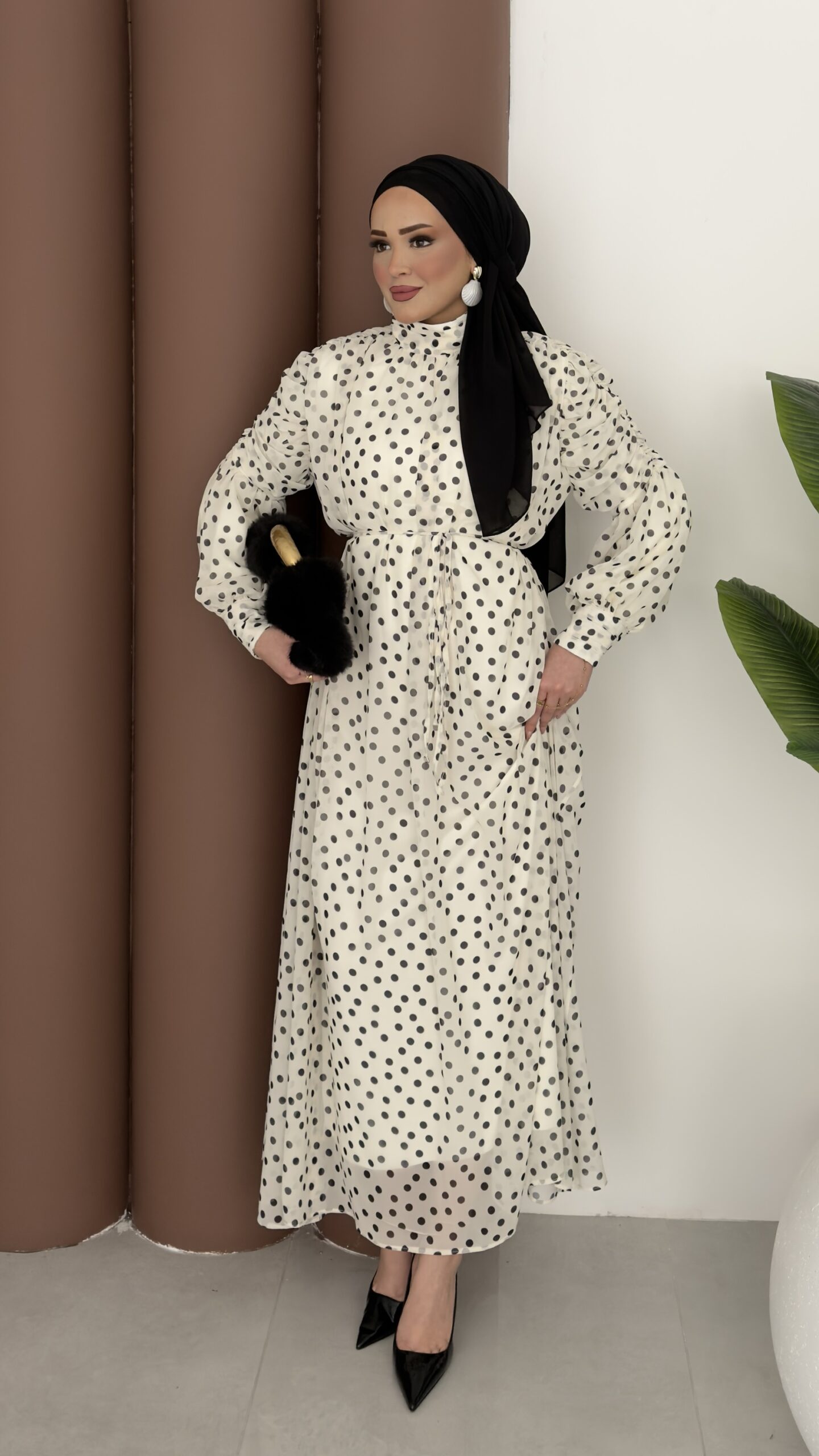 Puanteli Şifon Elbise - Siyah
