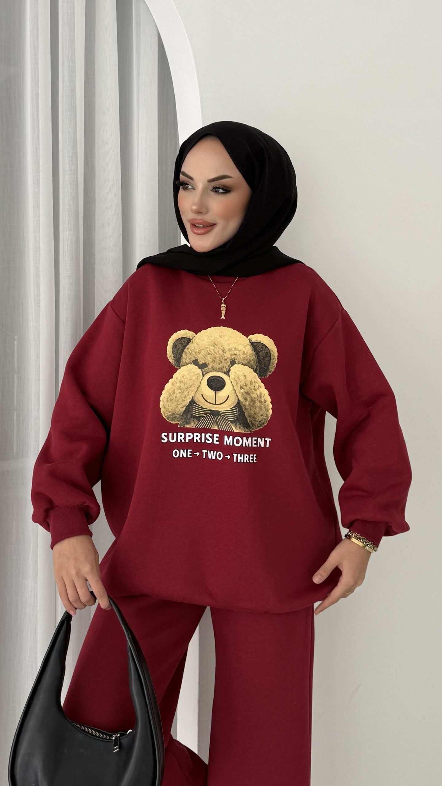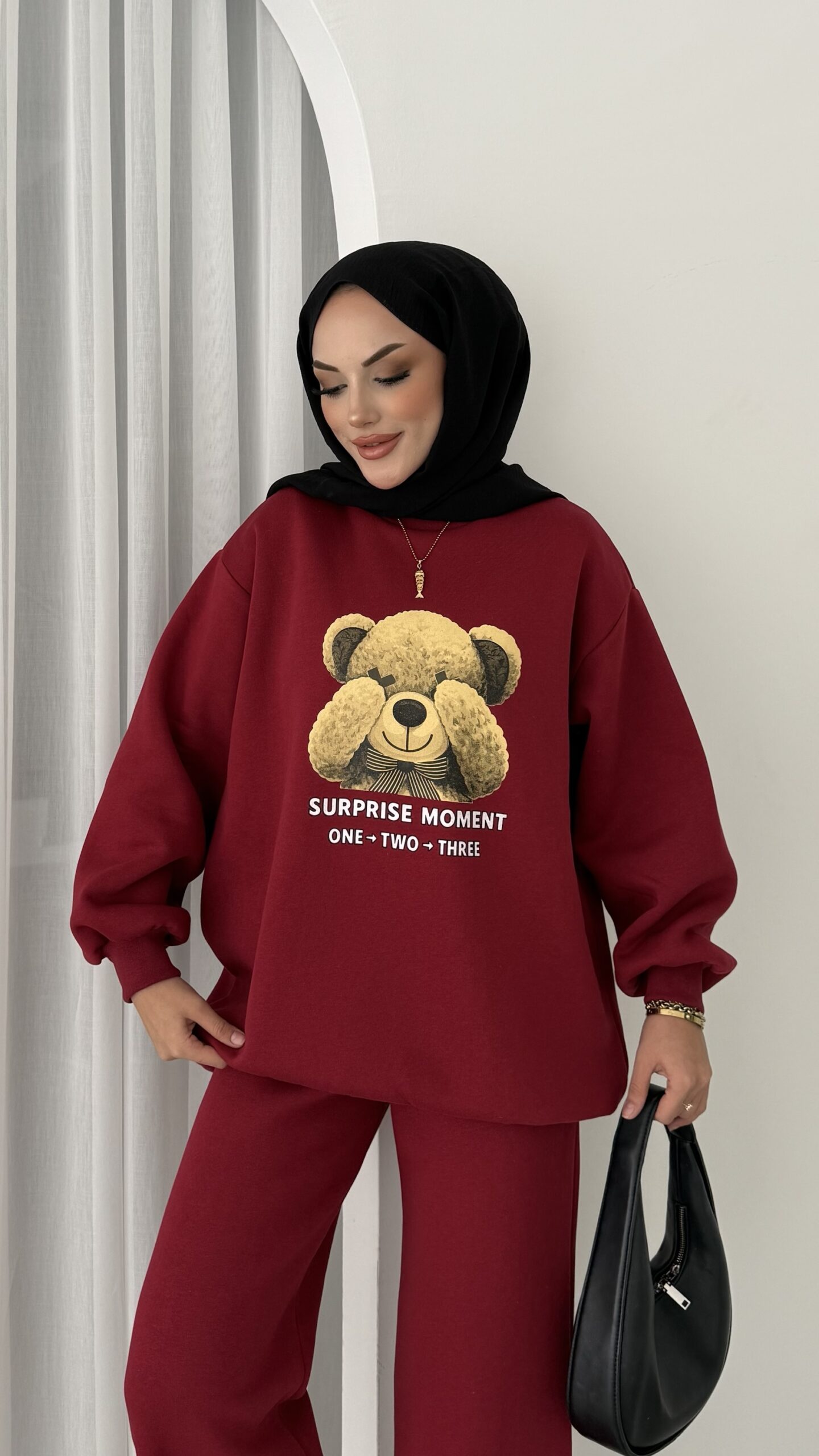 Puffy Şardonlu Sweat İkili Takım – Bordo