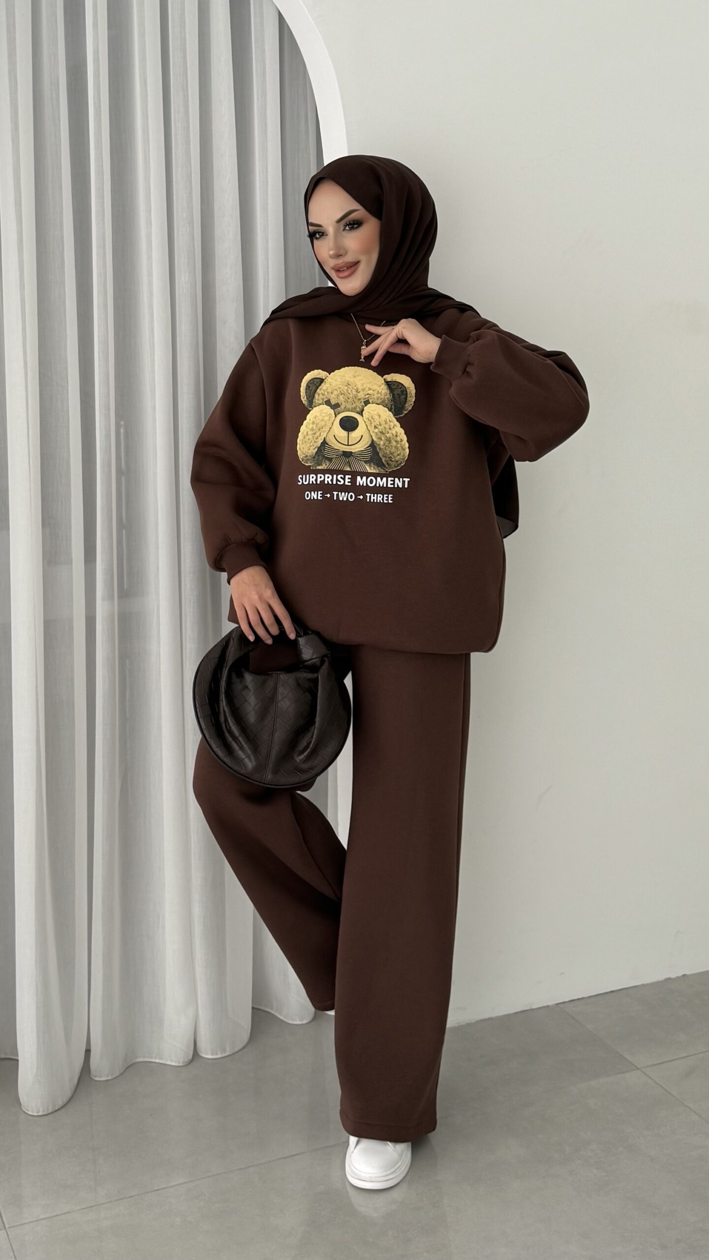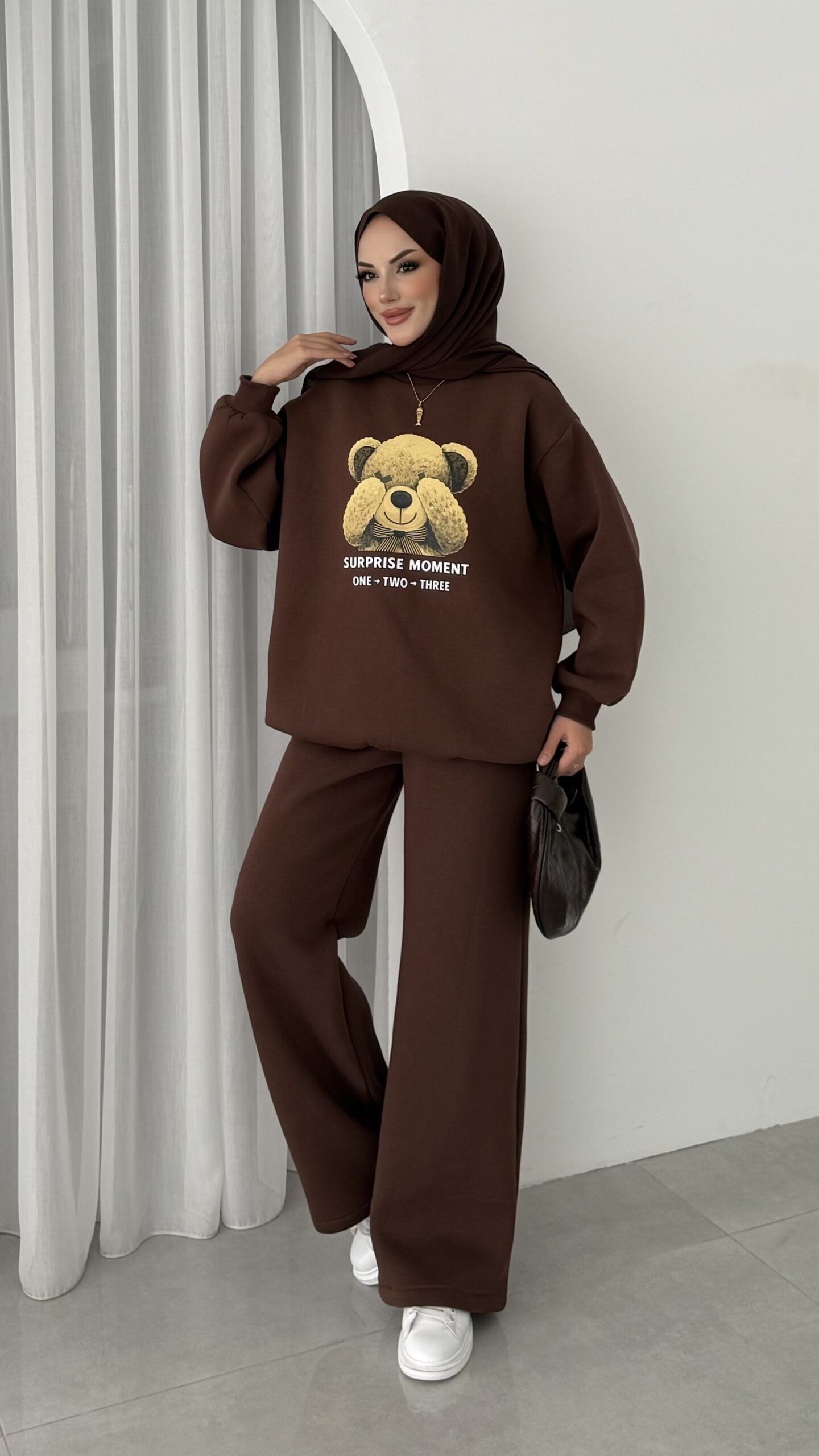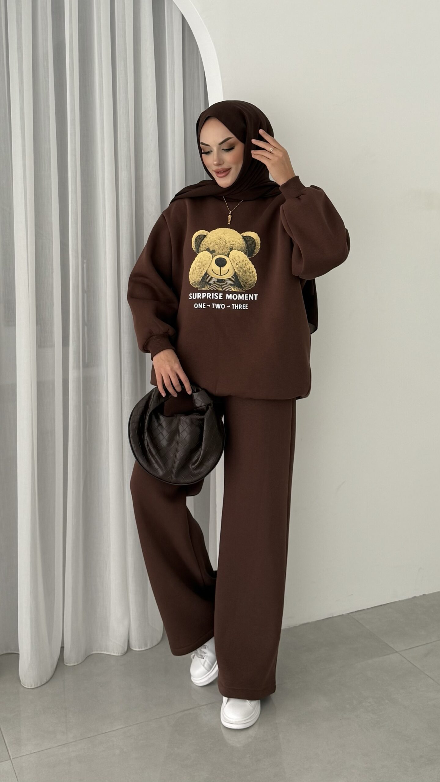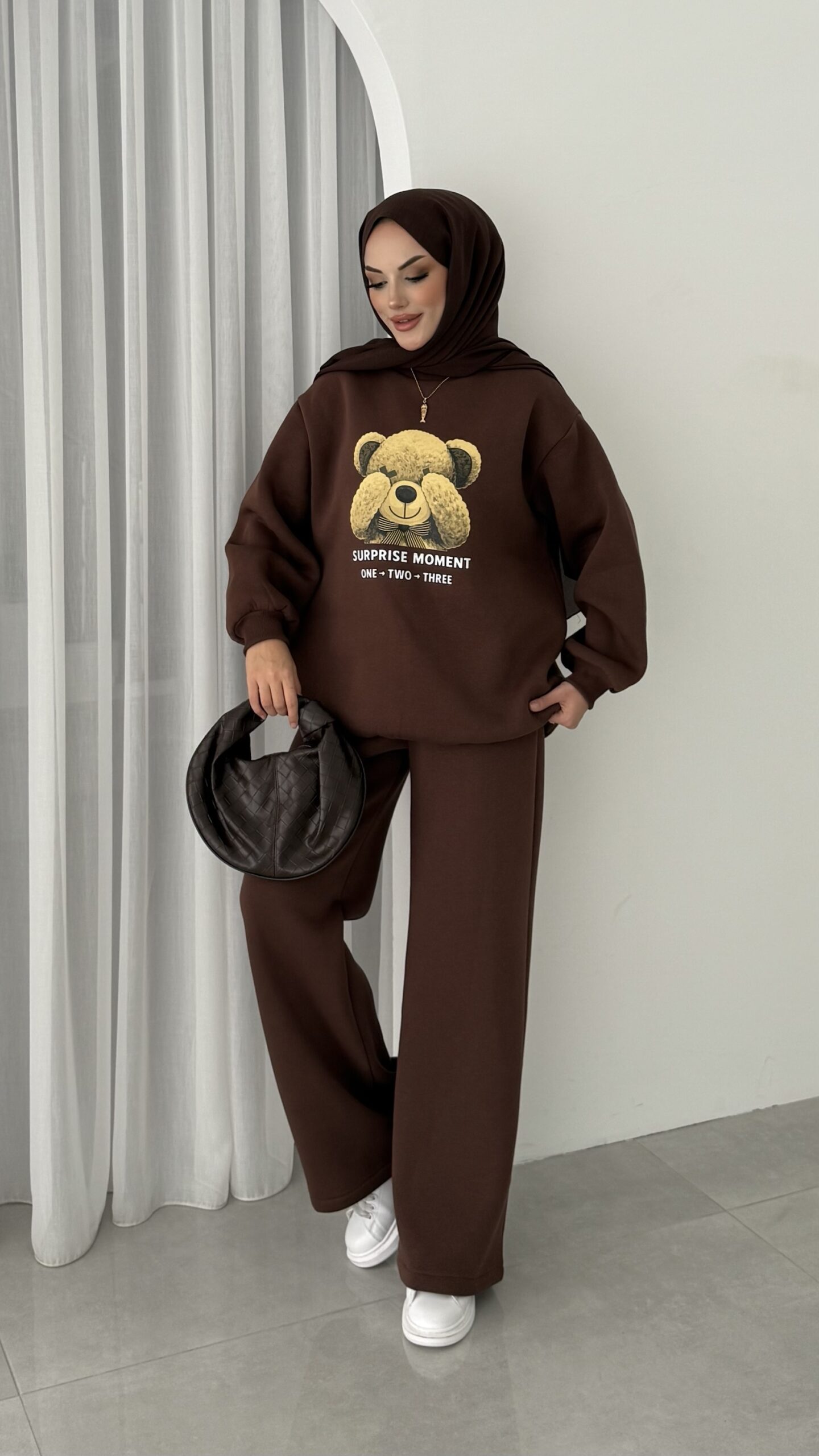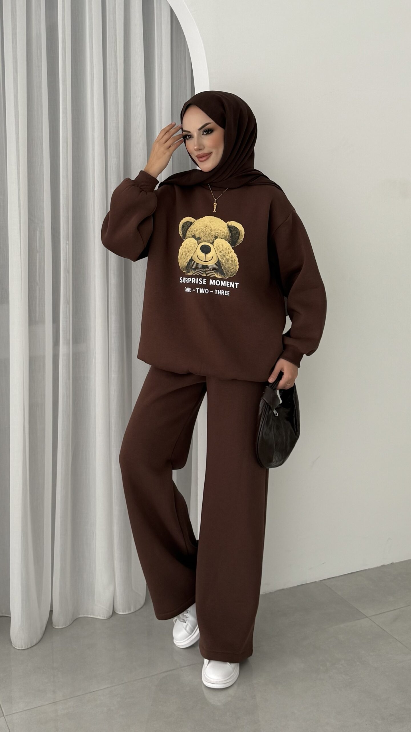 Puffy Şardonlu Sweat İkili Takım – Kahverengi