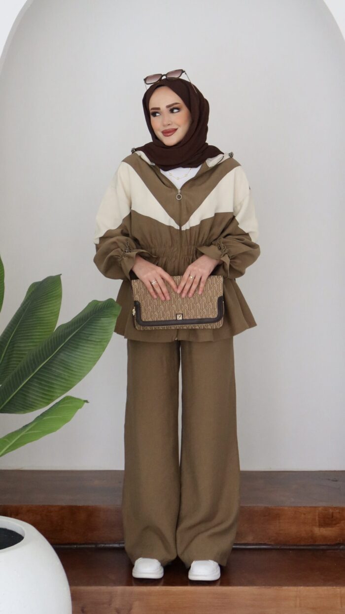 Qampüs Garnili Tensel İkili Takım - Kahverengi