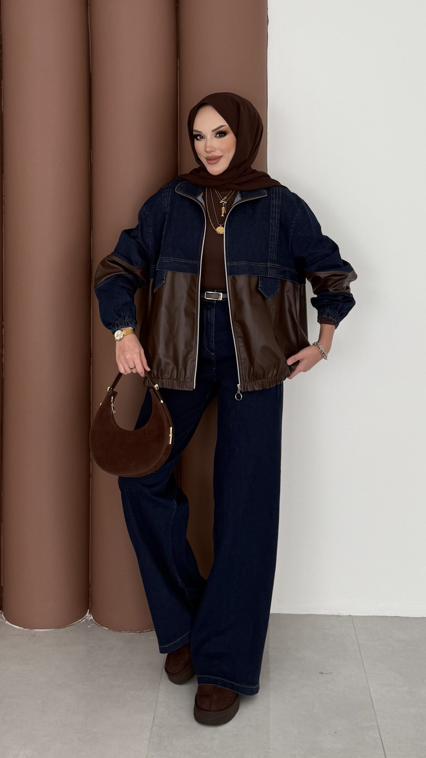Qufy Pinterest Denim Bomber İkili Takım – Koyu Mavi