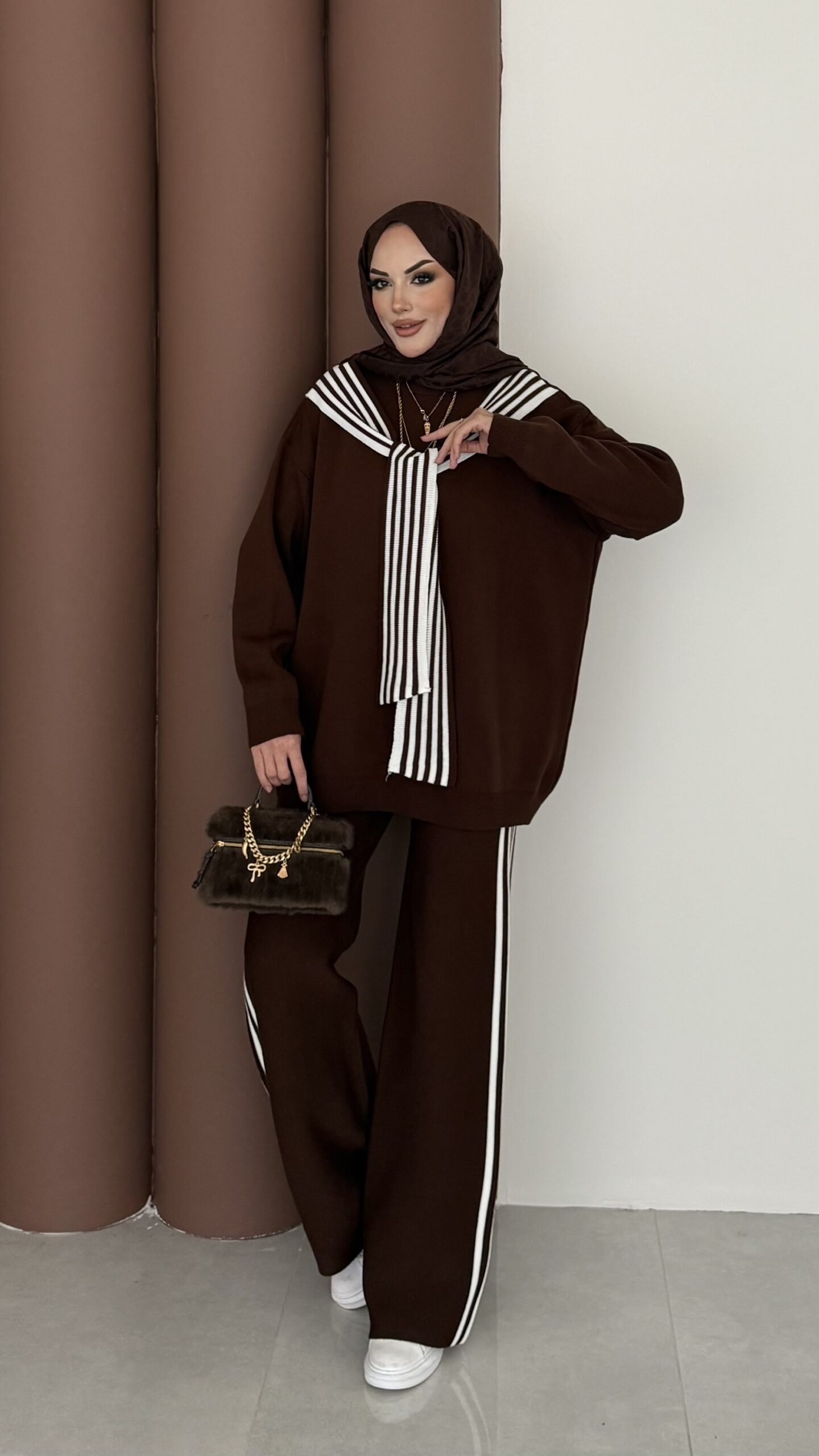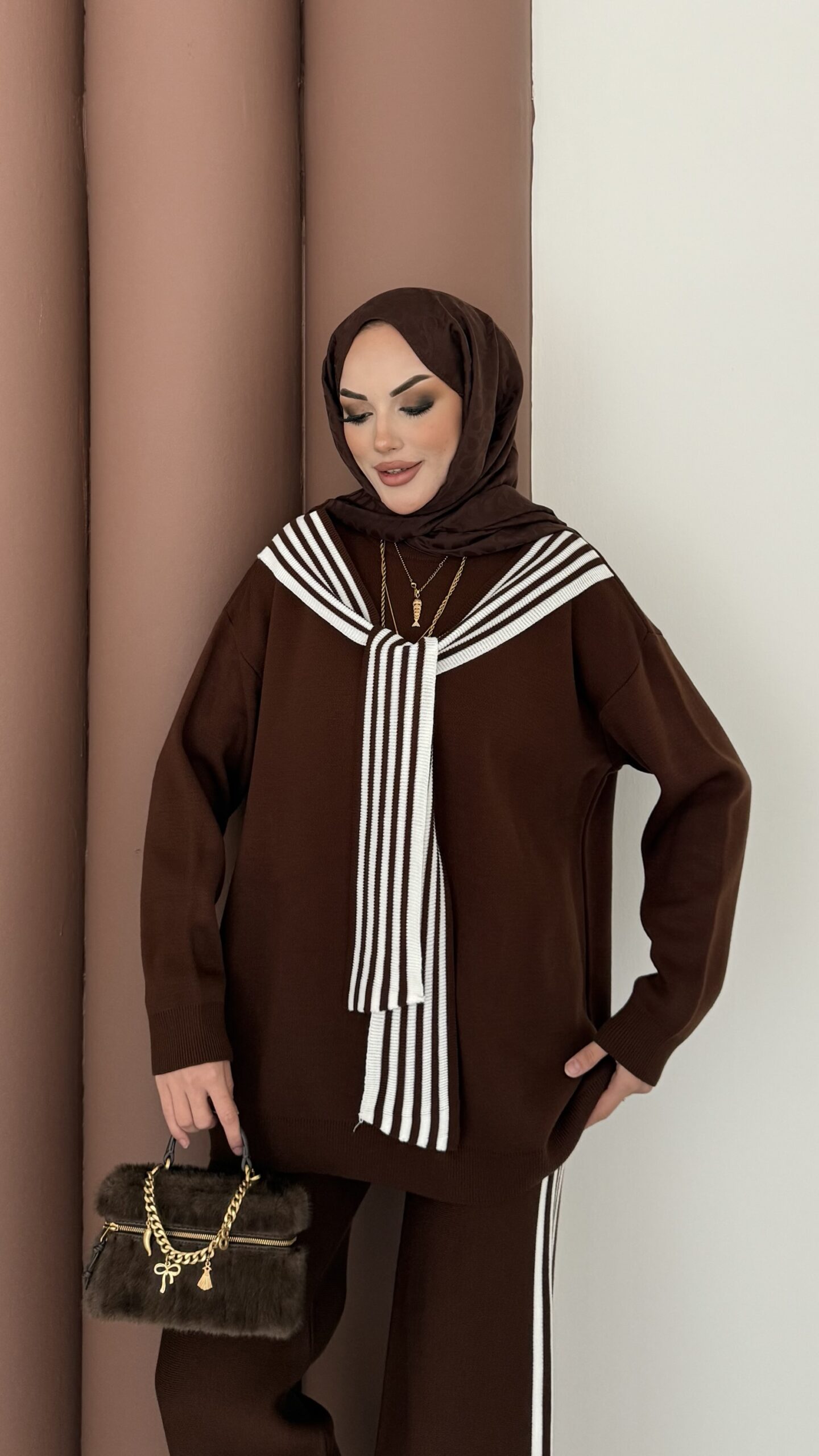 BuQlet Örgü Kemerli İkili Takım – Kahverengi