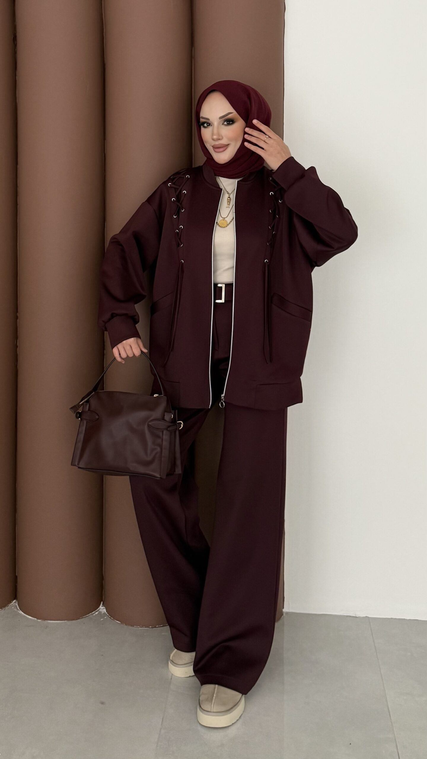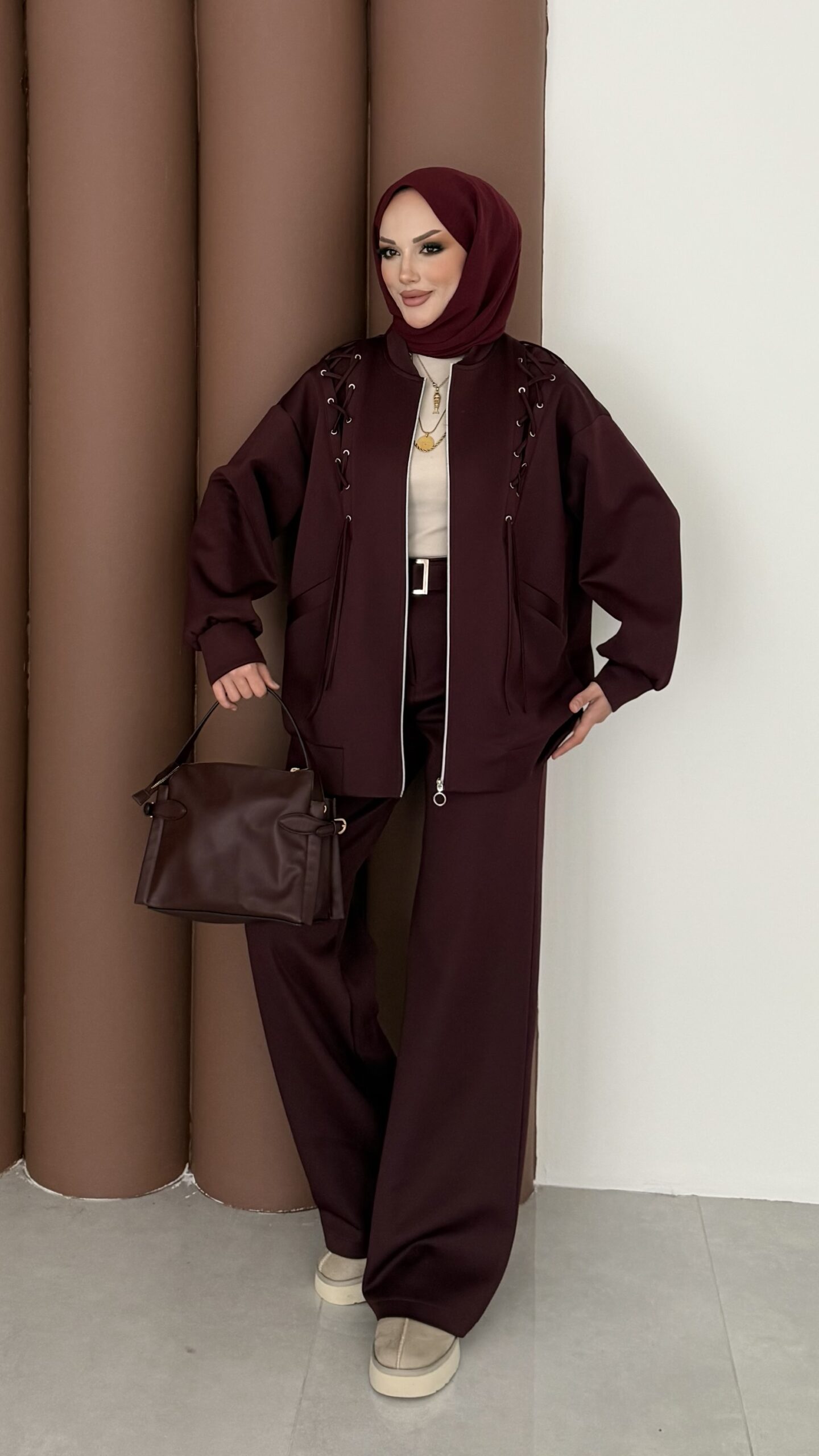 Harmony Premium Peluş Deri İkili Takım – Bordo