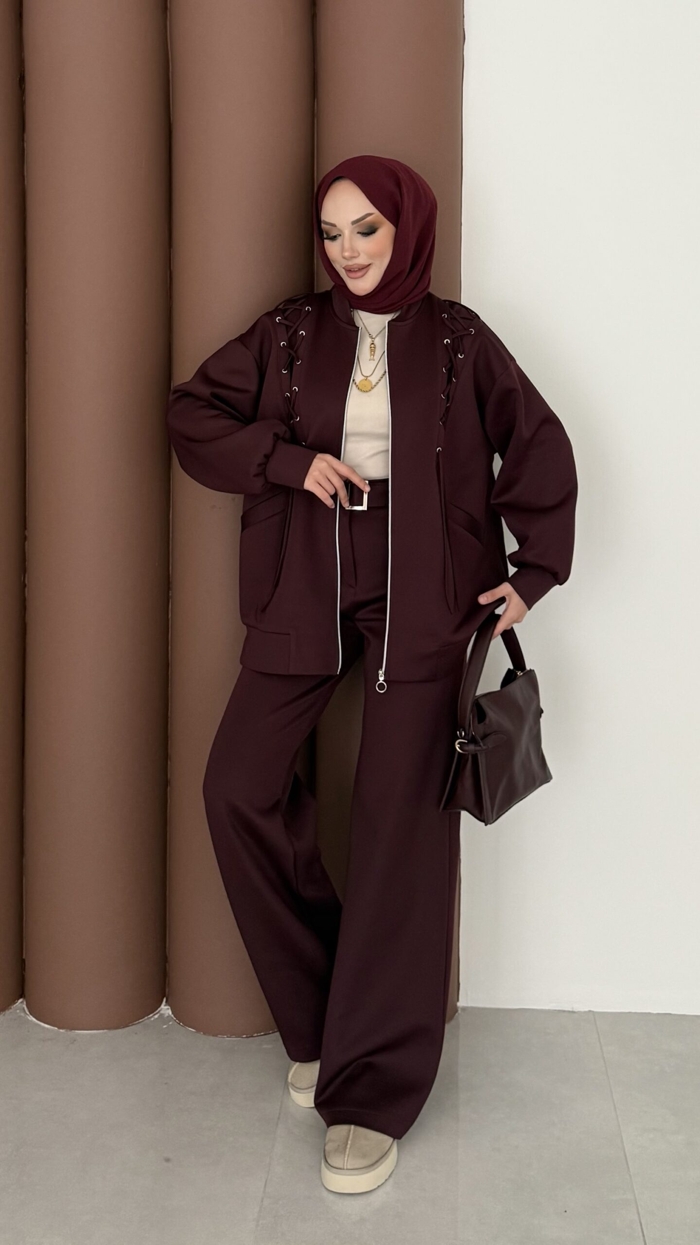 Blok Premium Şardonlu Ceket İkili Takım – Bordo