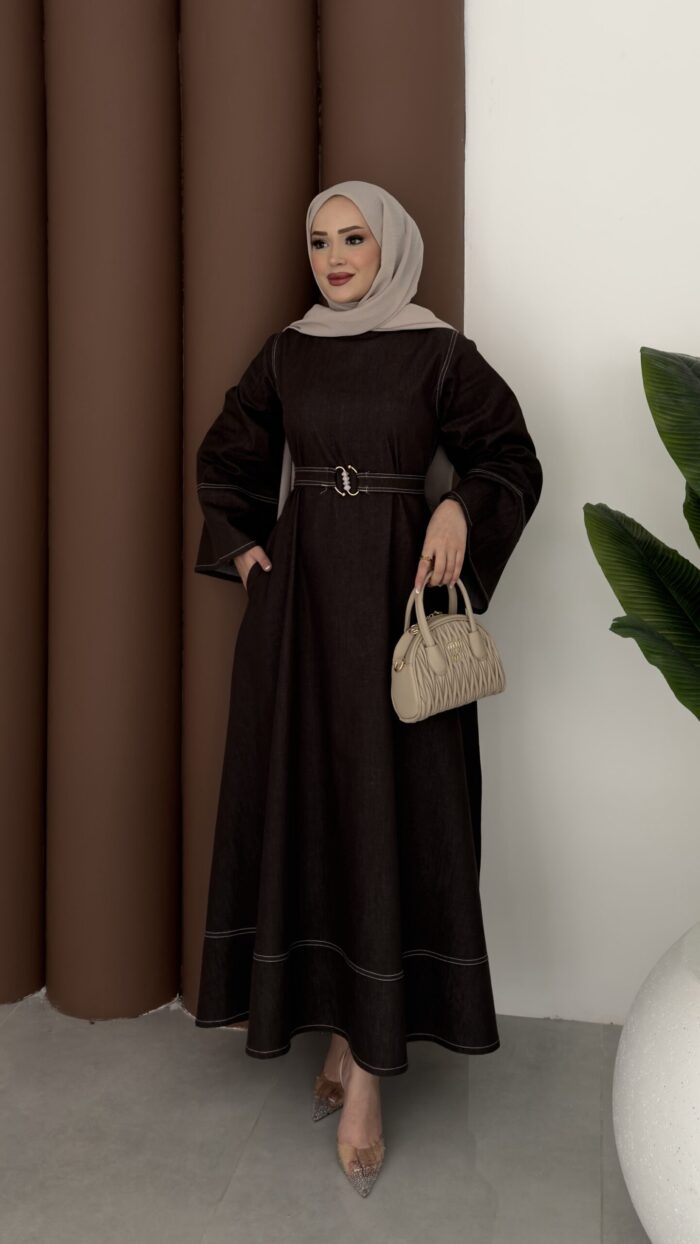 Rose Boncuk Kemerli Kot Elbise – Kahverengi
