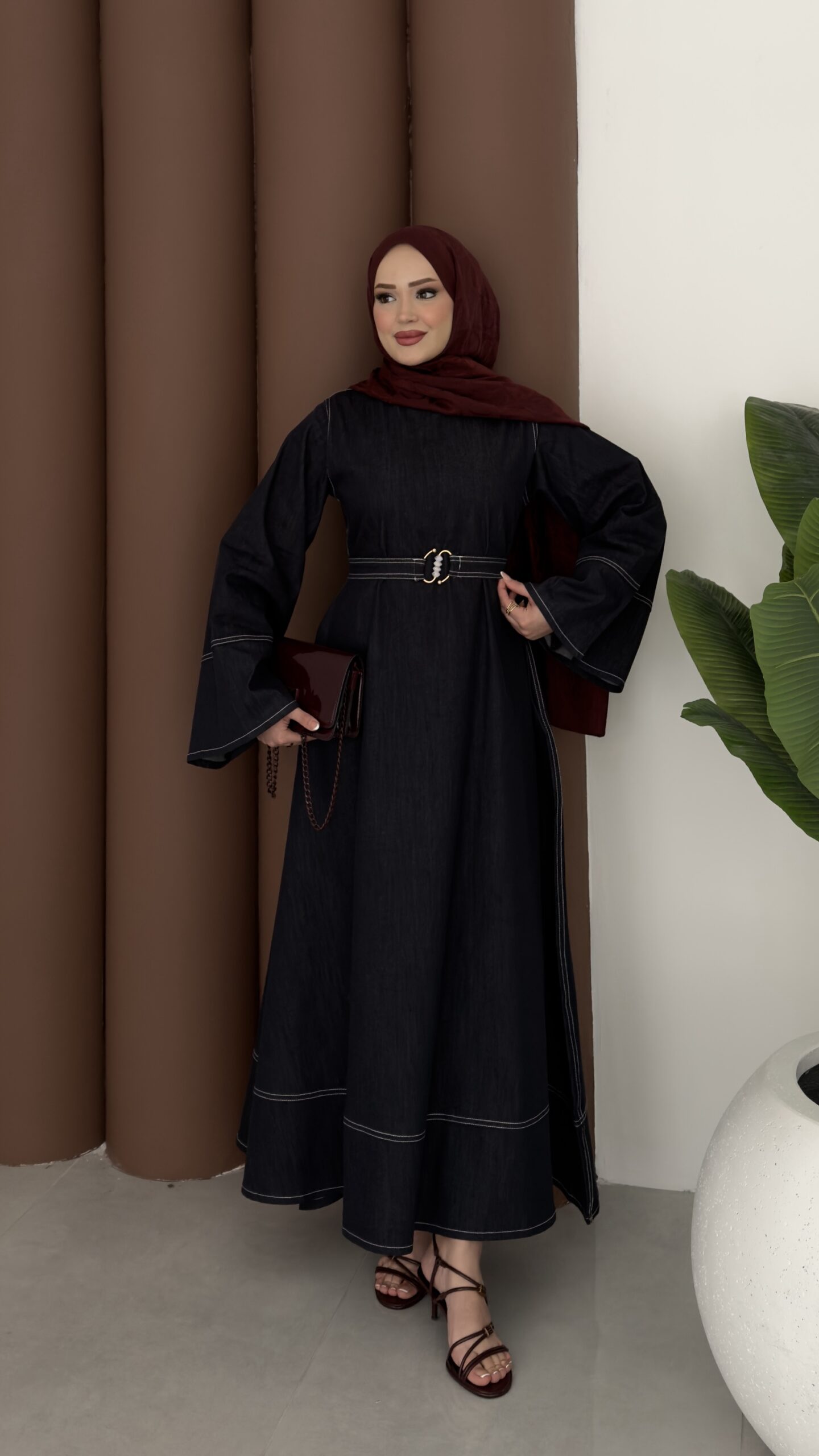 Rose Boncuk Kemerli Kot Elbise – Lacivert