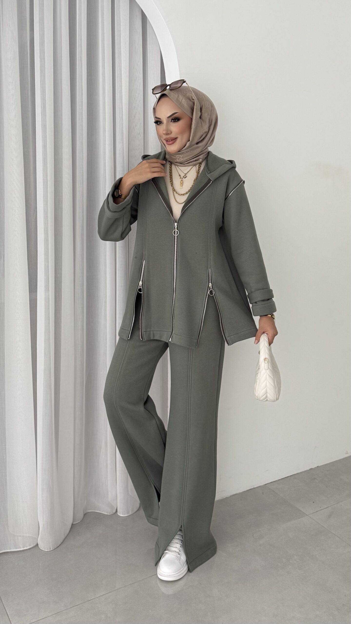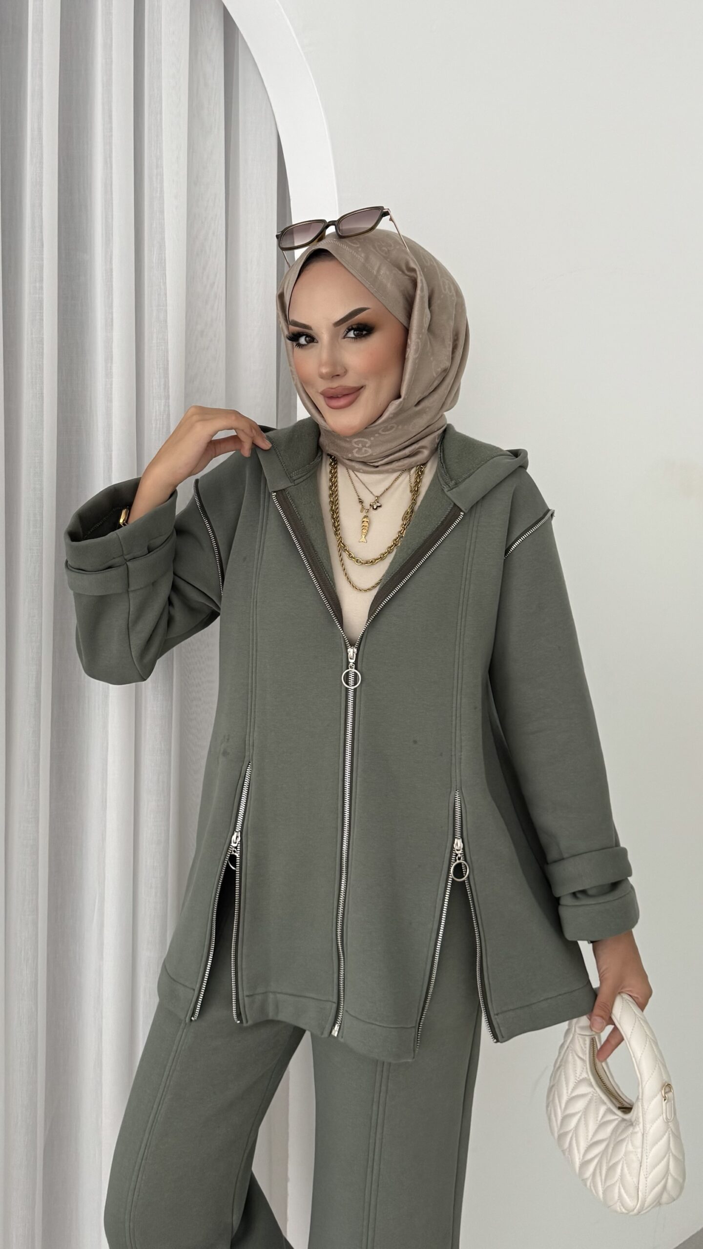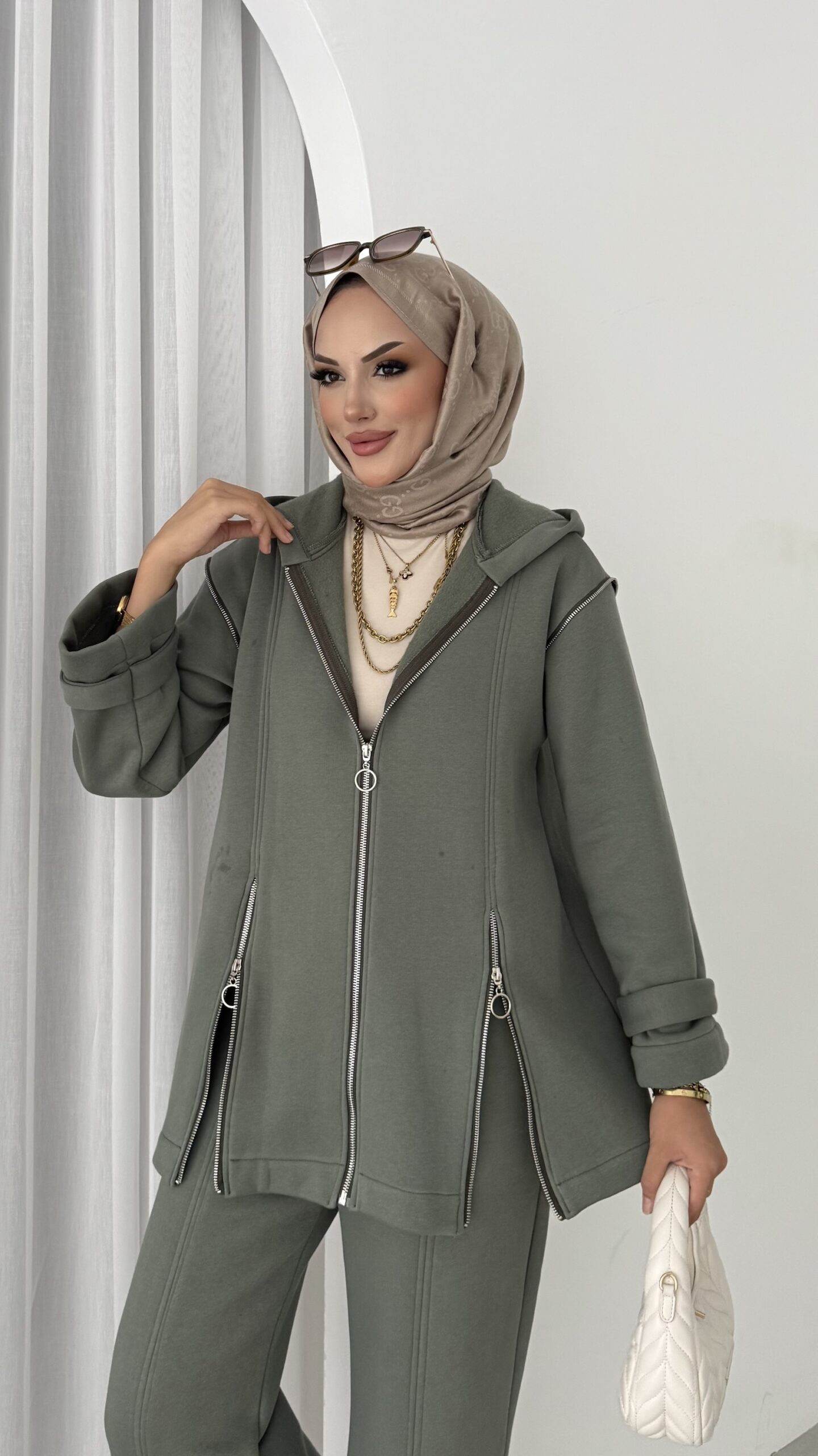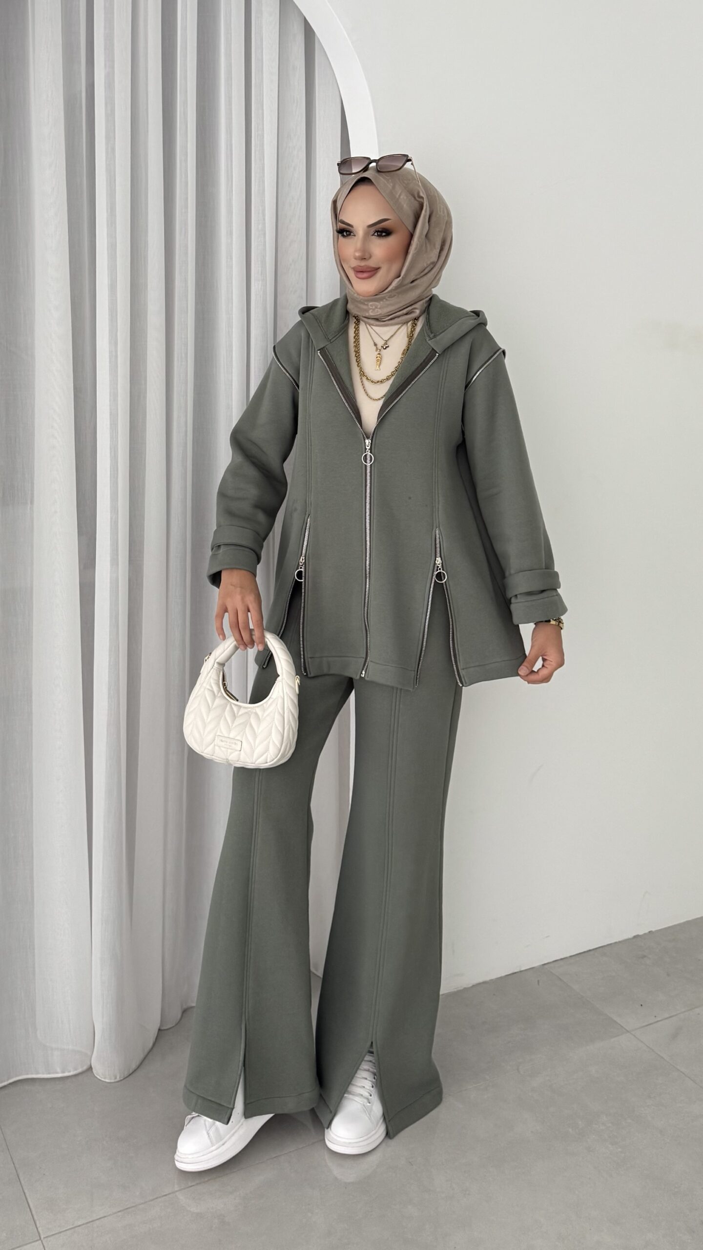 Muadil Asimetrik Fermuarlı İkili Takım – Kahverengi