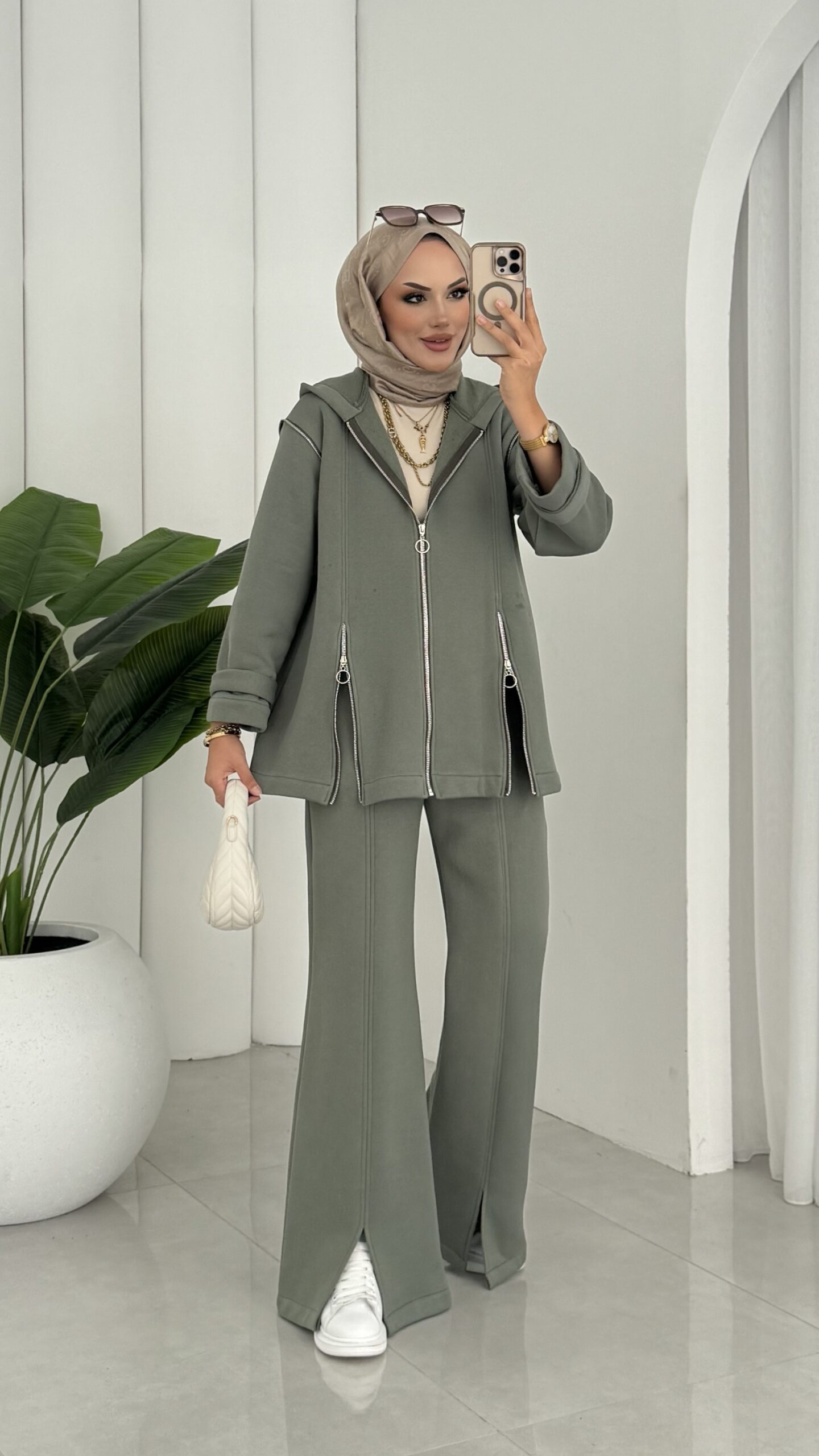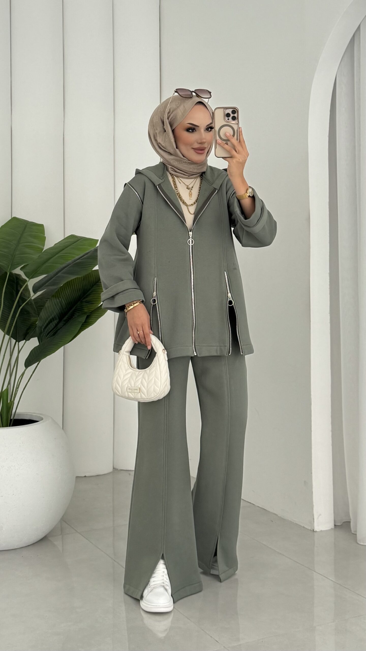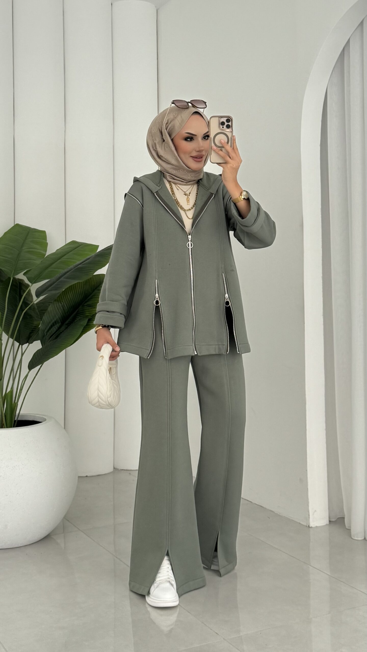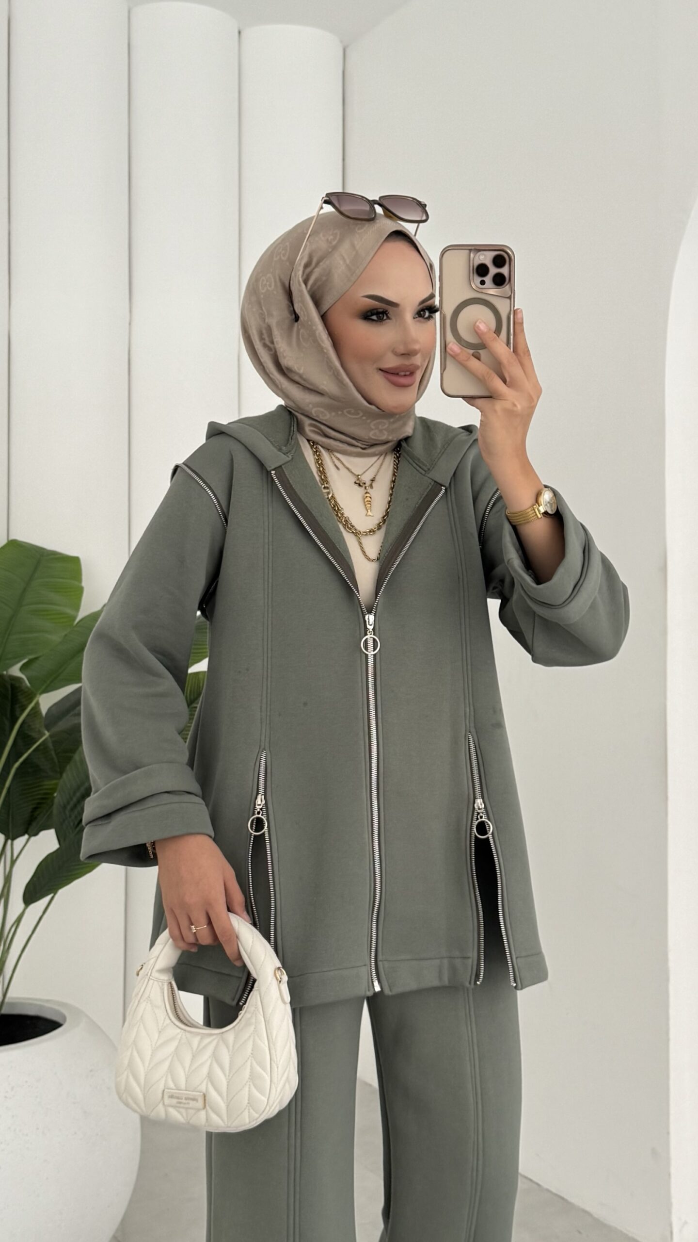 Muadil Asimetrik Fermuarlı İkili Takım – Kahverengi
