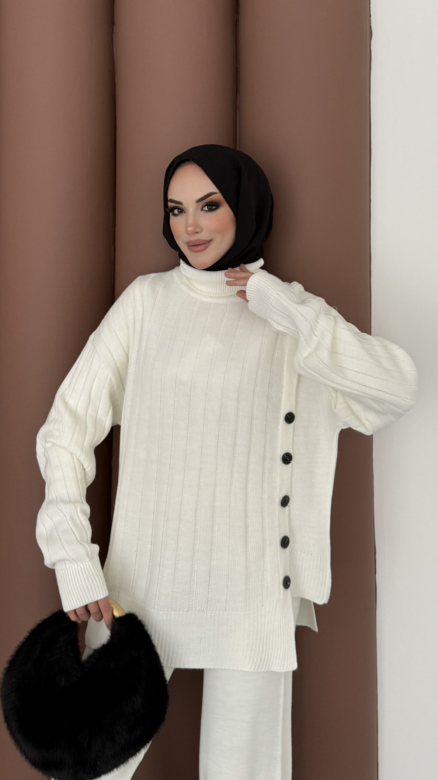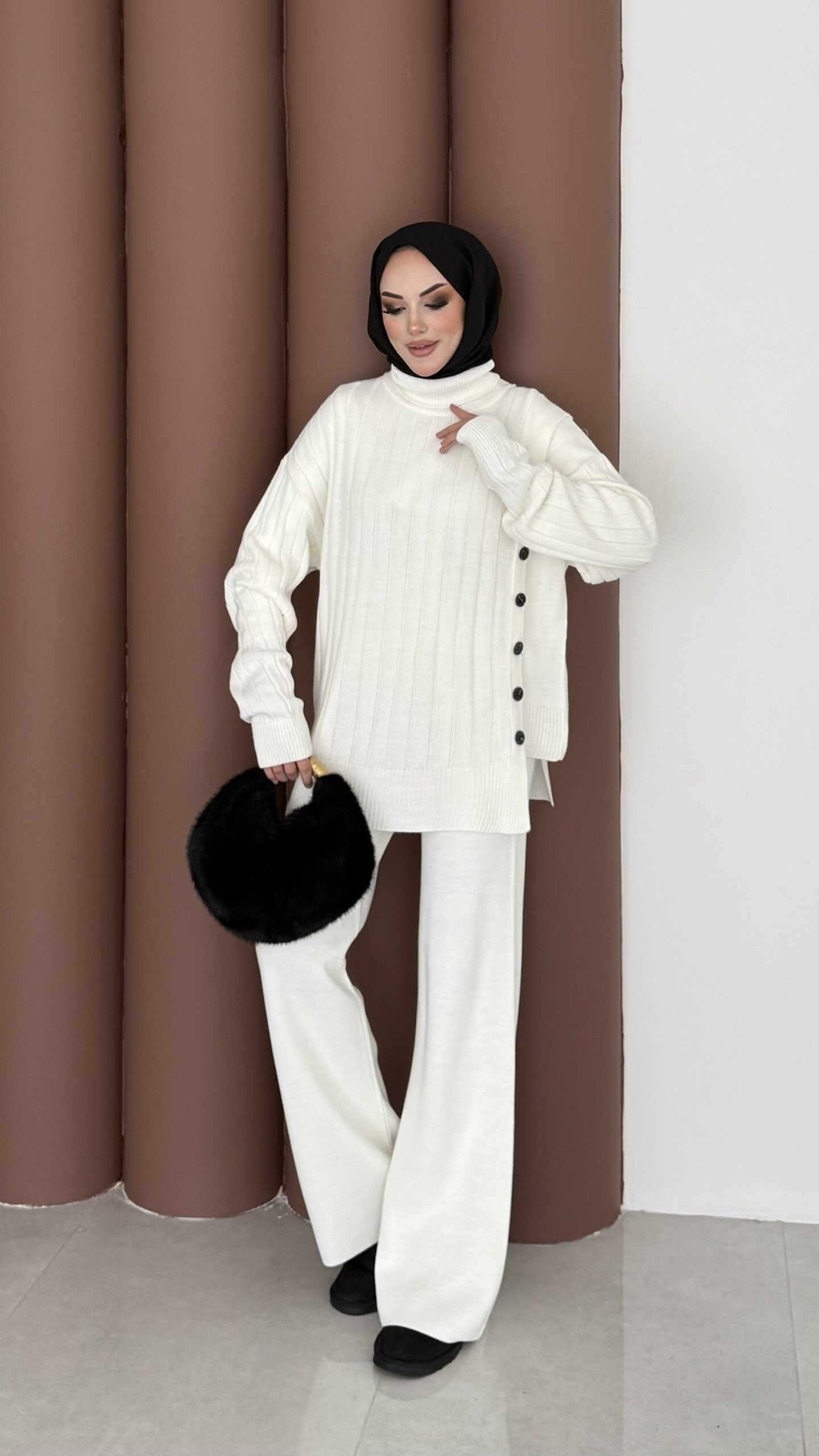 Sık Örme Fitilli Triko Takım – Beyaz