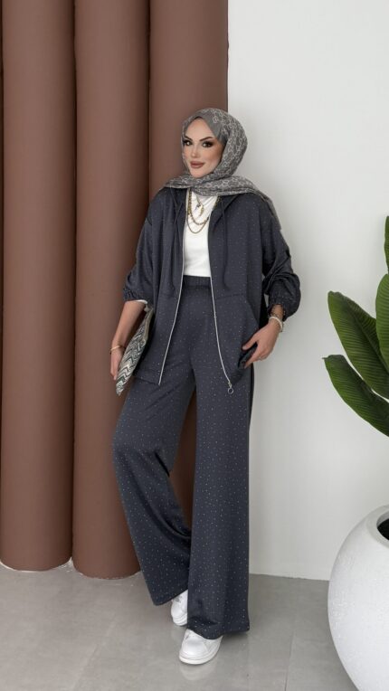 Fashion Taşlı Bomber İkili Takım – Antrasit