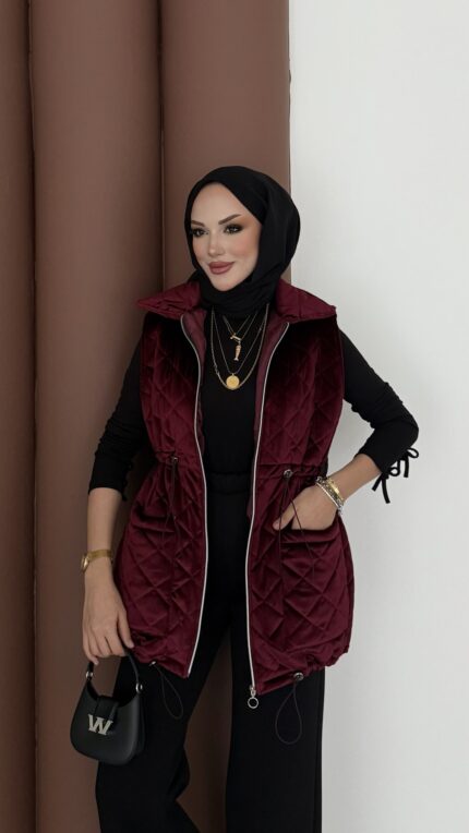 Kapitoneli Kadife Şişme Yelek – Bordo