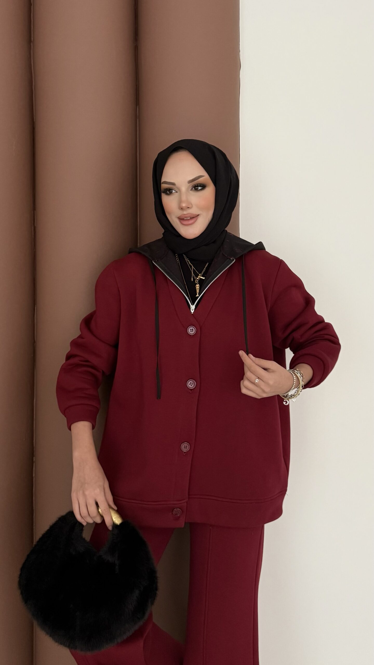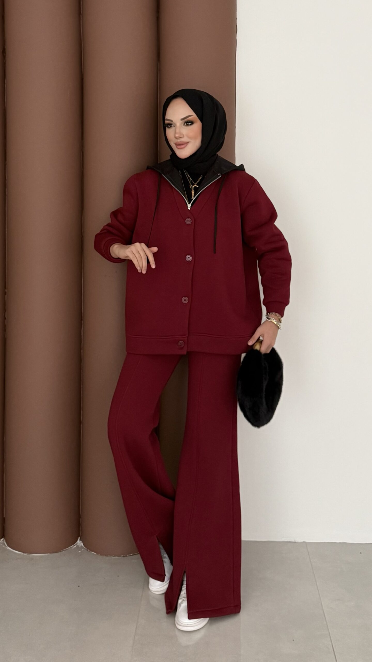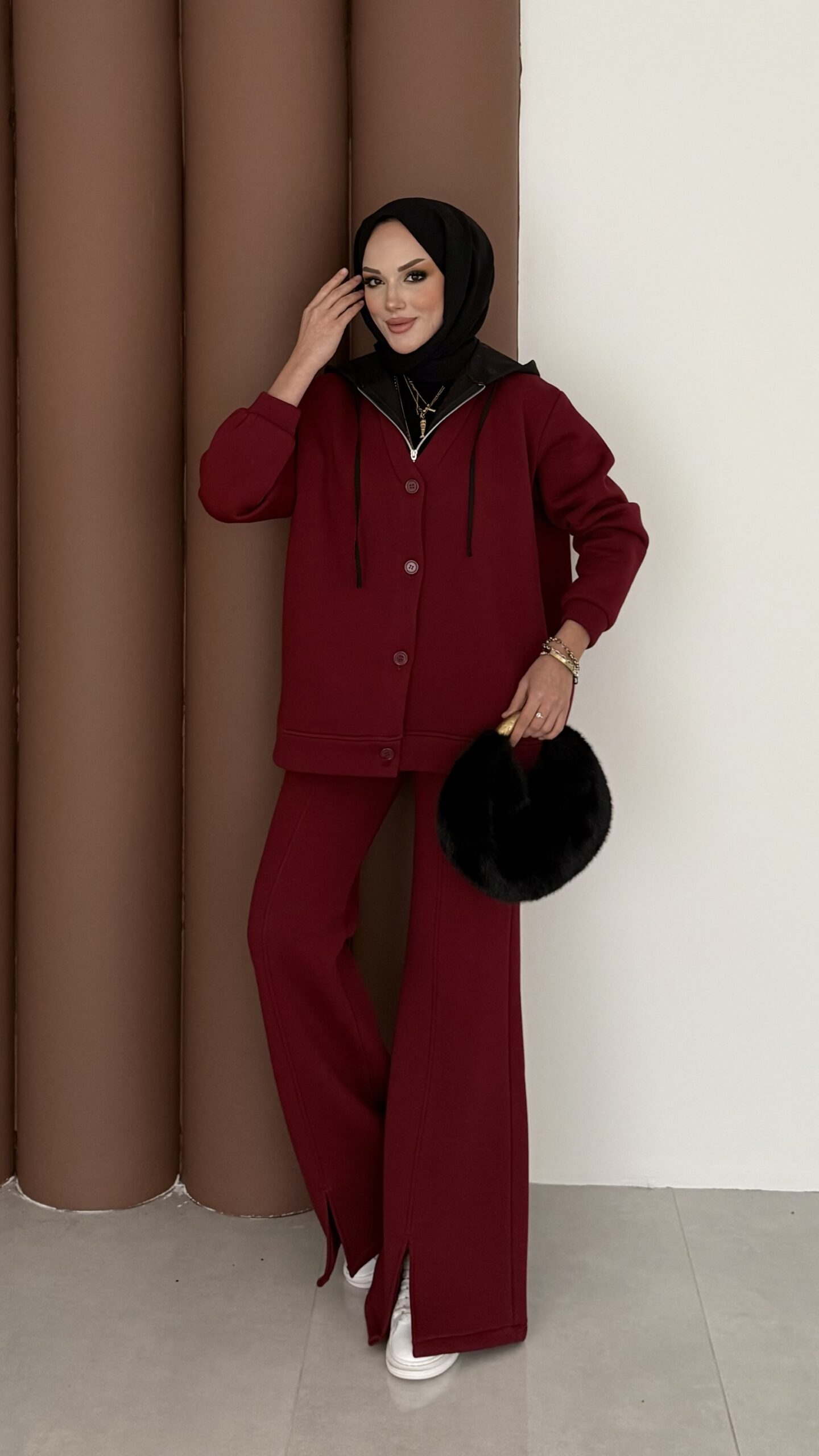 Snow Trenç Kapşonlu Şardonlu İkili Takım – Bordo