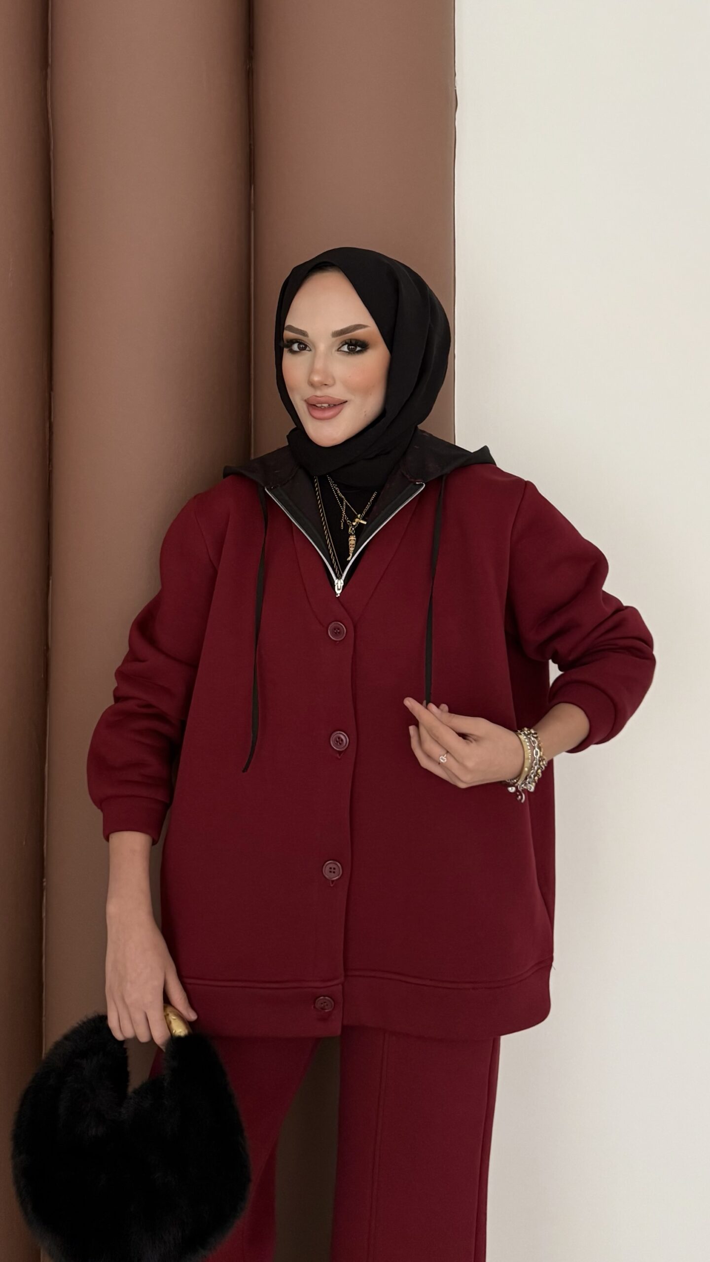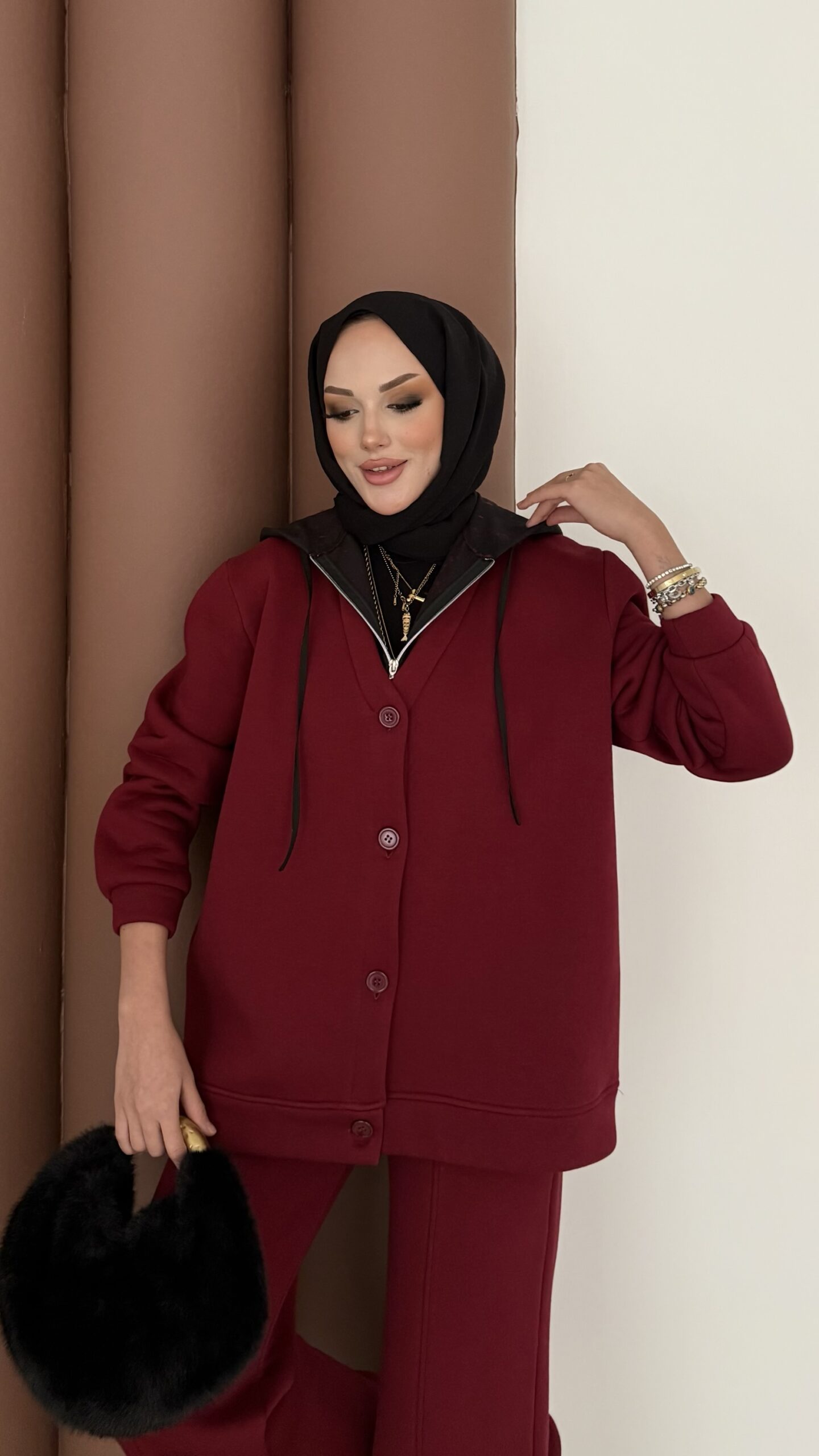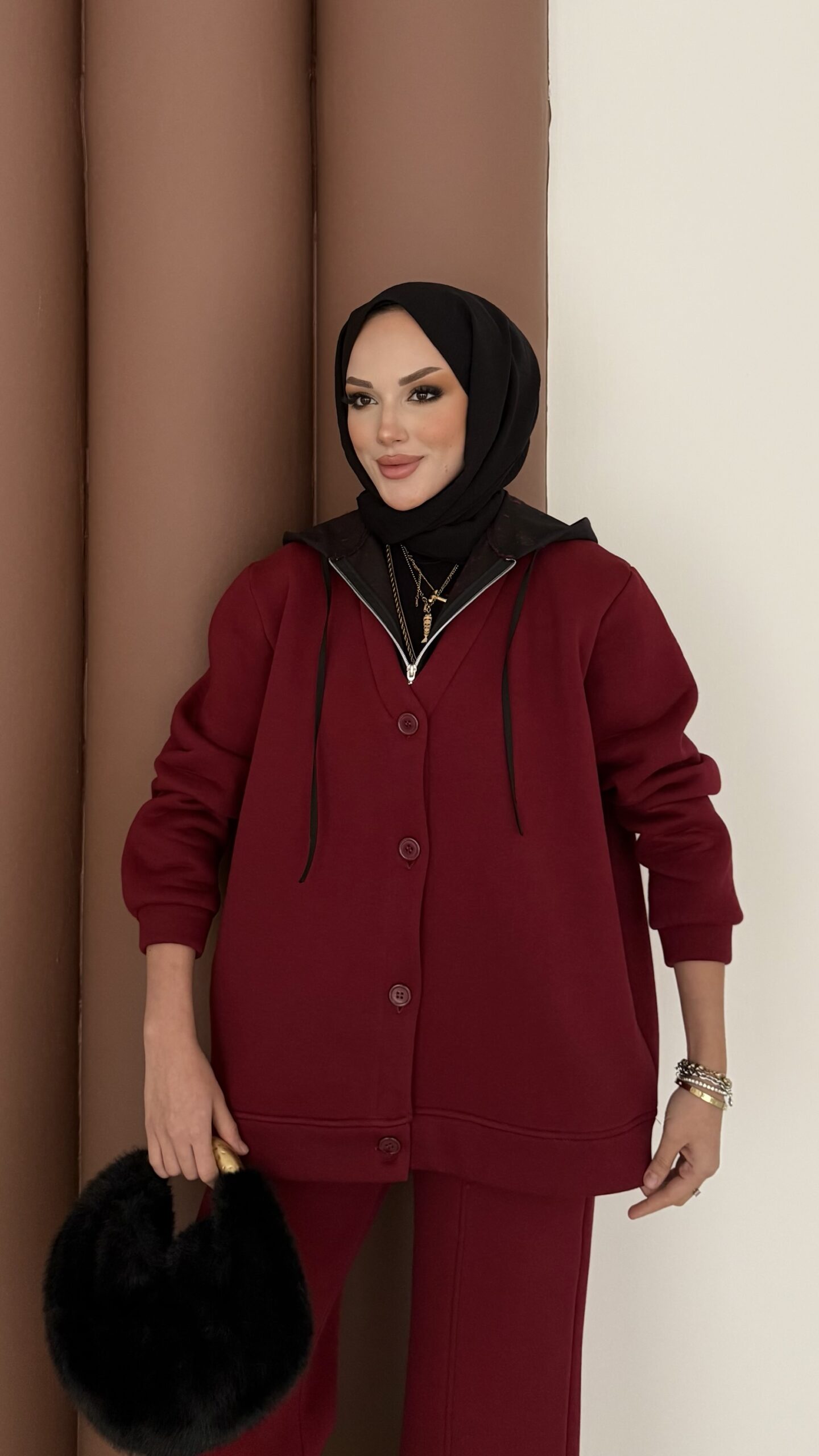 Snow Trenç Kapşonlu Şardonlu İkili Takım – Bordo