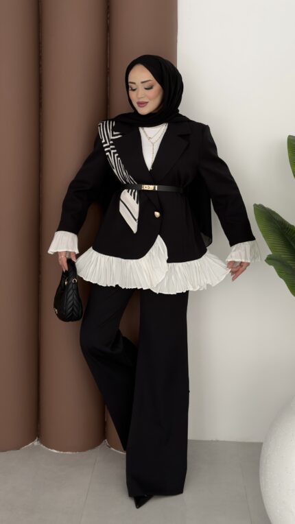Violet Piliseli Double Blazer İkili Takım – Siyah