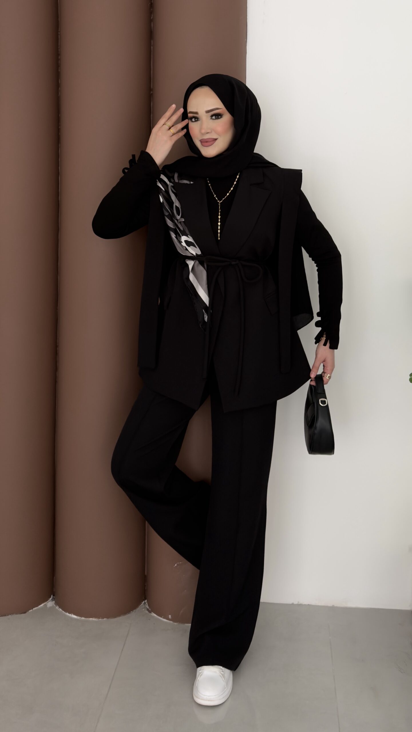 Stella Bağlamalı Yelek İkili Takım – Siyah
