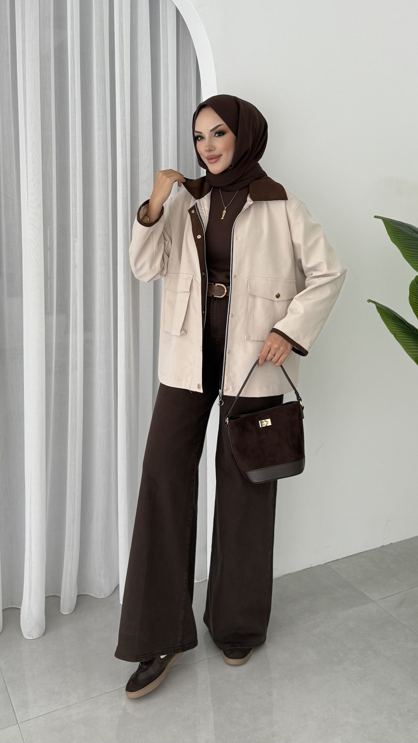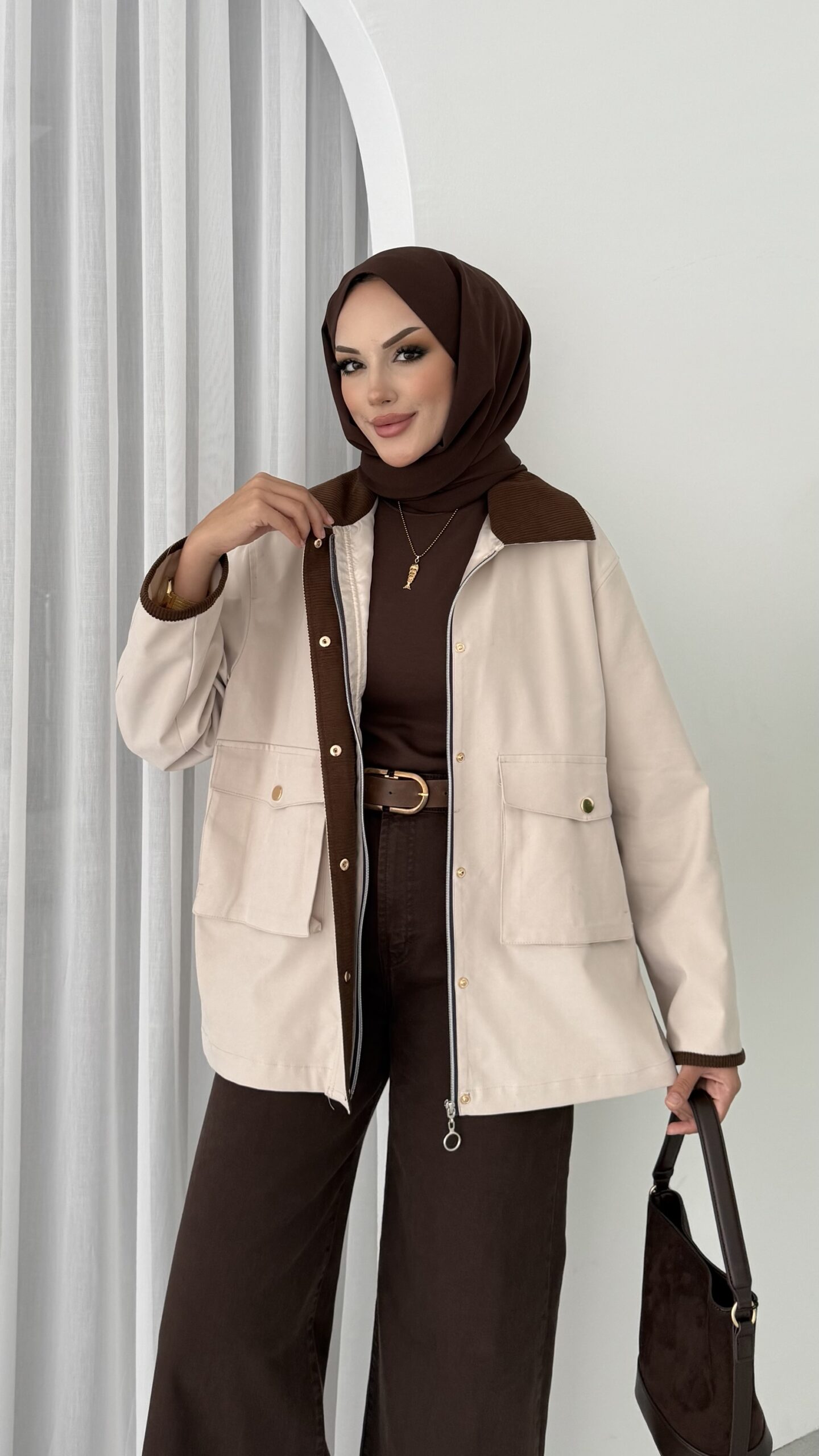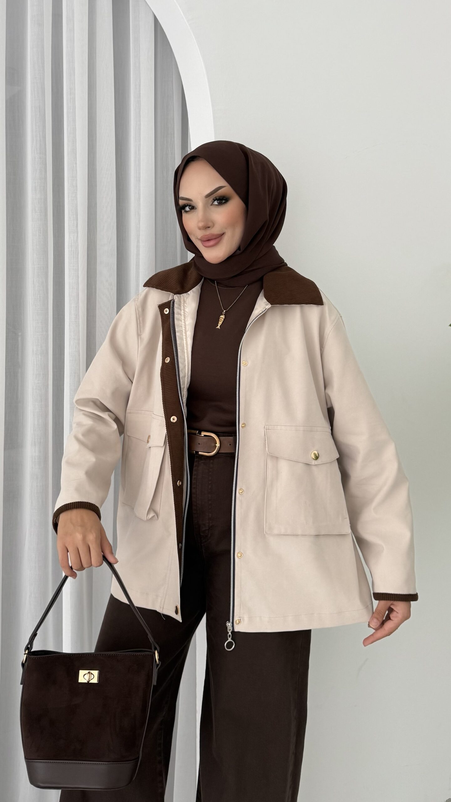Stradi Muadil Kadife Yaka Ceket – Bej
