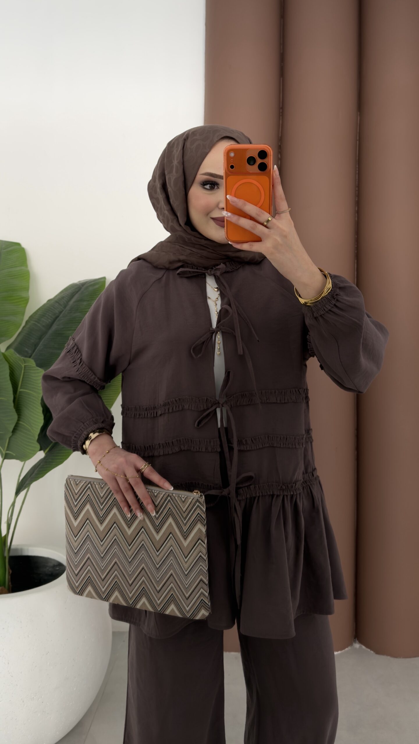 Sunset Bağcıklı Tensel İkili Takım – Kahverengi