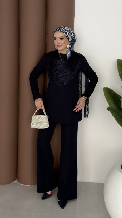 Kuğu Omuzu Püskül İpli İkili Takım – Lacivert